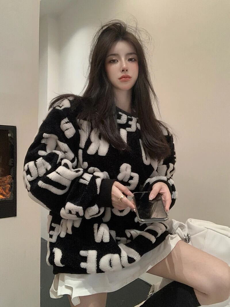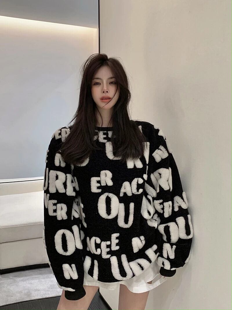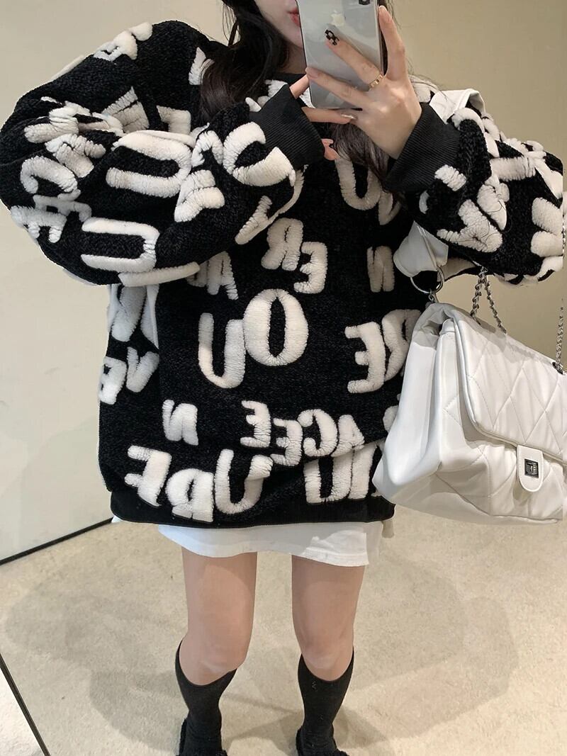レディース ルーズ 万能 秋冬 ミドル丈 ラムセーター オータム 秋物 ウィンター 冬物