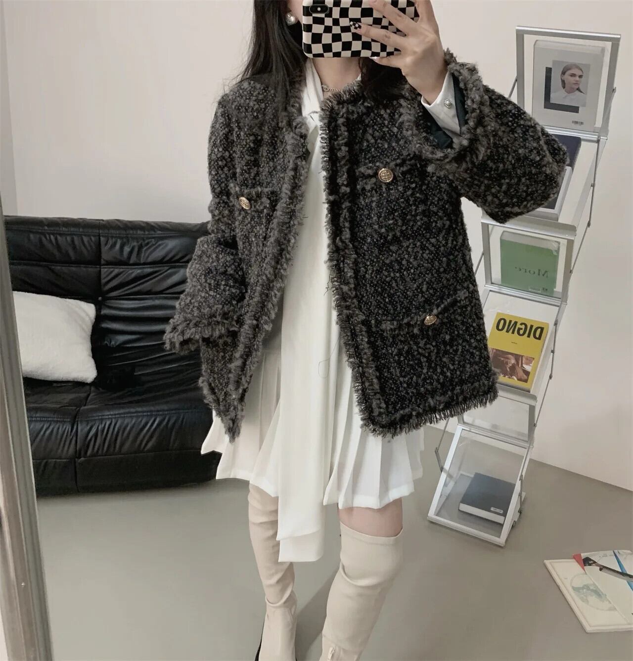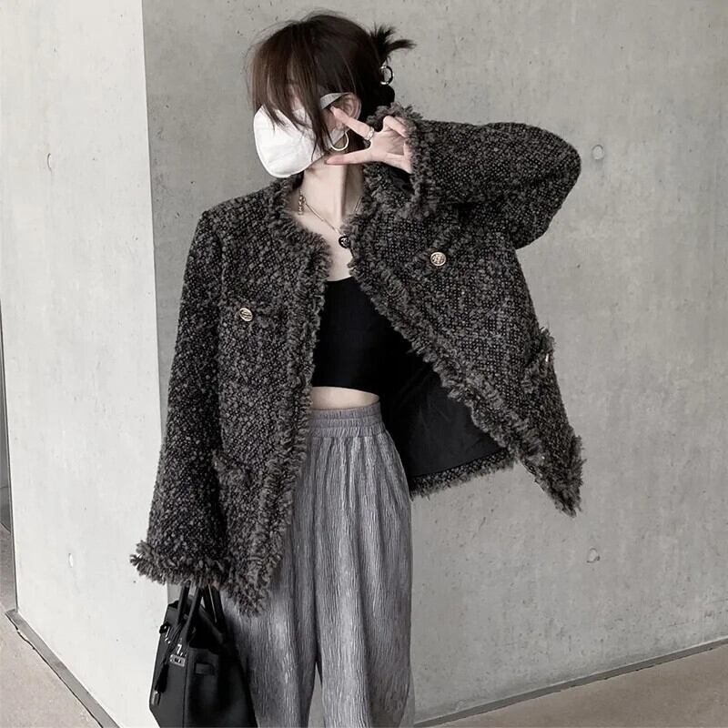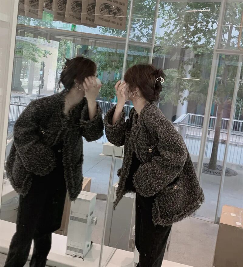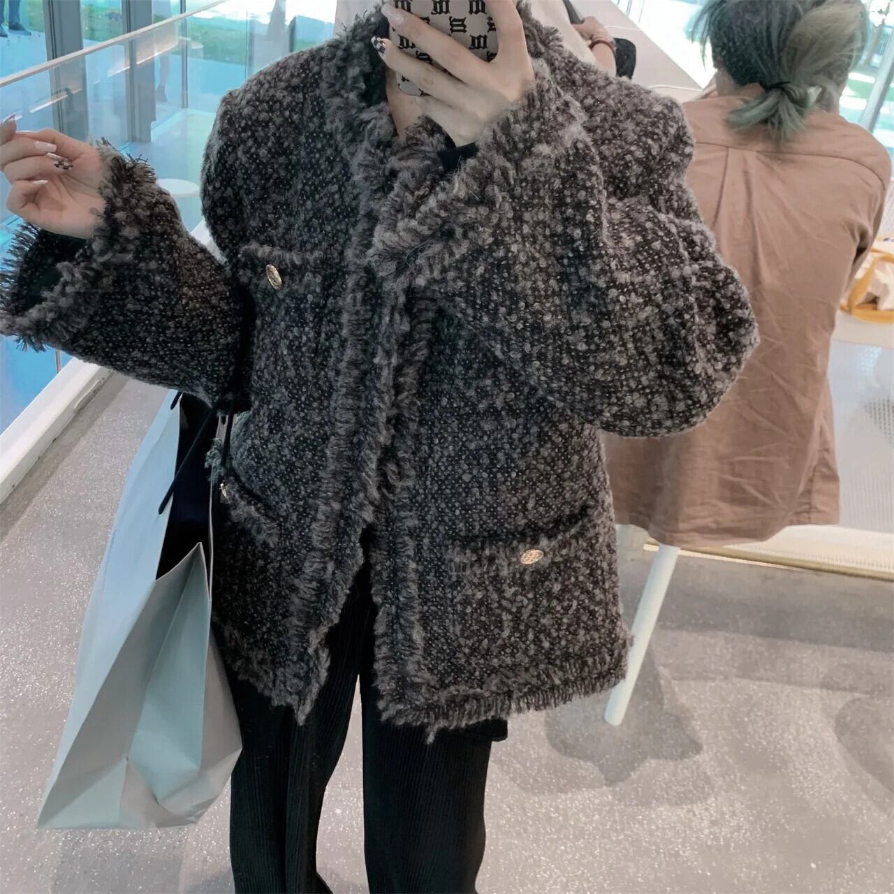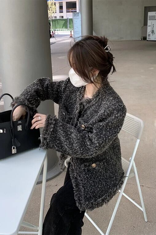 冬厚い香りコートミディアムロングウールコート M-4XL200 キャティーズツイードジャケット ウィンター 冬物