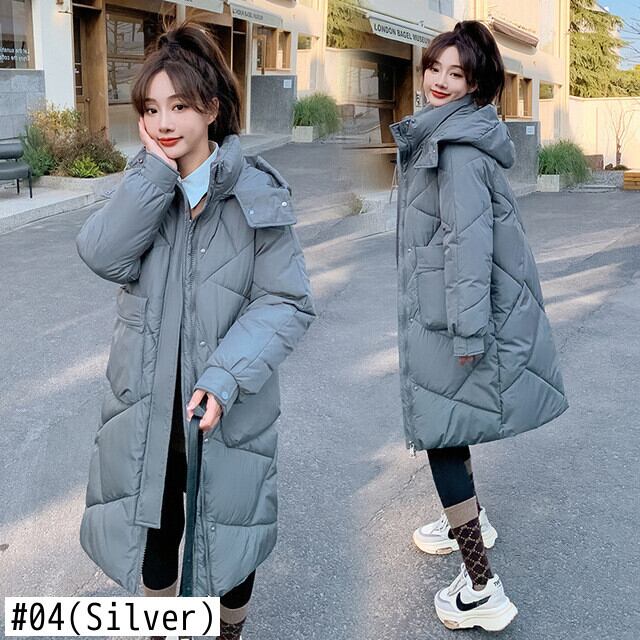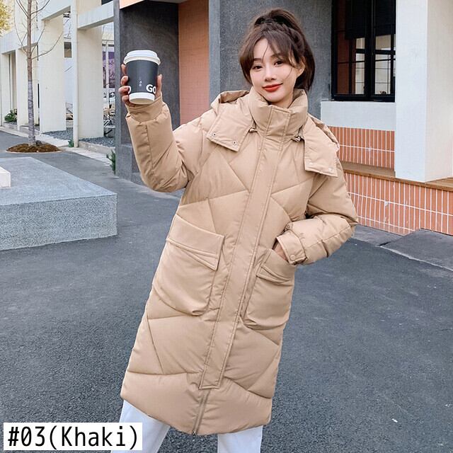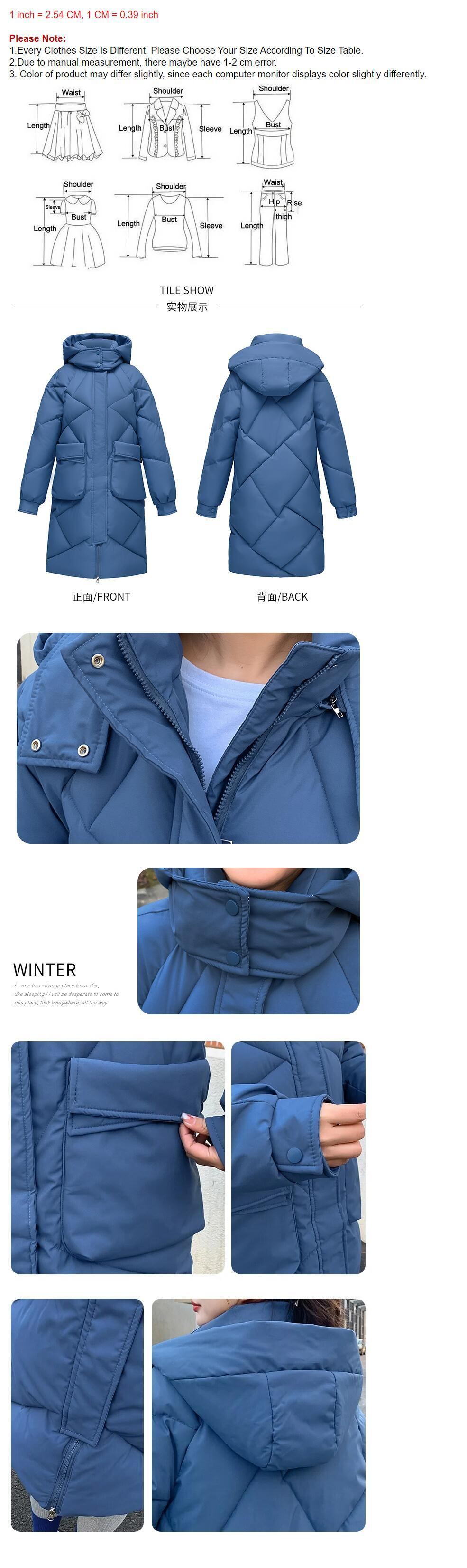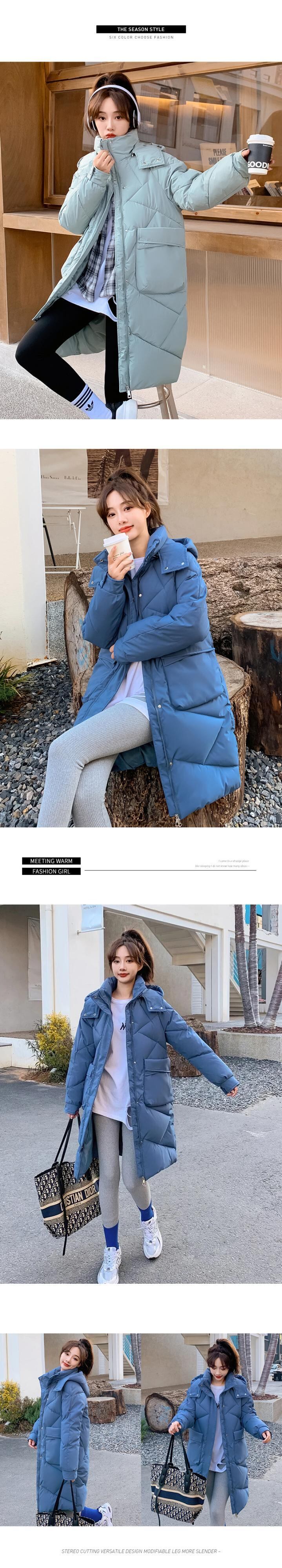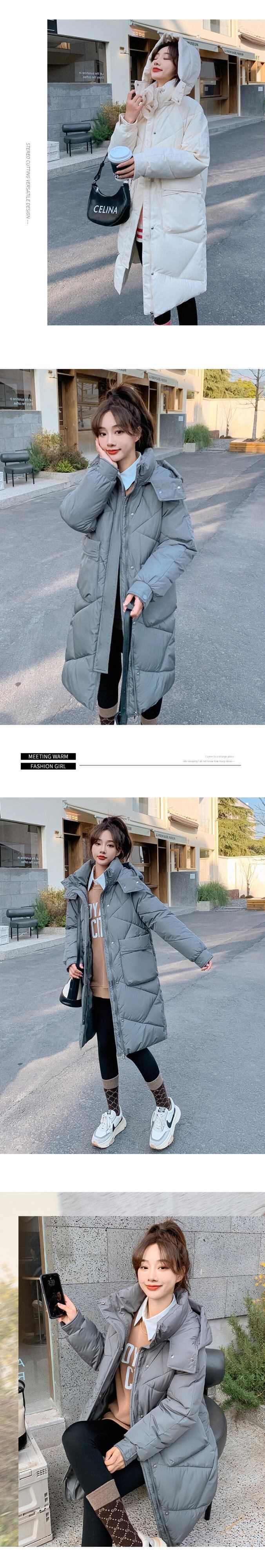 シンプルダウンコットンレディースロング膝取り外し可能帽子ルーズパーカージャケット