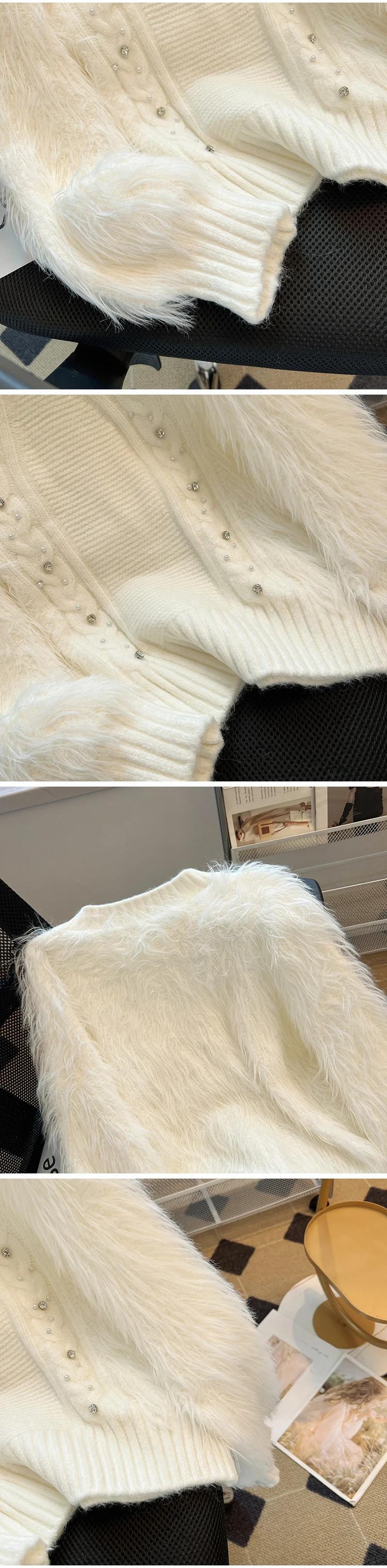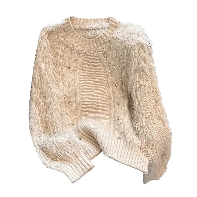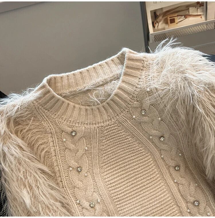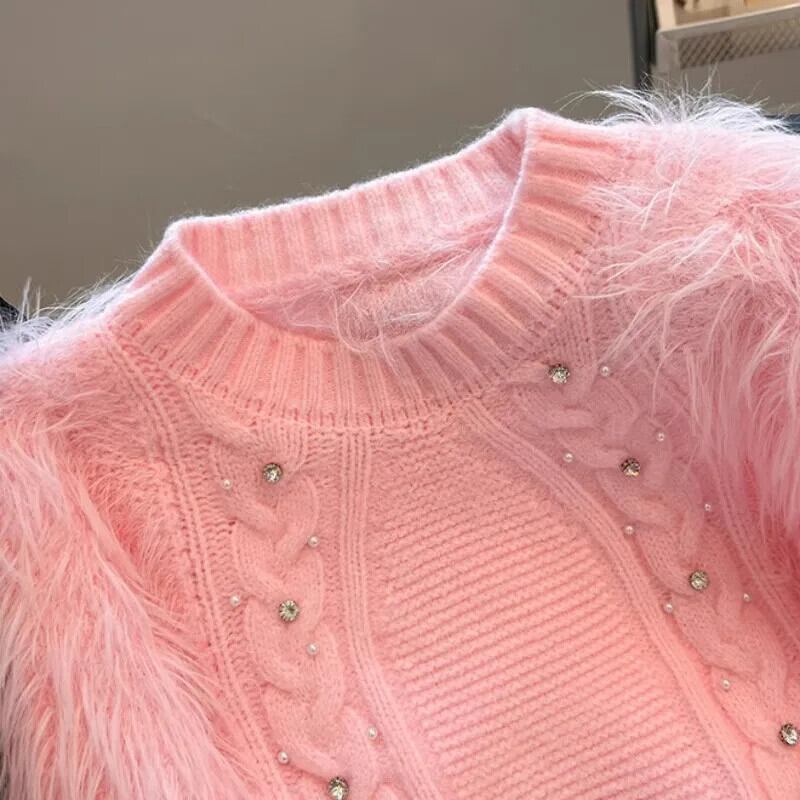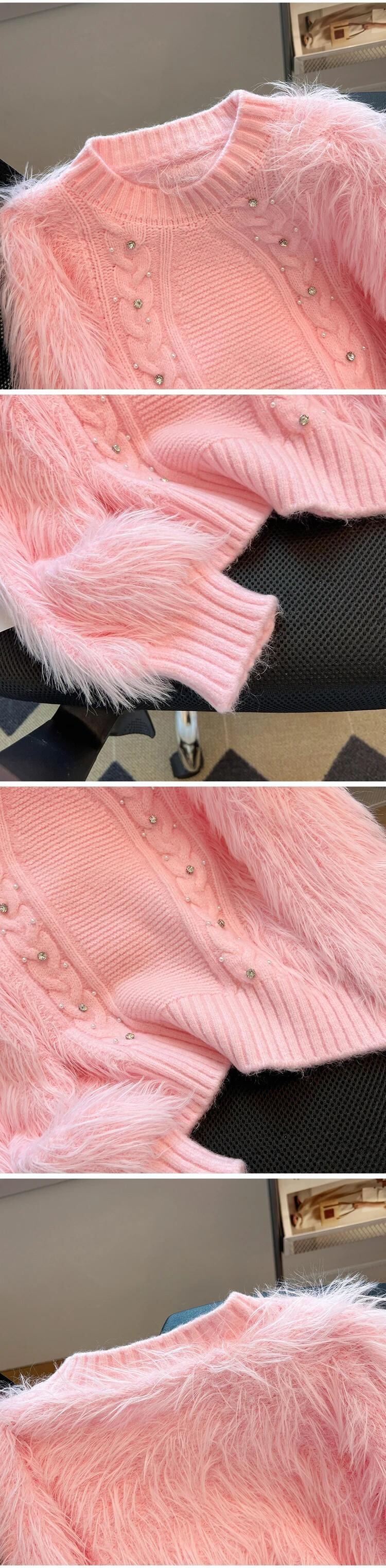 シック秋冬甘いユニークネイル ダイヤモンド ニット ミンク フリース プルオーバー セーター 大人ガーリー スウィート キュート カジュアル オータム 秋物 ウィンター 冬物