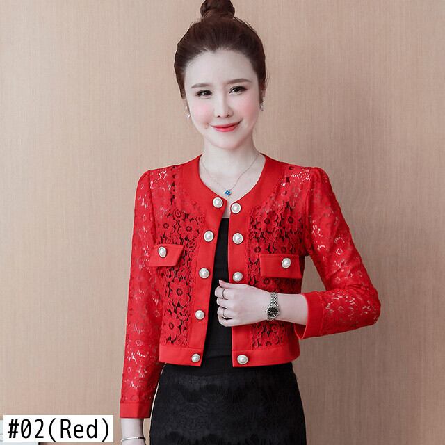 レースアウトコート夏日焼け止め赤、白、黒ジャケット ホワイト レッド ブラック サマー 夏物
