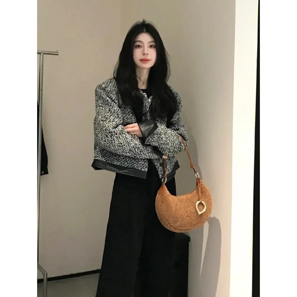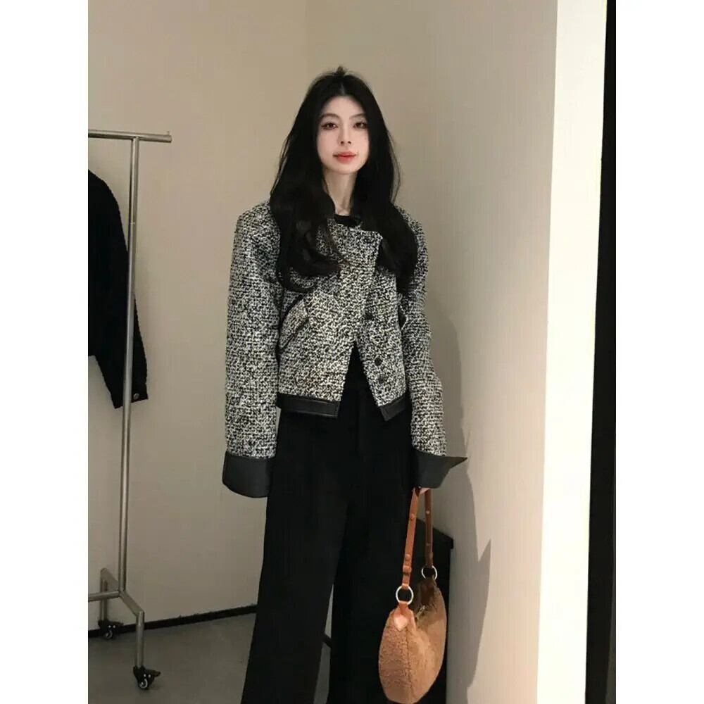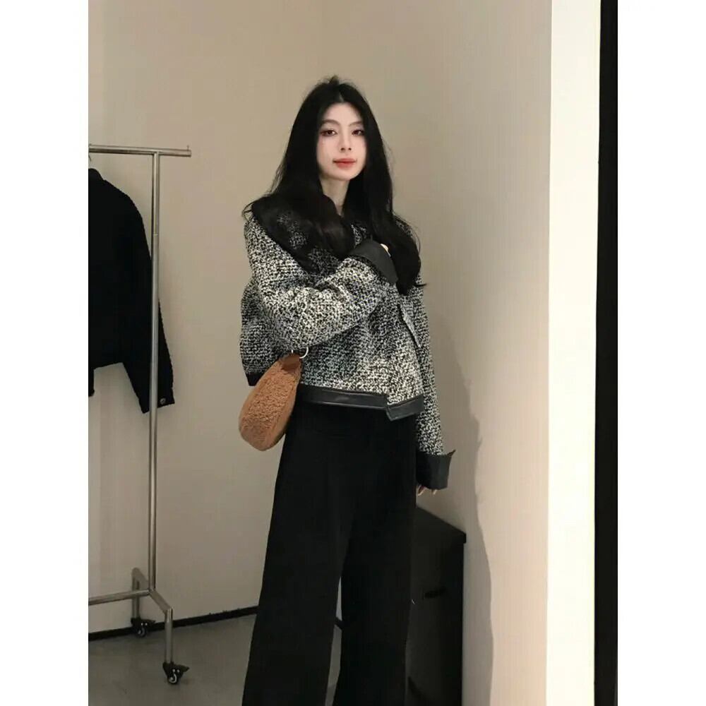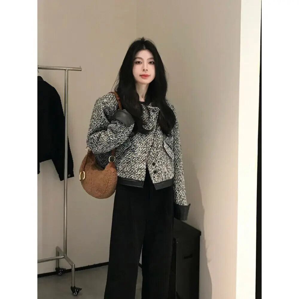 レトロツイード香りジャケット春秋ルーズ多目的ショートパッチワークコート スプリング 春物 オータム 秋物