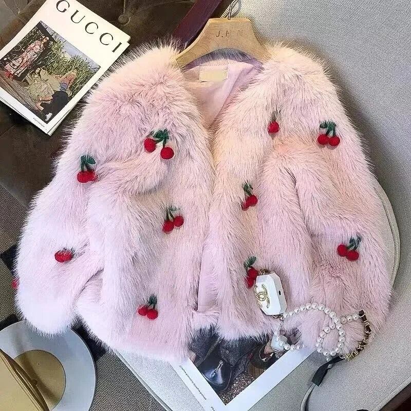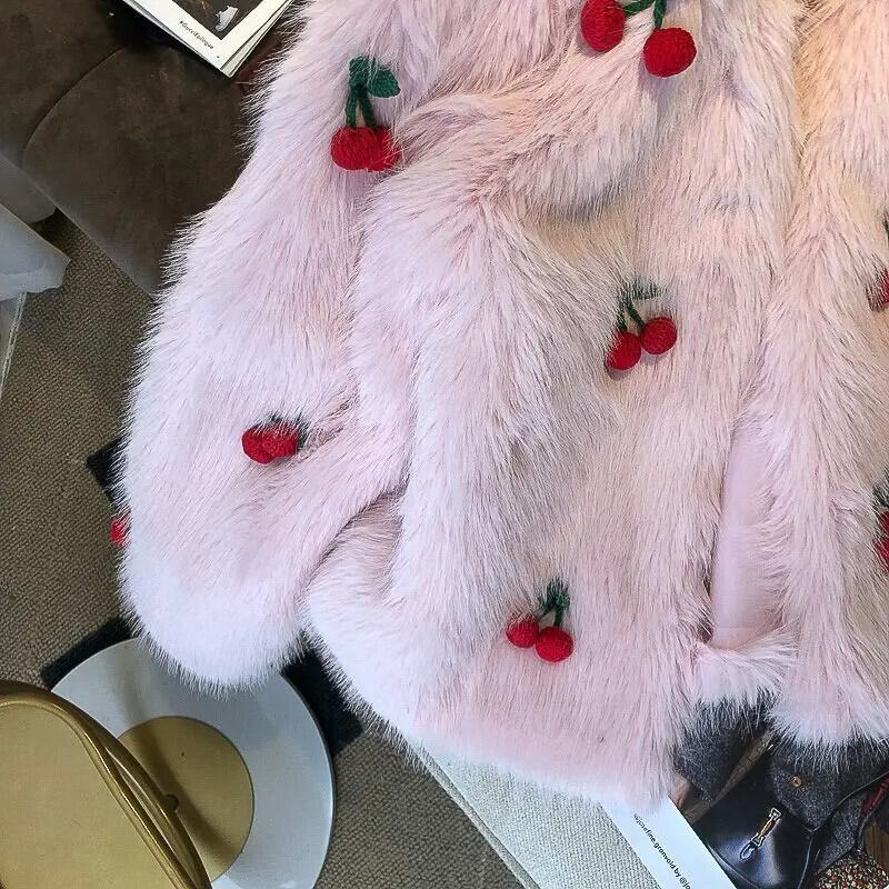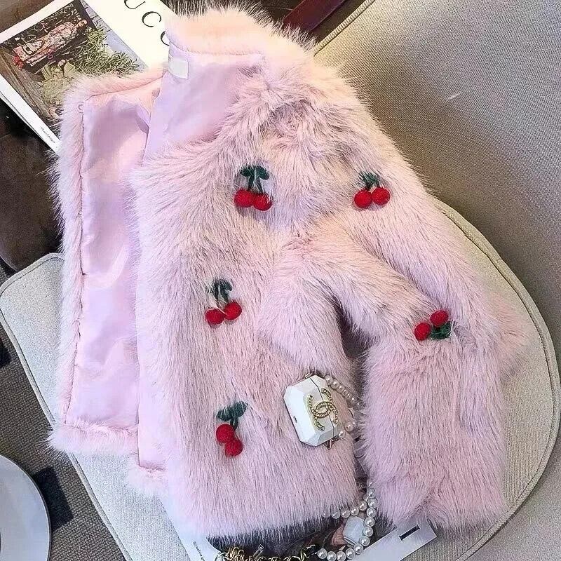 フェイクファーコート冬長袖カーディガン秋高級甘いふわふわチェリージャケット ロング 大人ガーリー スウィート キュート カジュアル オータム 秋物 ウィンター 冬物