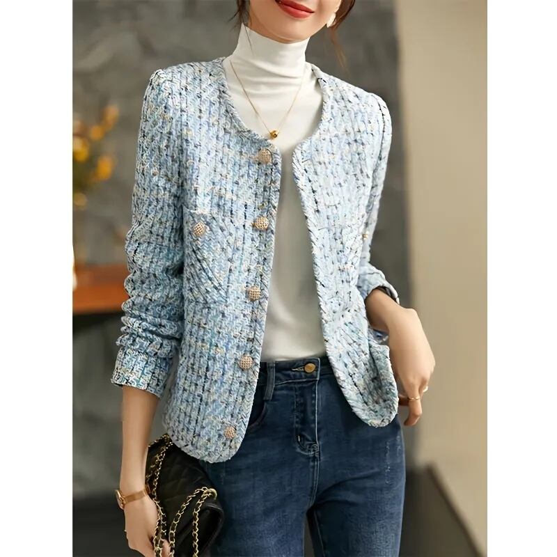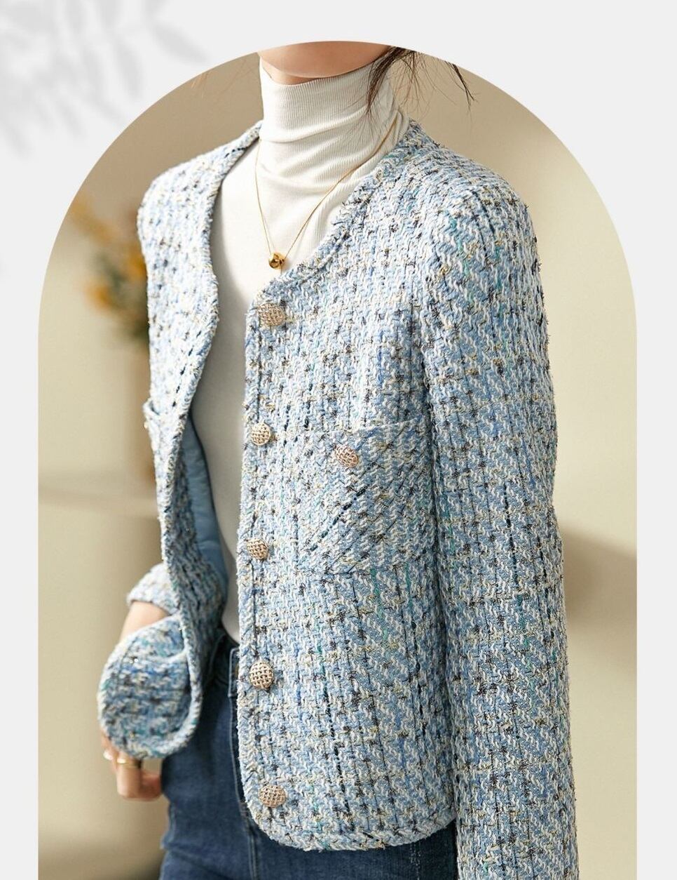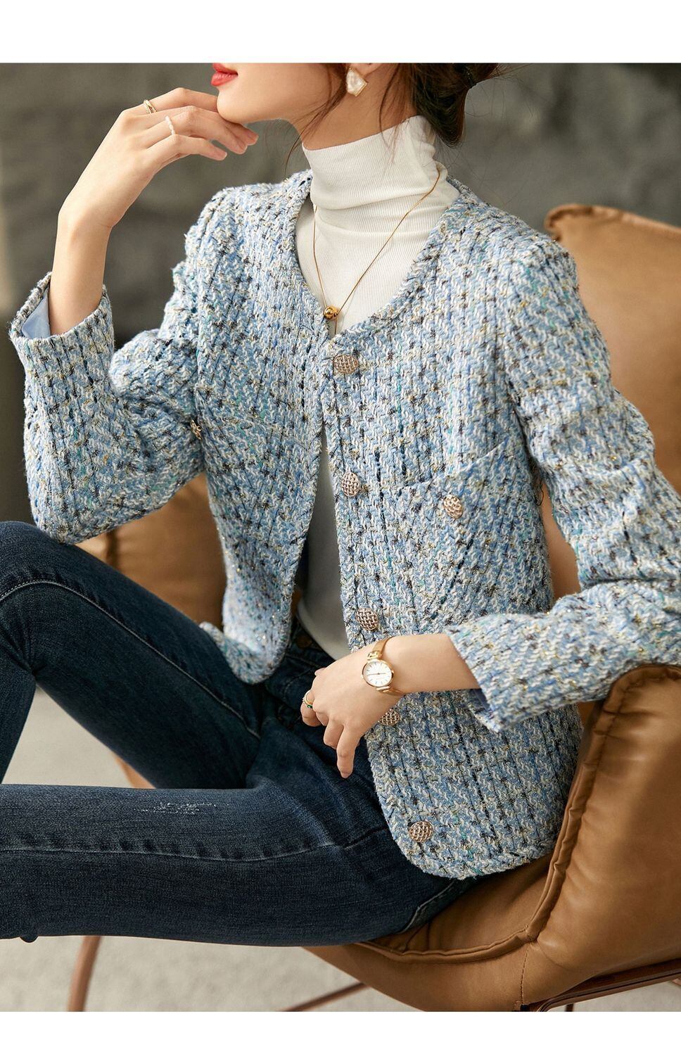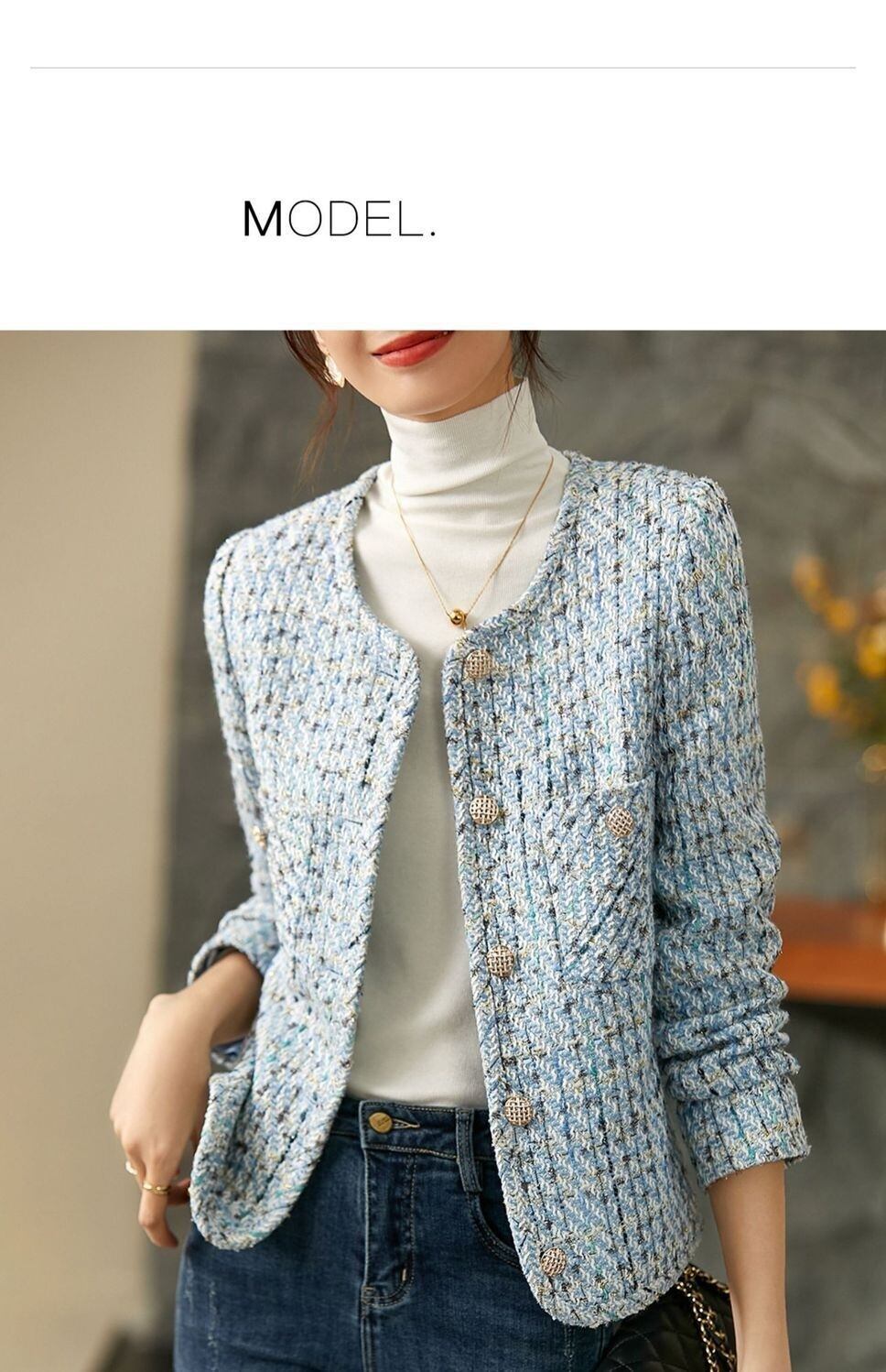有能香りラウンドネックジャケット春秋気質ルーズツイードコート スプリング 春物 オータム 秋物 Oネック