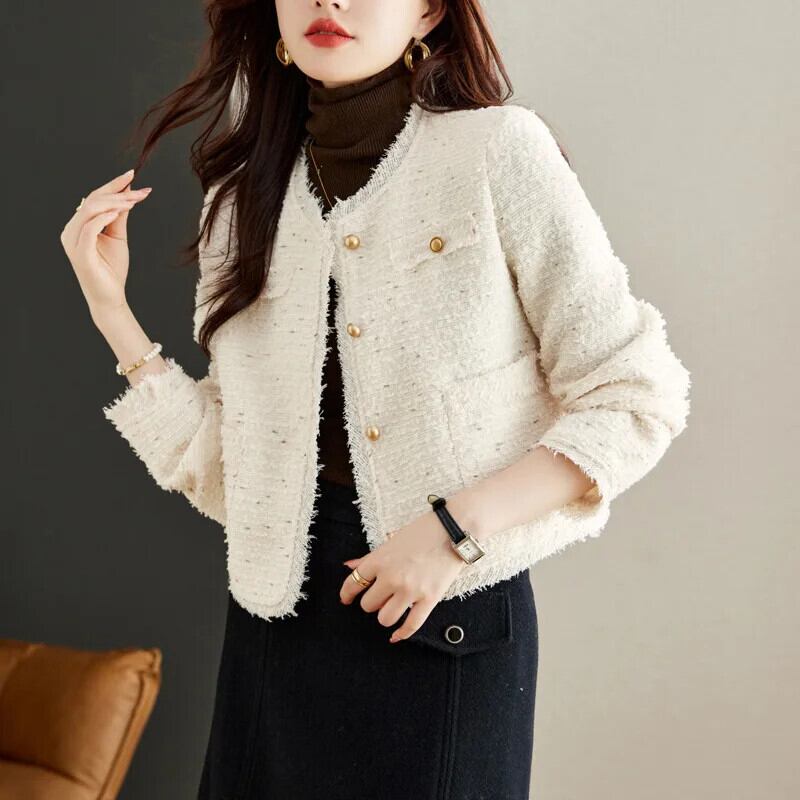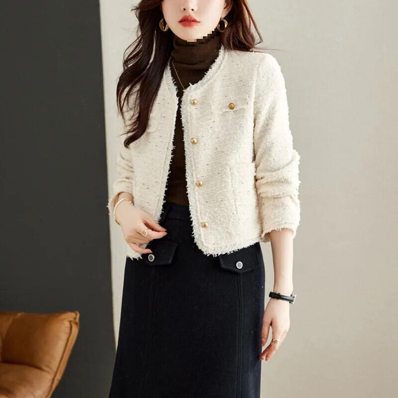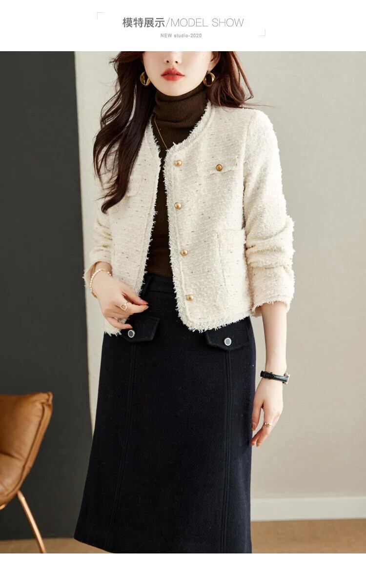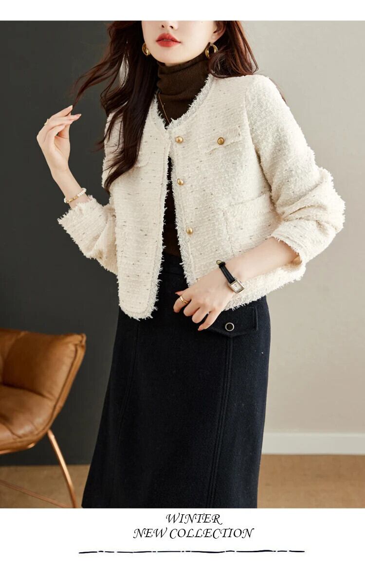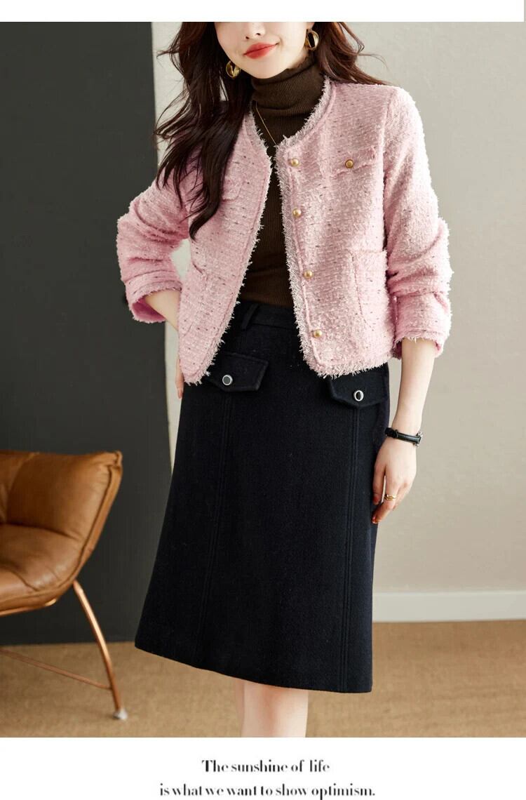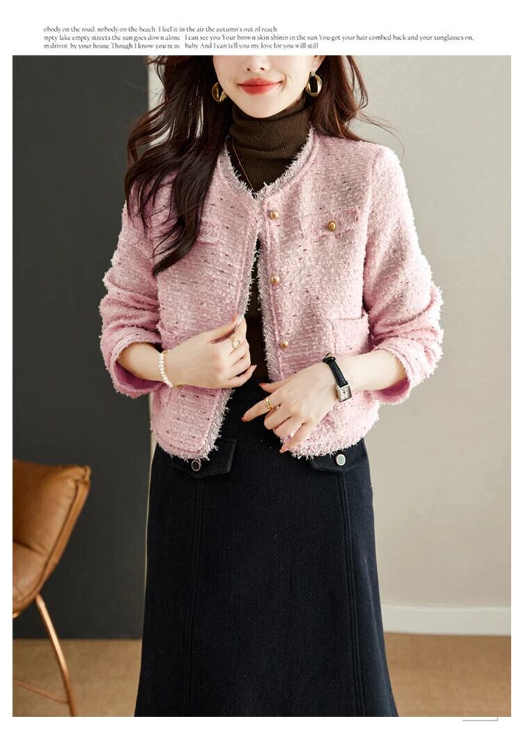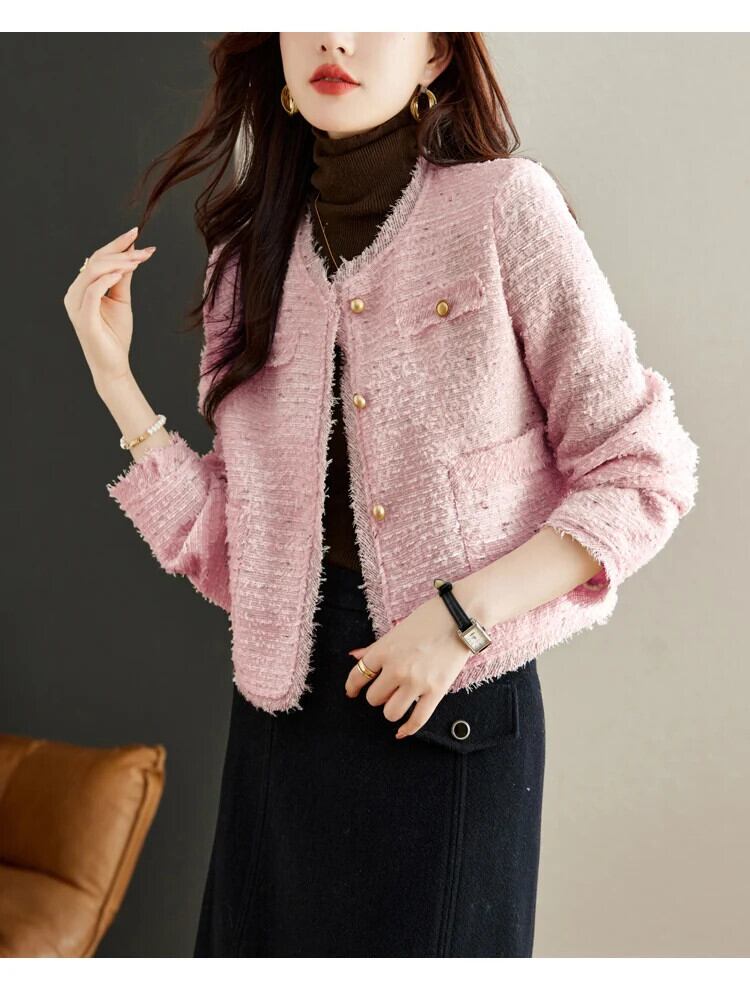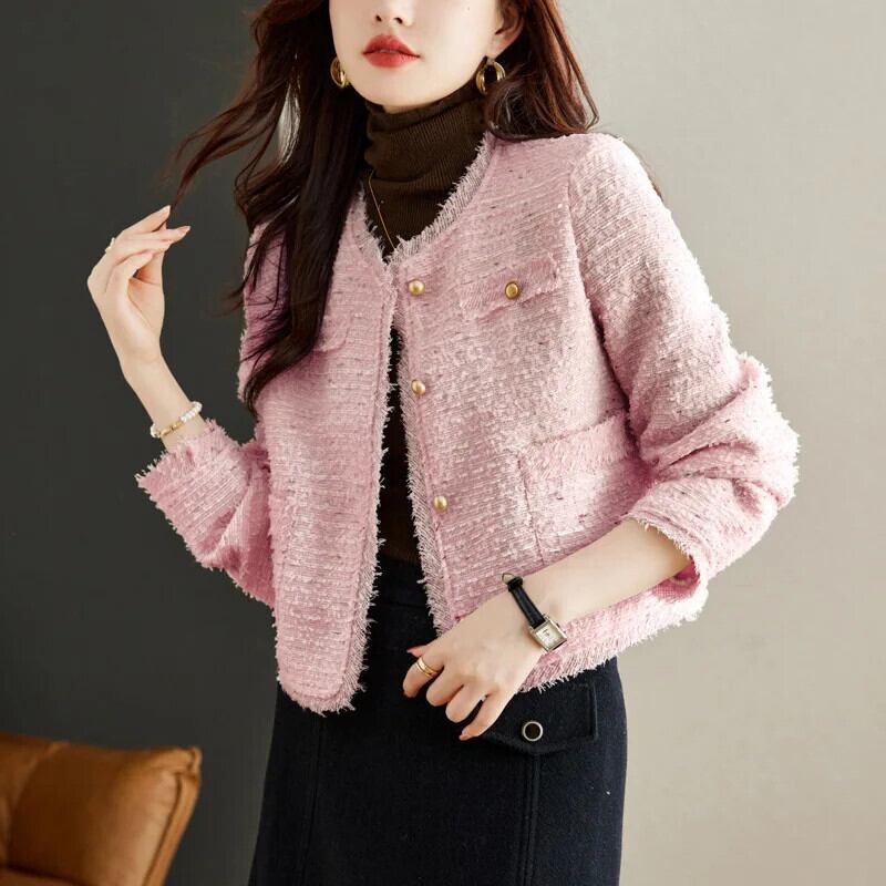 気質粗いツイードショートスタイル香りよいジャケット秋冬ピンクコート ウィンター 冬物