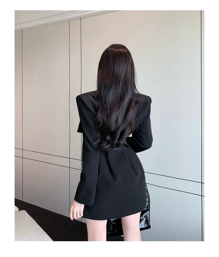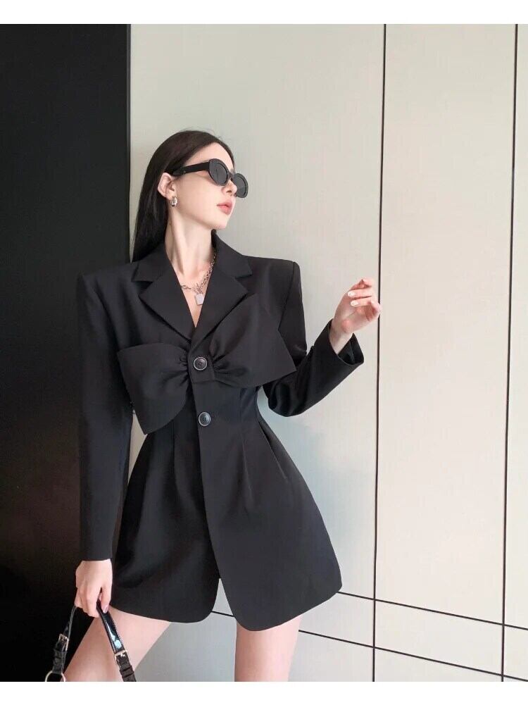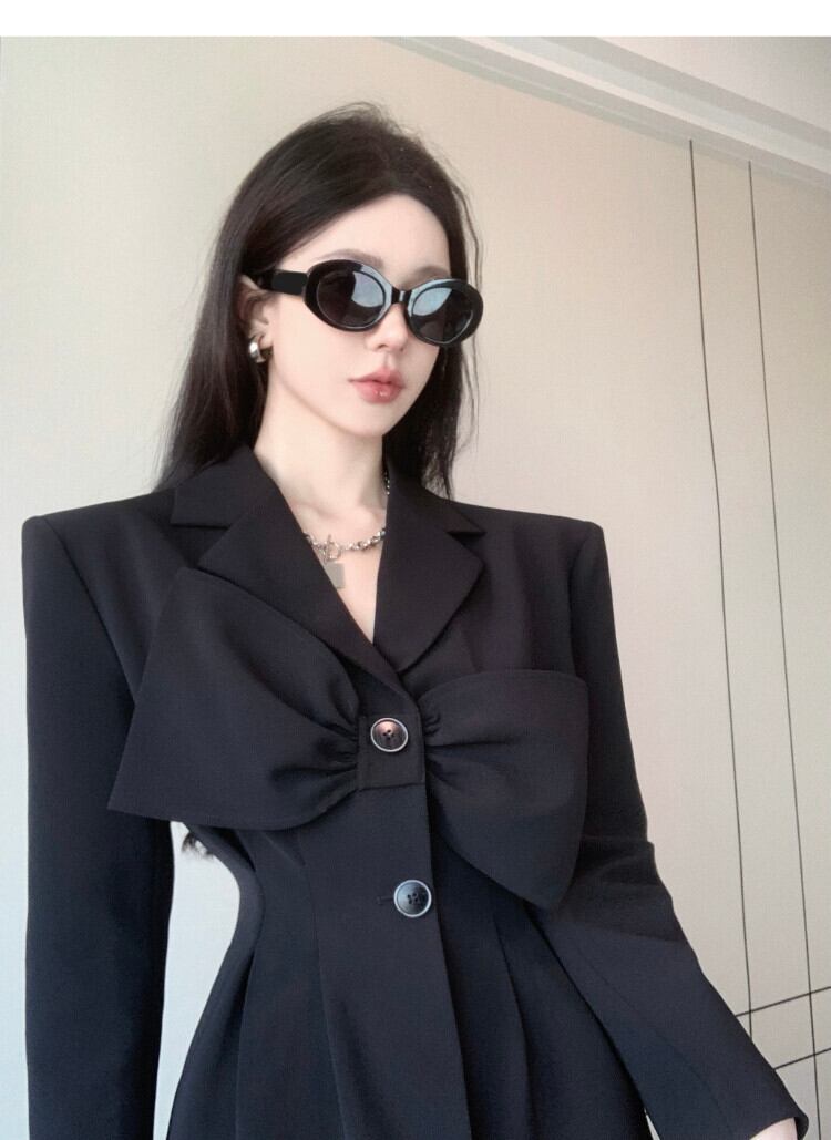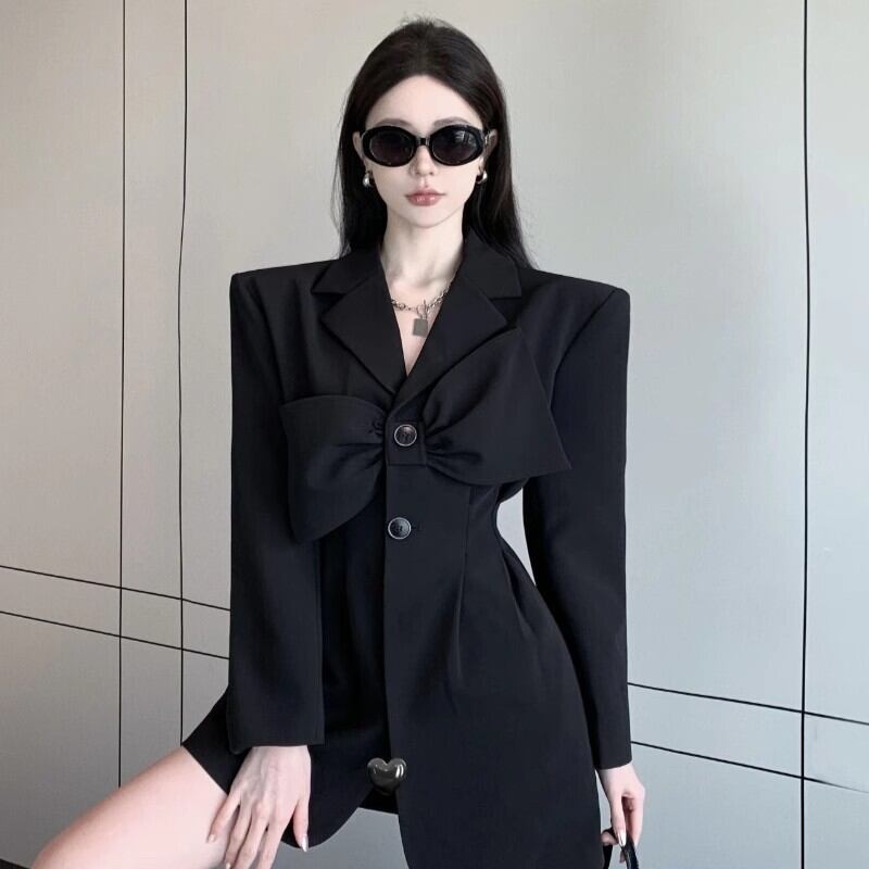 春リボンスタイルラップウエストブラックスーツコート婦人スリムOLブレザー スプリング 春物