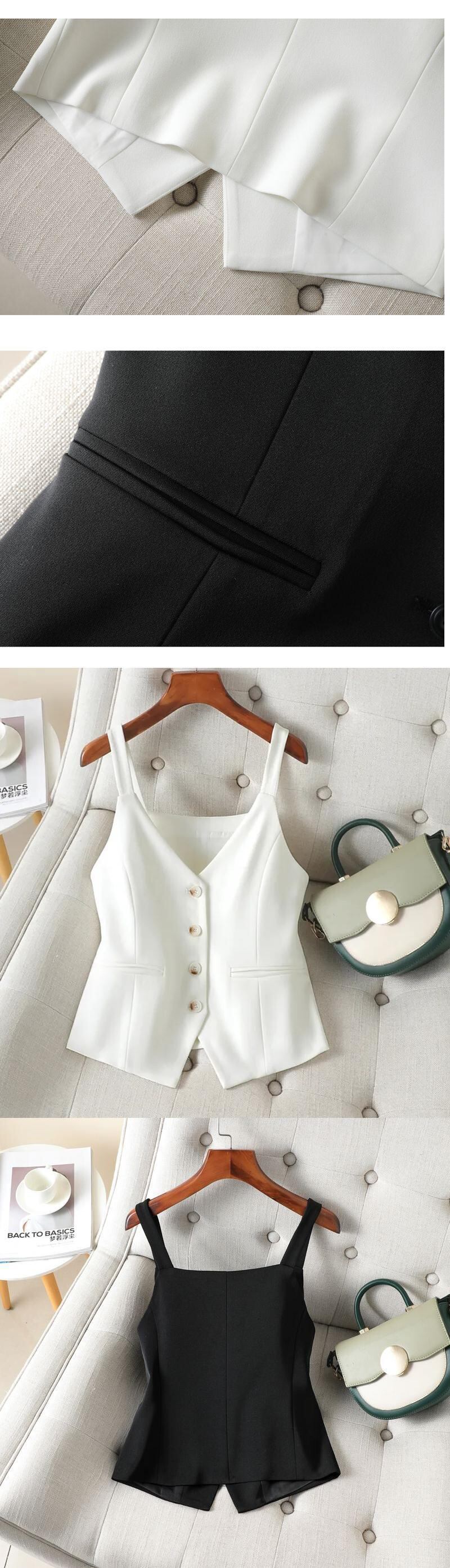 ストラップ ショート ベスト レディース 春夏 シングルブレスト ブラック ホワイト V ネック チョッキ ジャケット スプリング 春物 サマー 夏物 Vネック