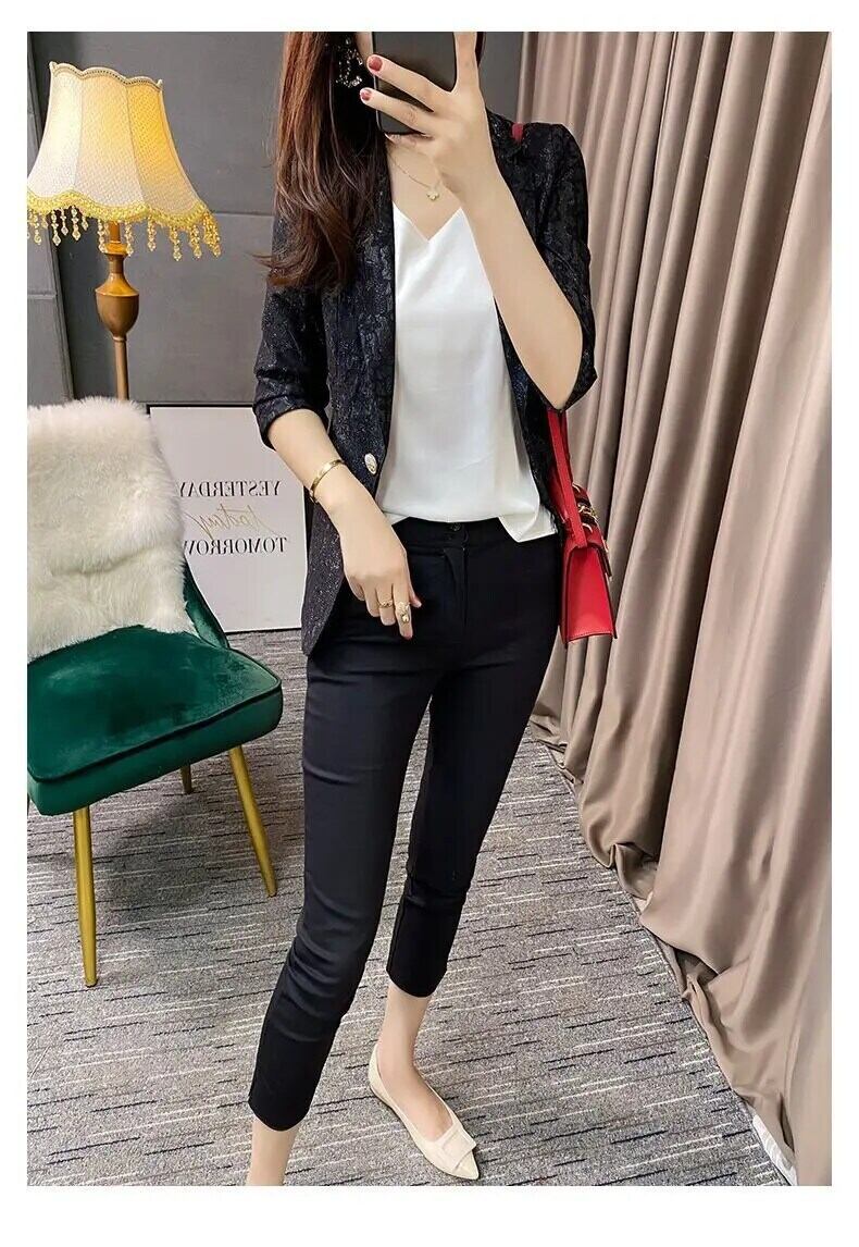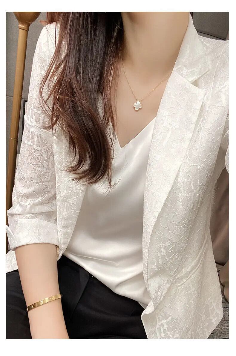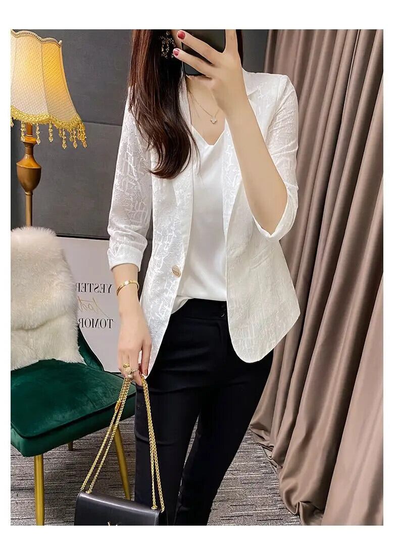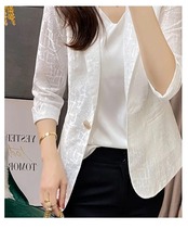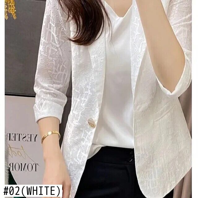 春/夏 1 つボタン薄いスーツ コート フェミニン フィット レース ブレザー スプリング 春物 サマー 夏物