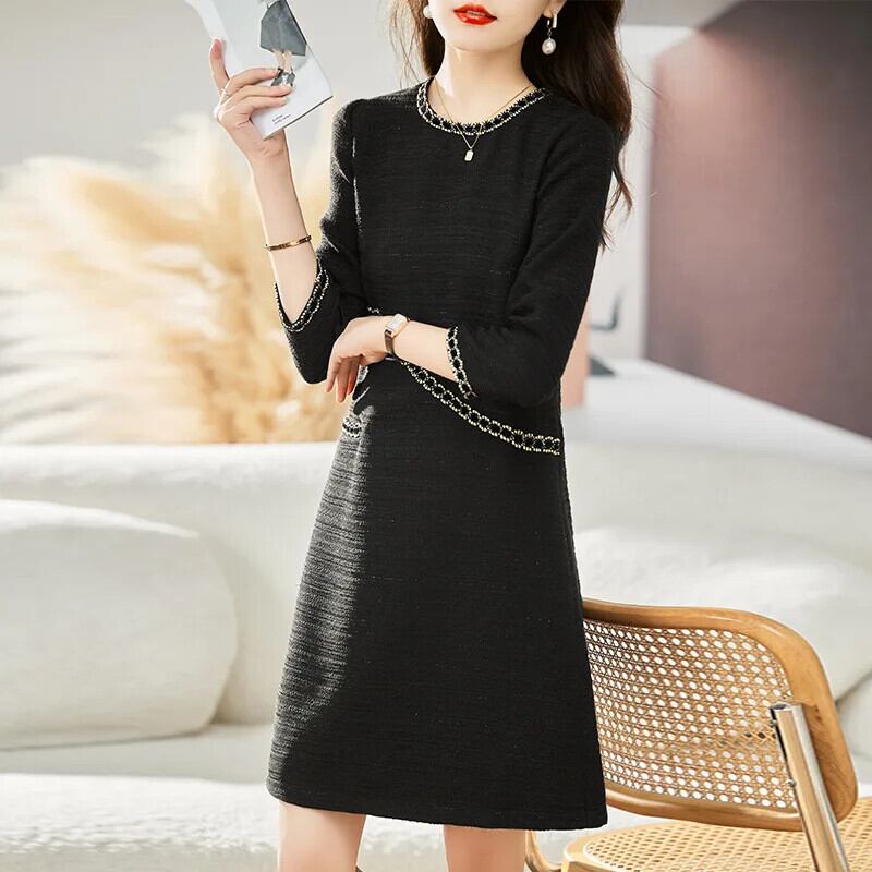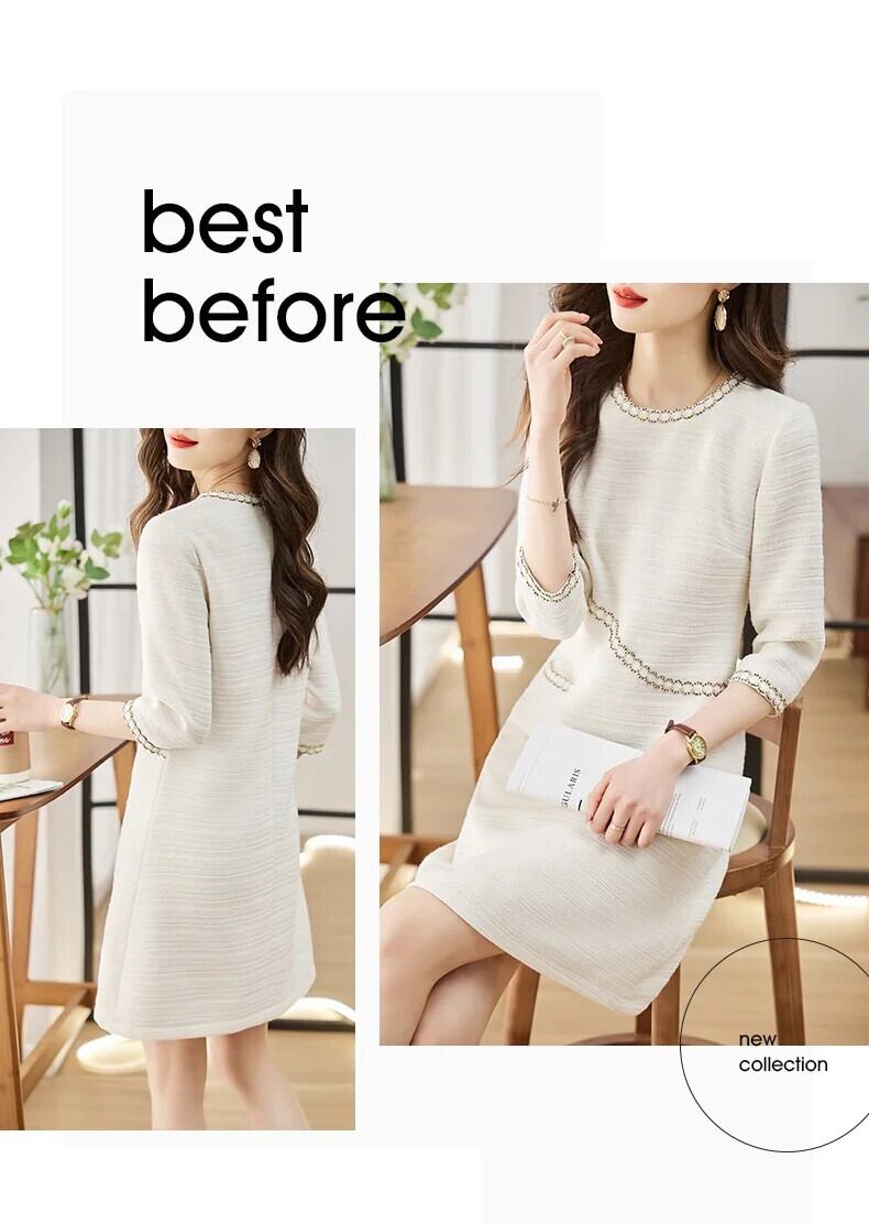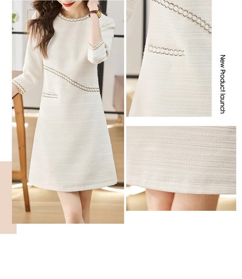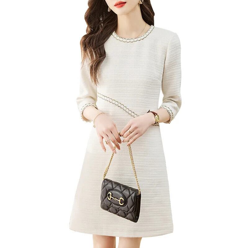 レディース 春 スリム フィット 7/4 スリーブ ミッドレングス シック ドレス トレンド スプリング 春物