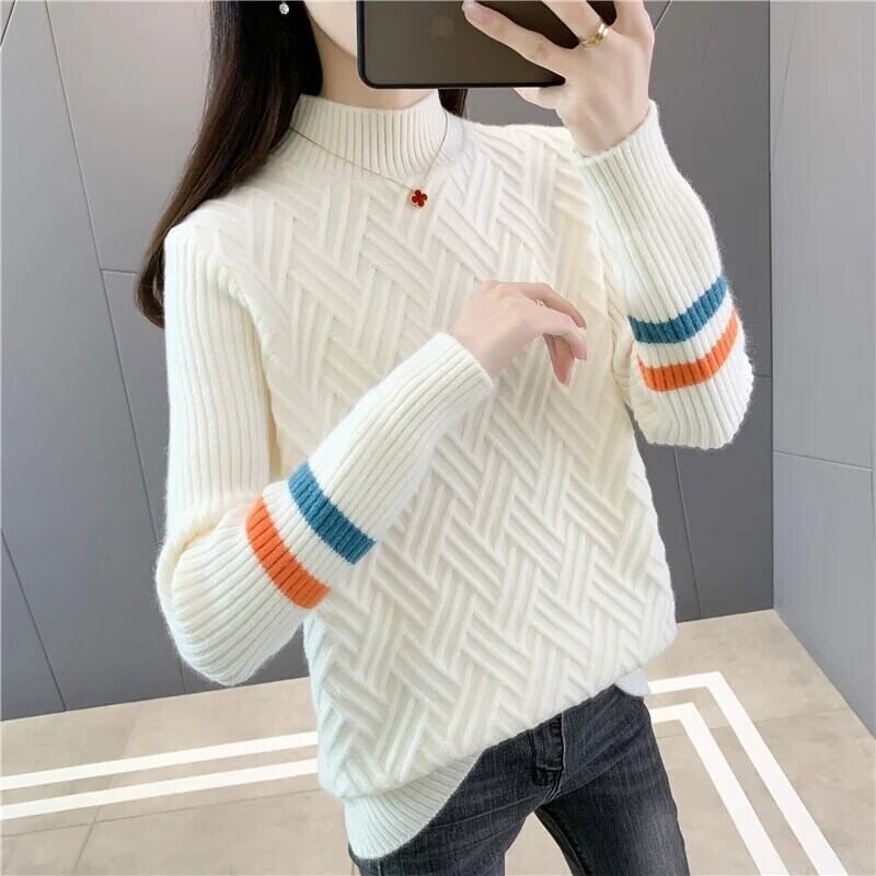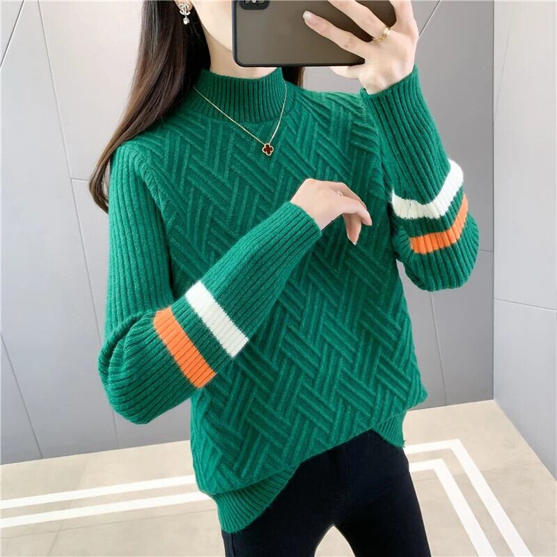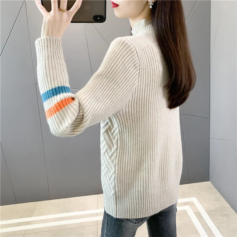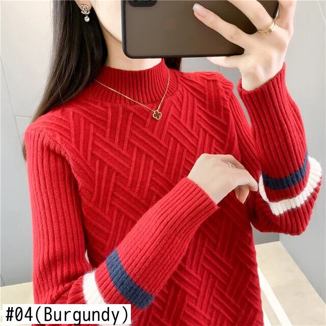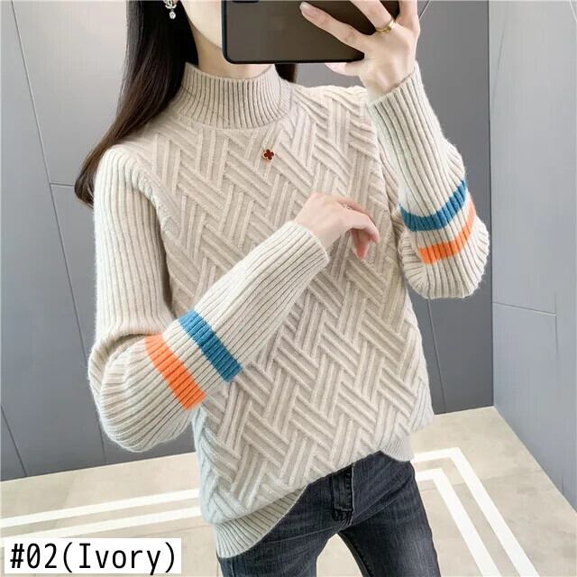 レディースニット秋冬半襟ジャガードカラーエクスプロージョンセーター オータム 秋物 ウィンター 冬物