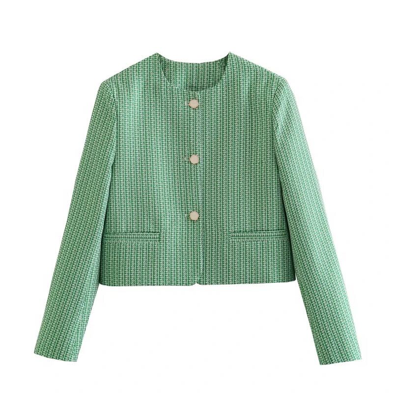春秋香りよい長袖テクスチャーショートブレザーグリーンスーツコート ロング レッド スプリング 春物 オータム 秋物