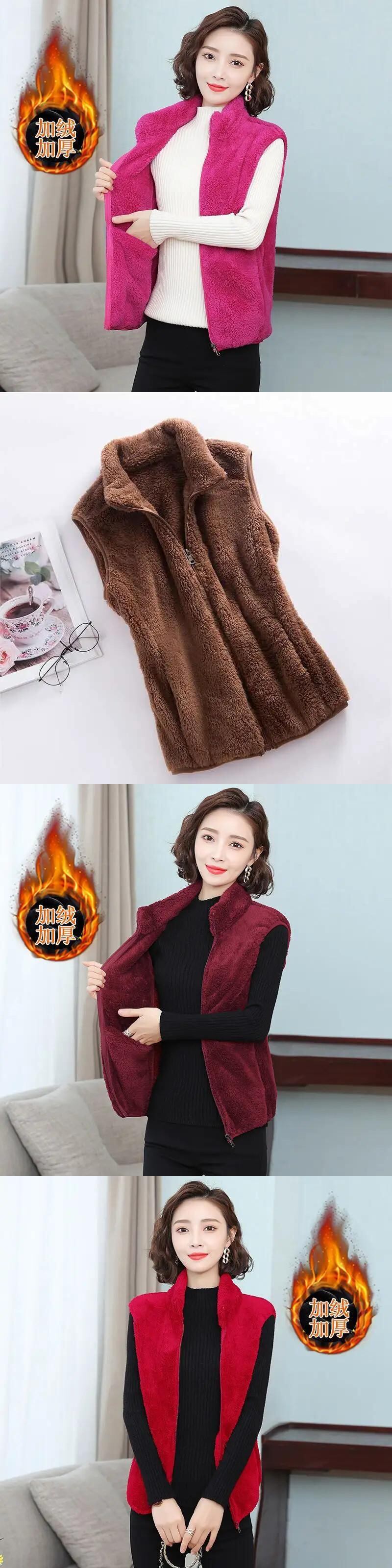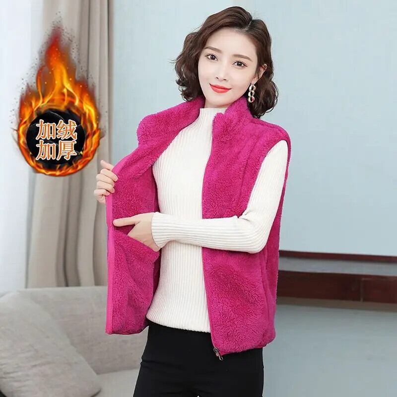 屋外秋冬サンゴ豪華厚く暖かいフリースベストジャケット 4XL チョッキ オータム 秋物 ウィンター 冬物