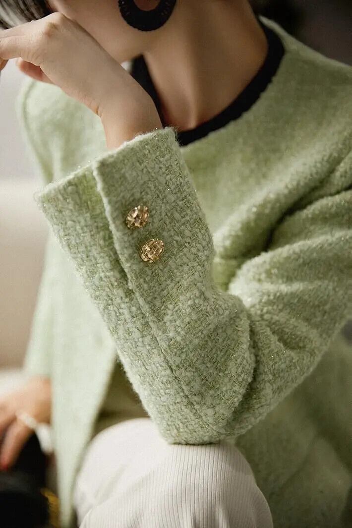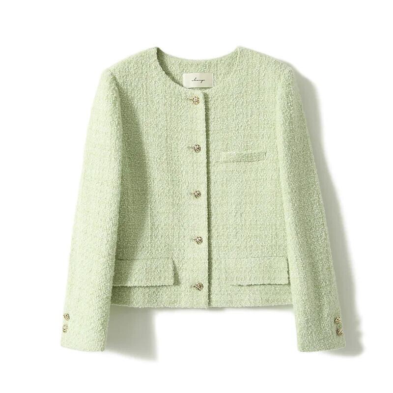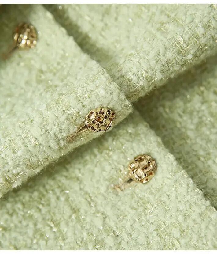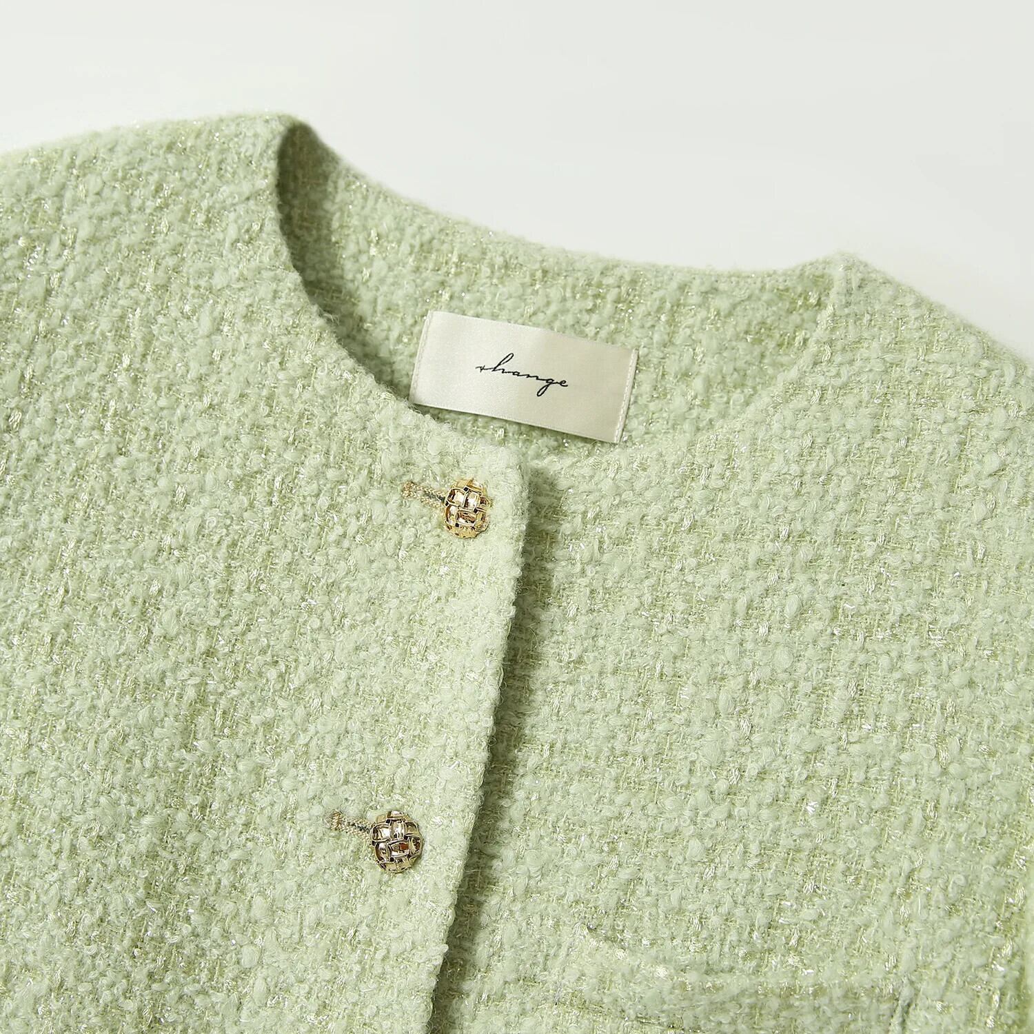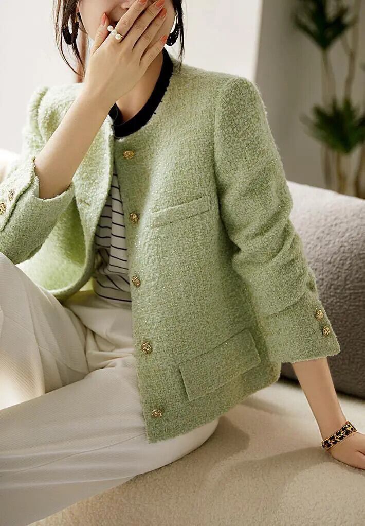 レディース 秋 グリーン ショート ウーブン ツイード スーツ コート OL ウール ブレザー オータム 秋物