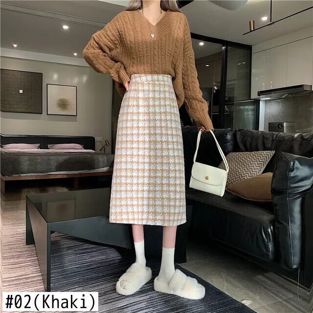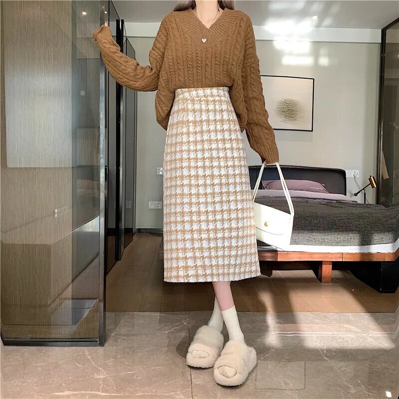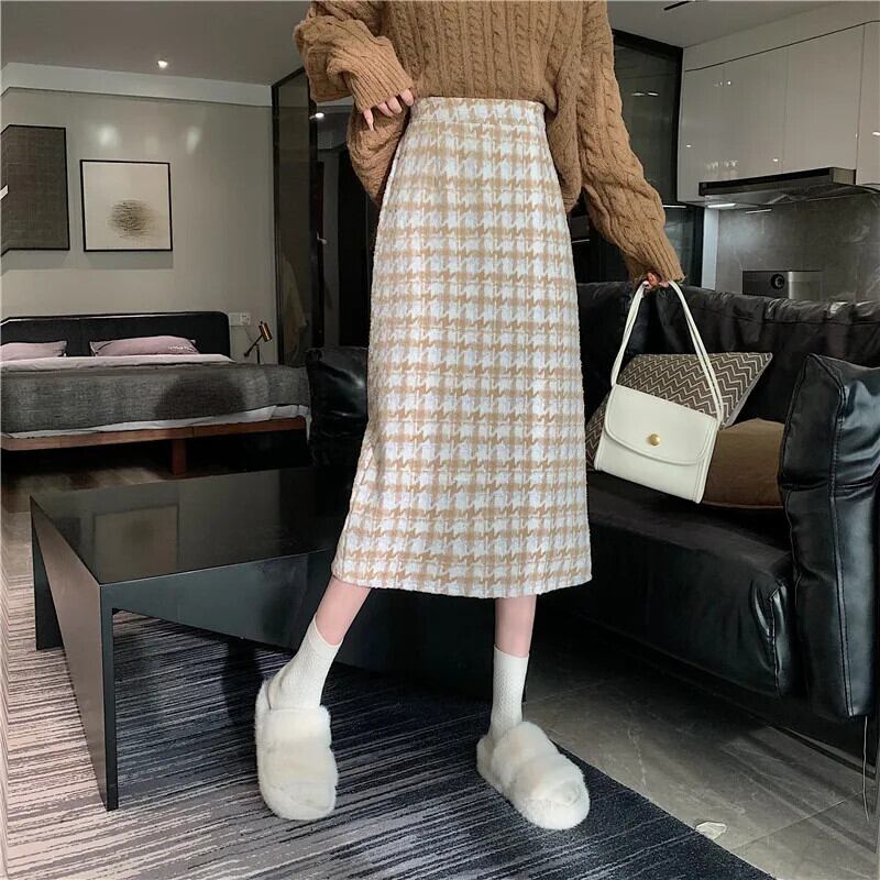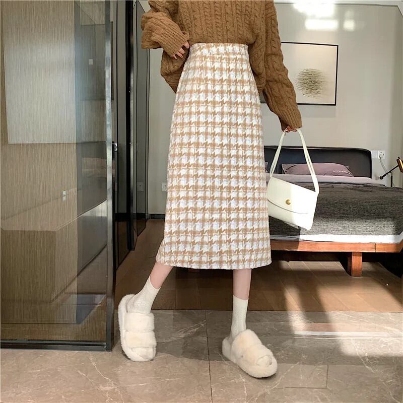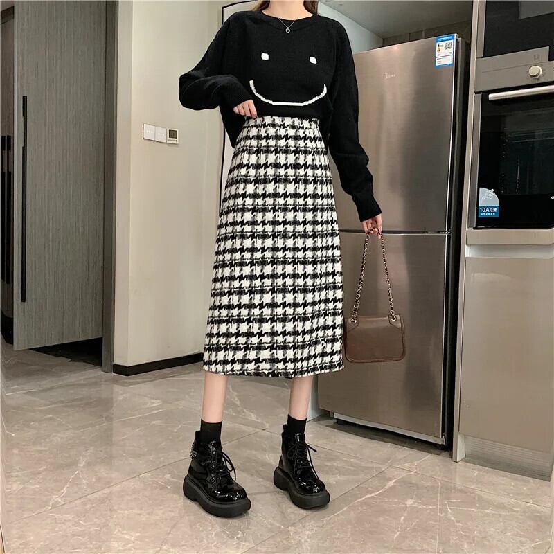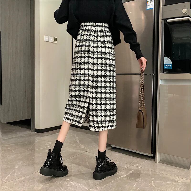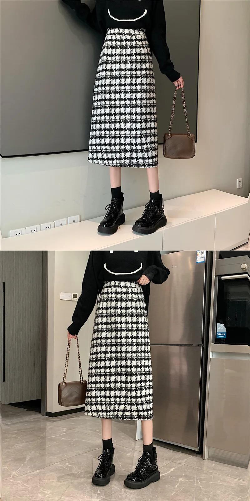 秋冬ウエスト肥厚 A ライン多用途チェック柄ウールハーフスカート S-4XL ウィンター 冬物 Aライン
