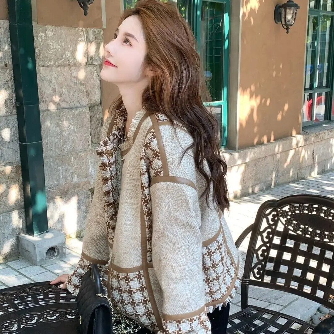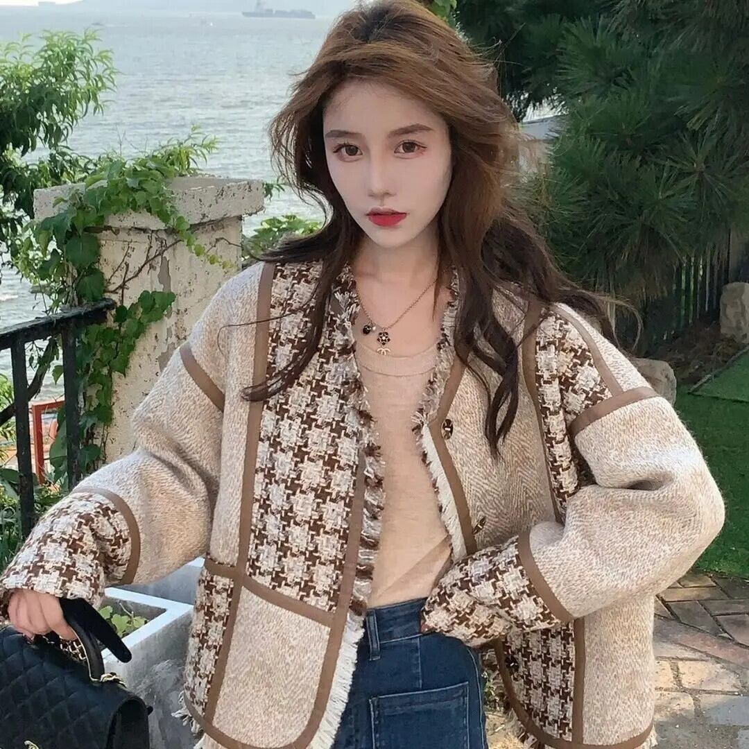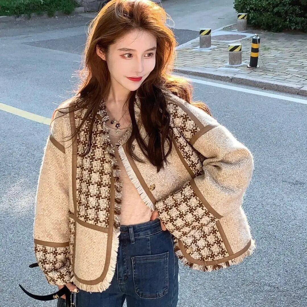 秋/冬シックチェック柄ツイード テル ウィンド スーツジャケット ルーズ ブレザー オータム 秋物 ウィンター 冬物