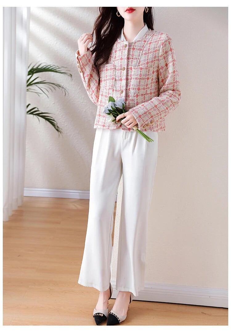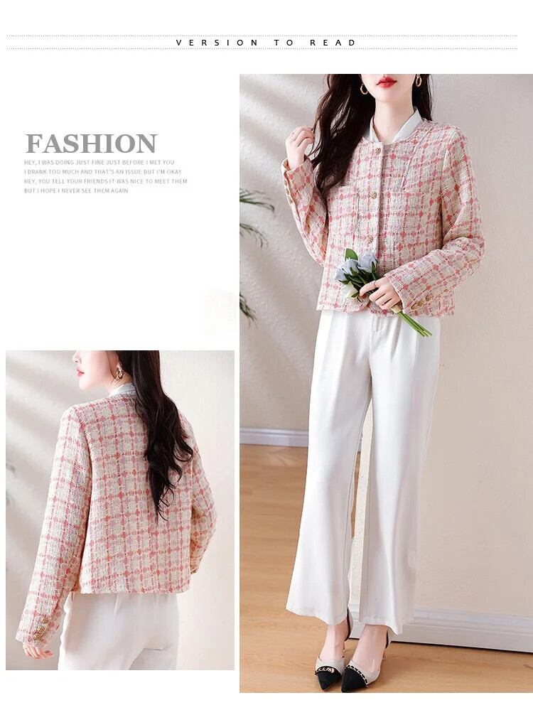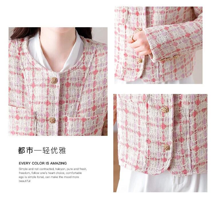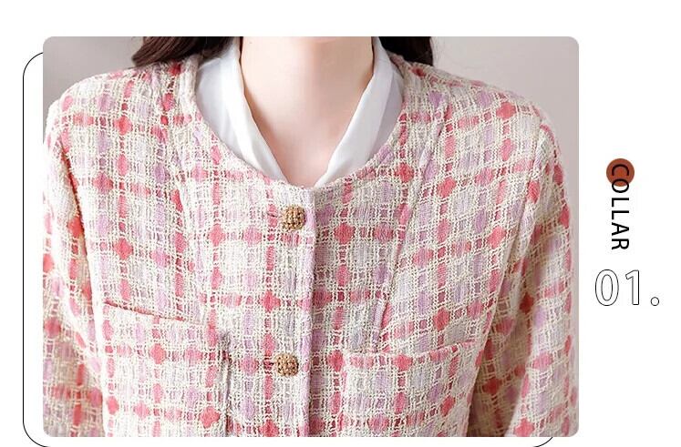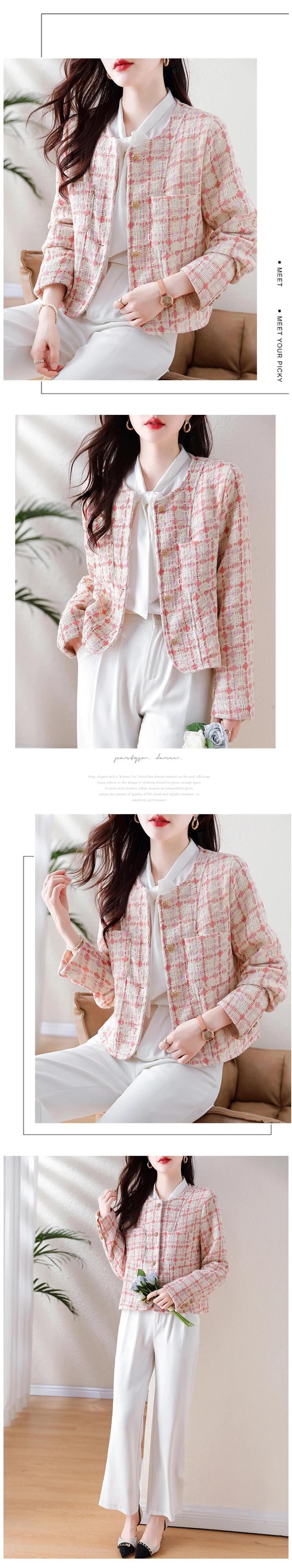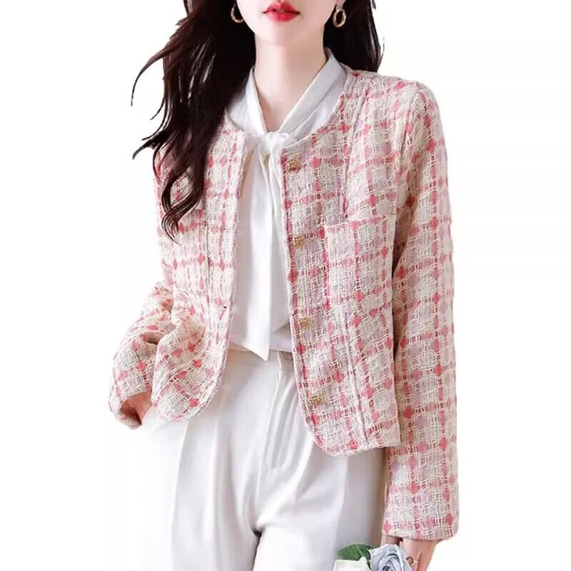 ピンクチェック柄香りよいラフツイードコート秋/冬気質ショートウールジャケット オータム 秋物 ウィンター 冬物