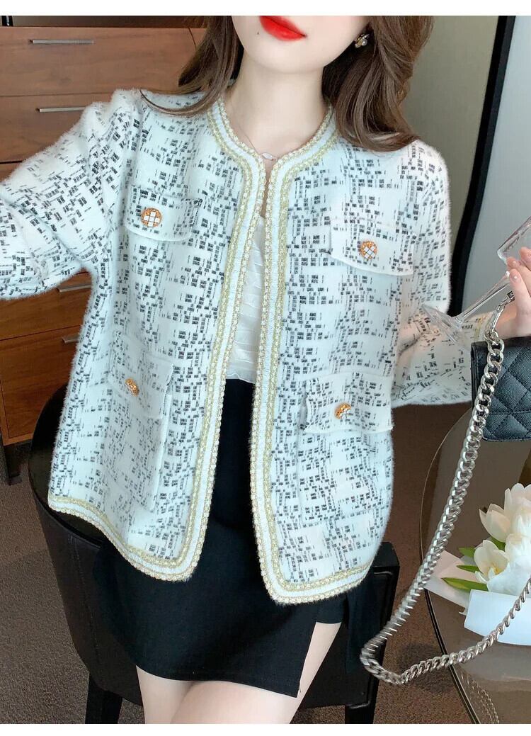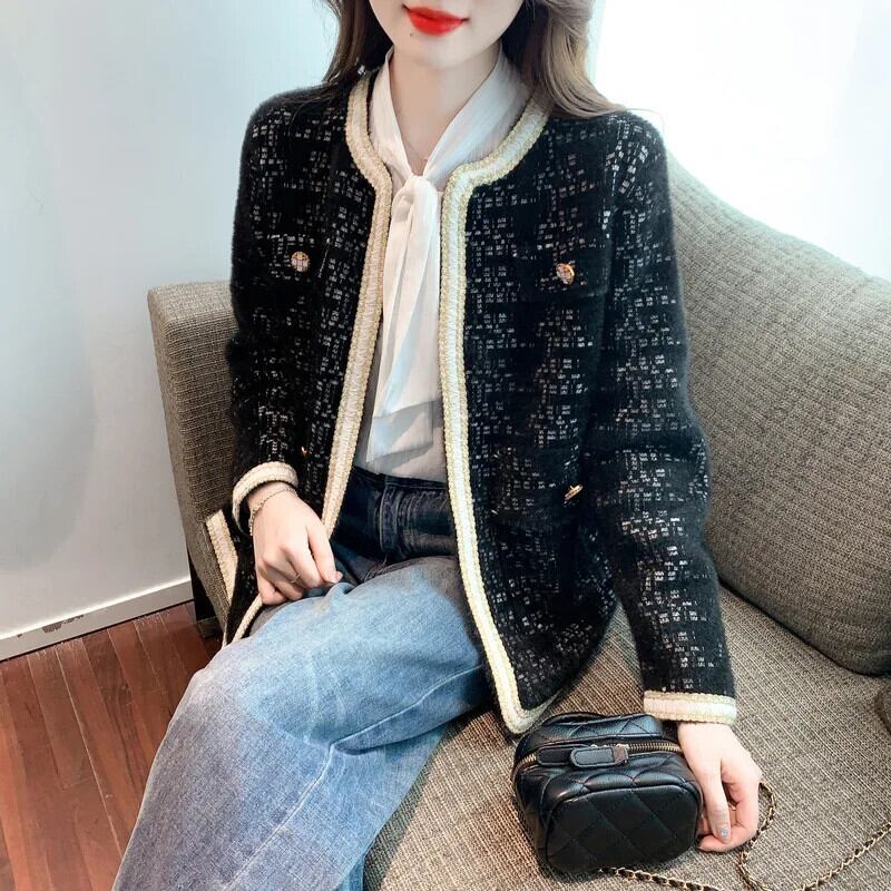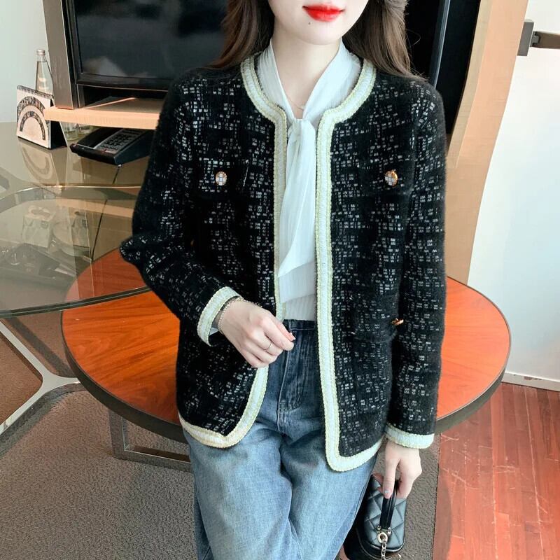 秋と冬カーディガンニットコート弾性ミンクセーターシングルボタン エラスティック 伸縮 オータム 秋物 ウィンター 冬物