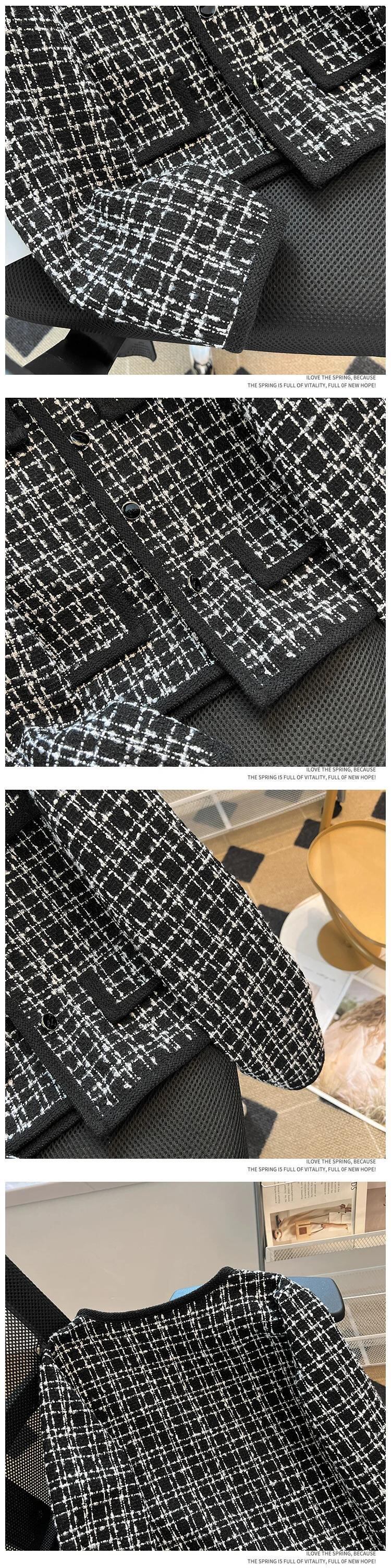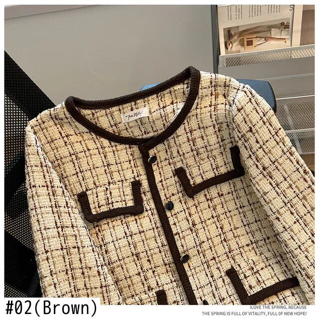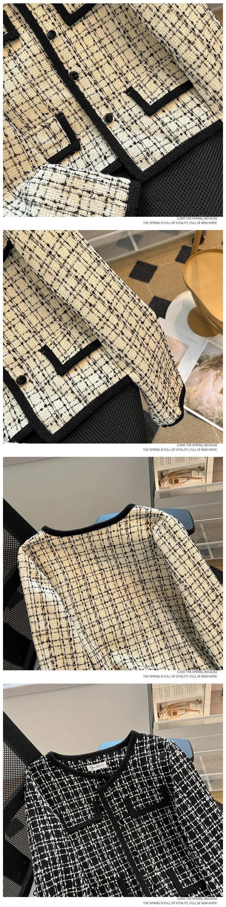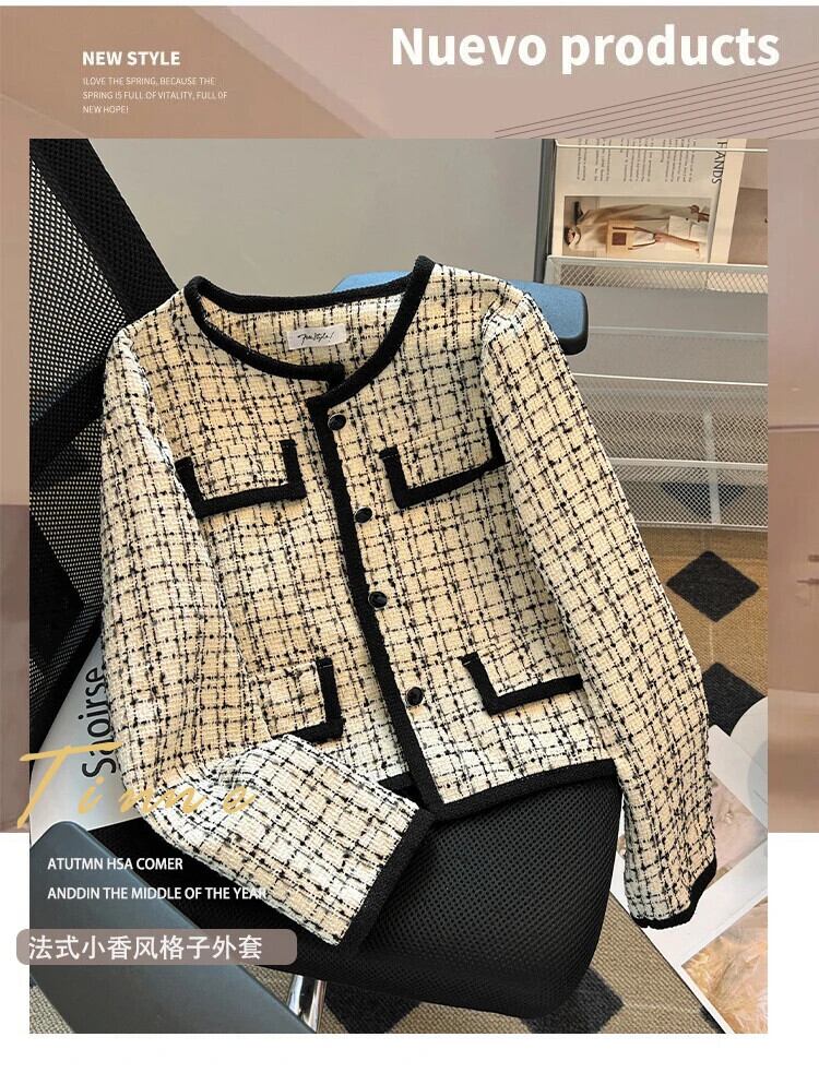 粗いウールチェック柄ショートジャケット春秋シングルブレストコート スプリング 春物 オータム 秋物