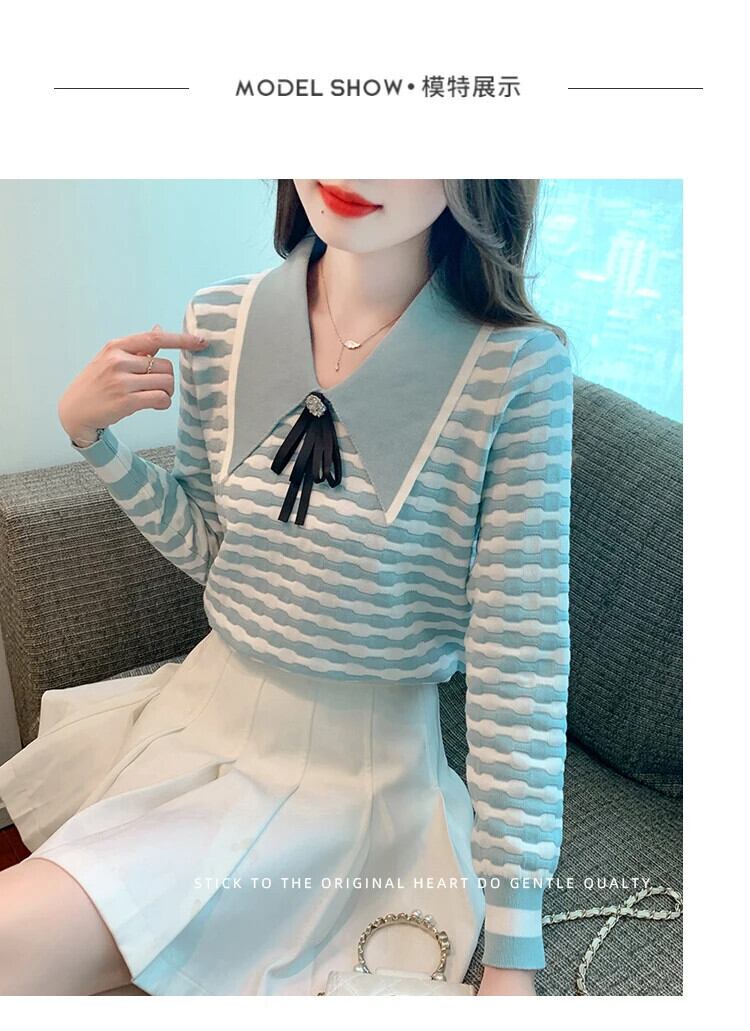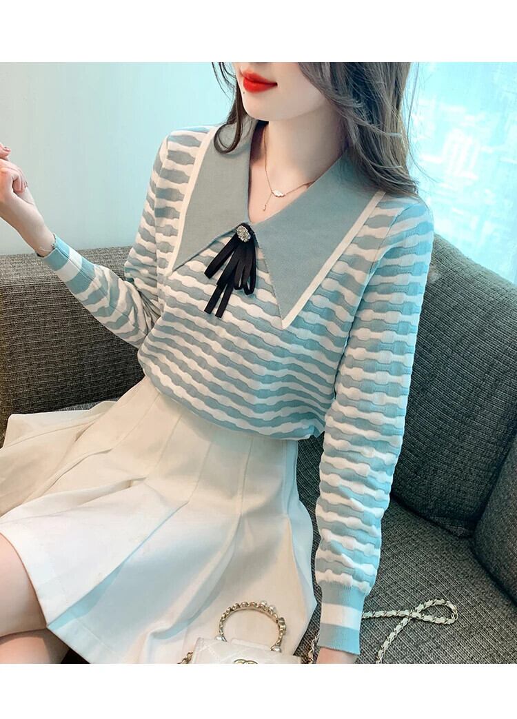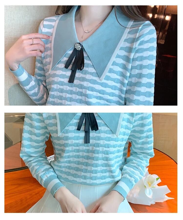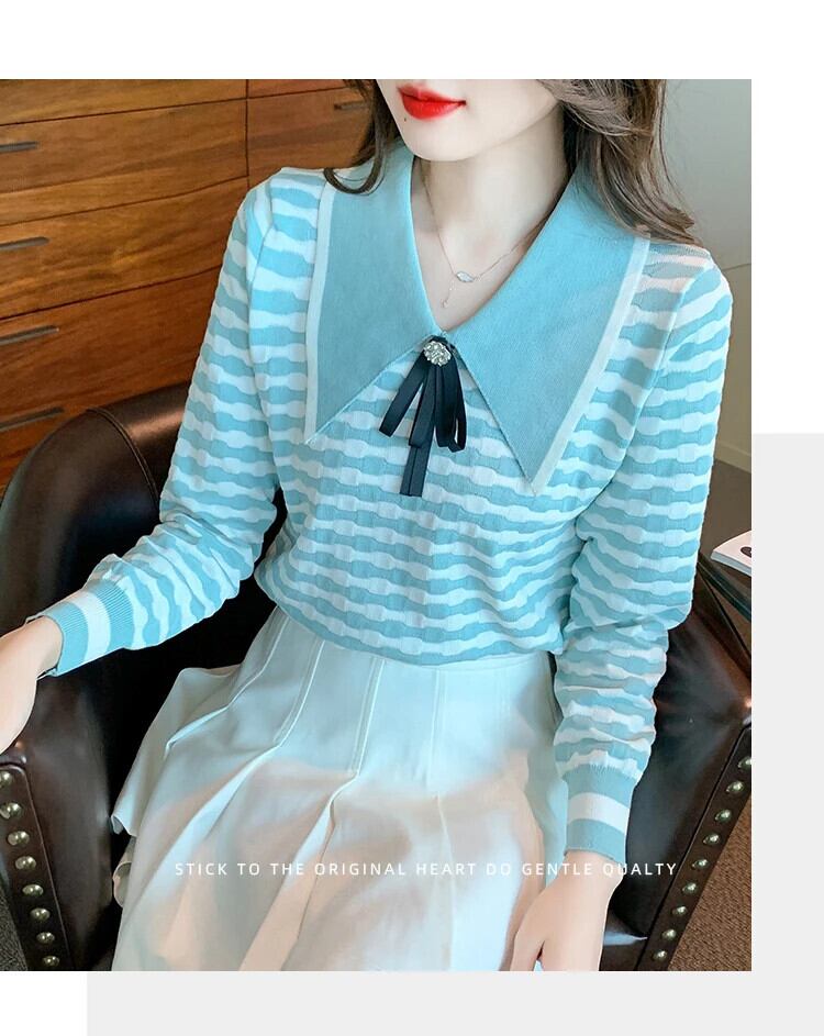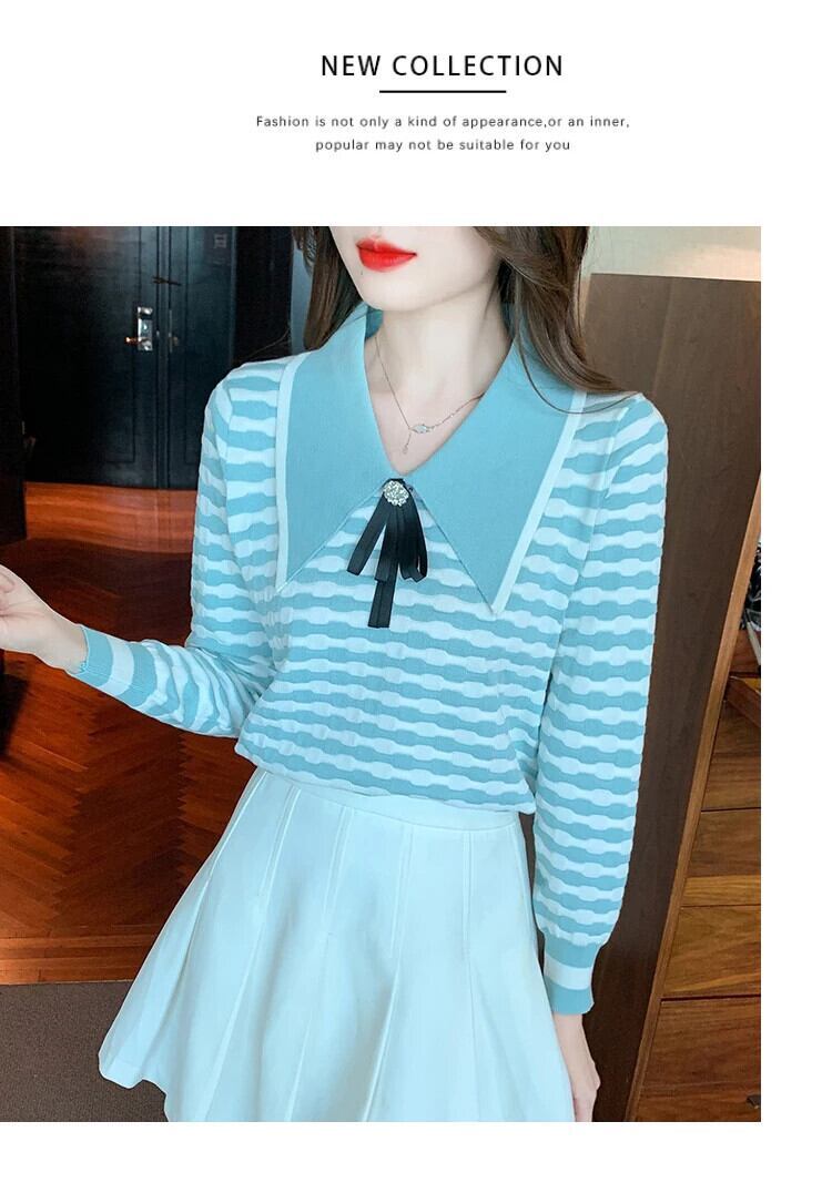 冬秋ドールネックボウストライプニット下敷きセーター リボン オータム 秋物 ウィンター 冬物