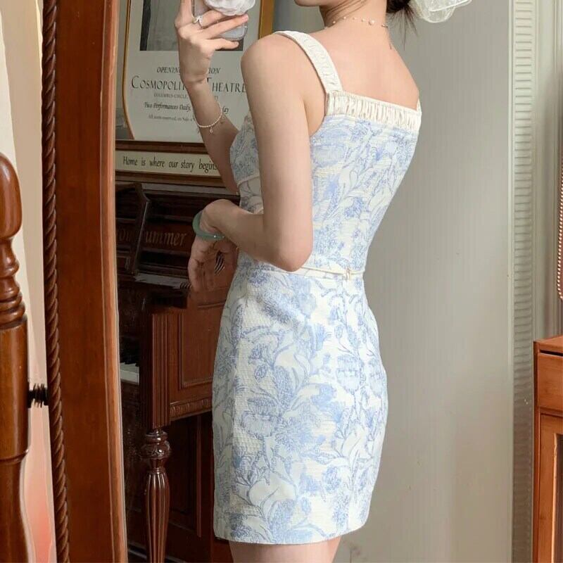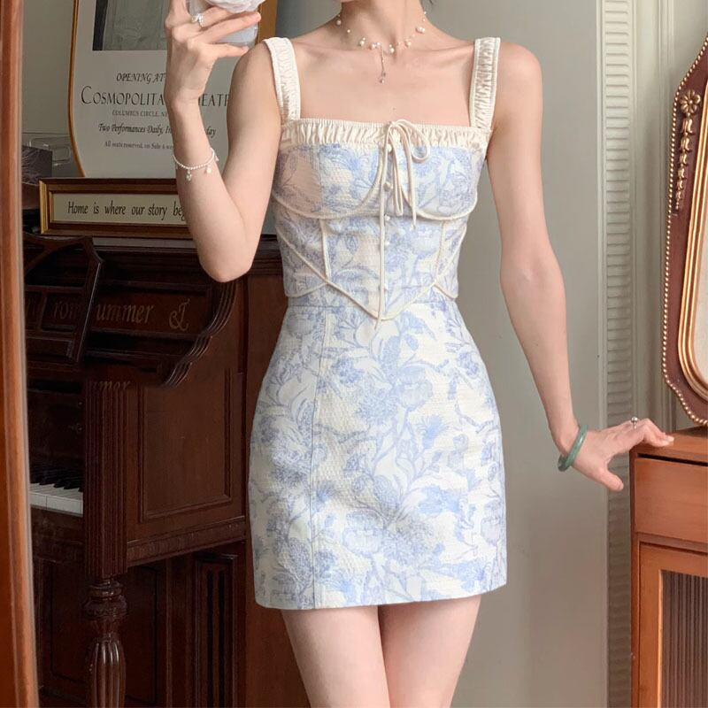 レディースサマーセットプリントストラップトップ+ハーフスカートツーピーススーツ 夏物