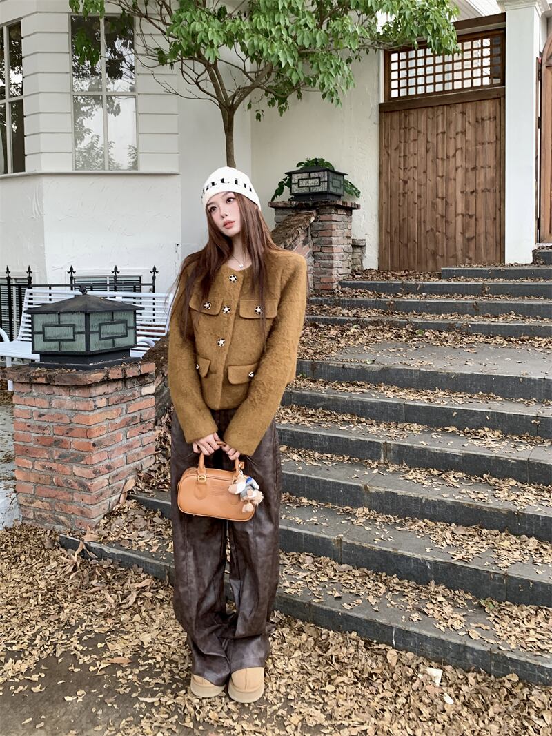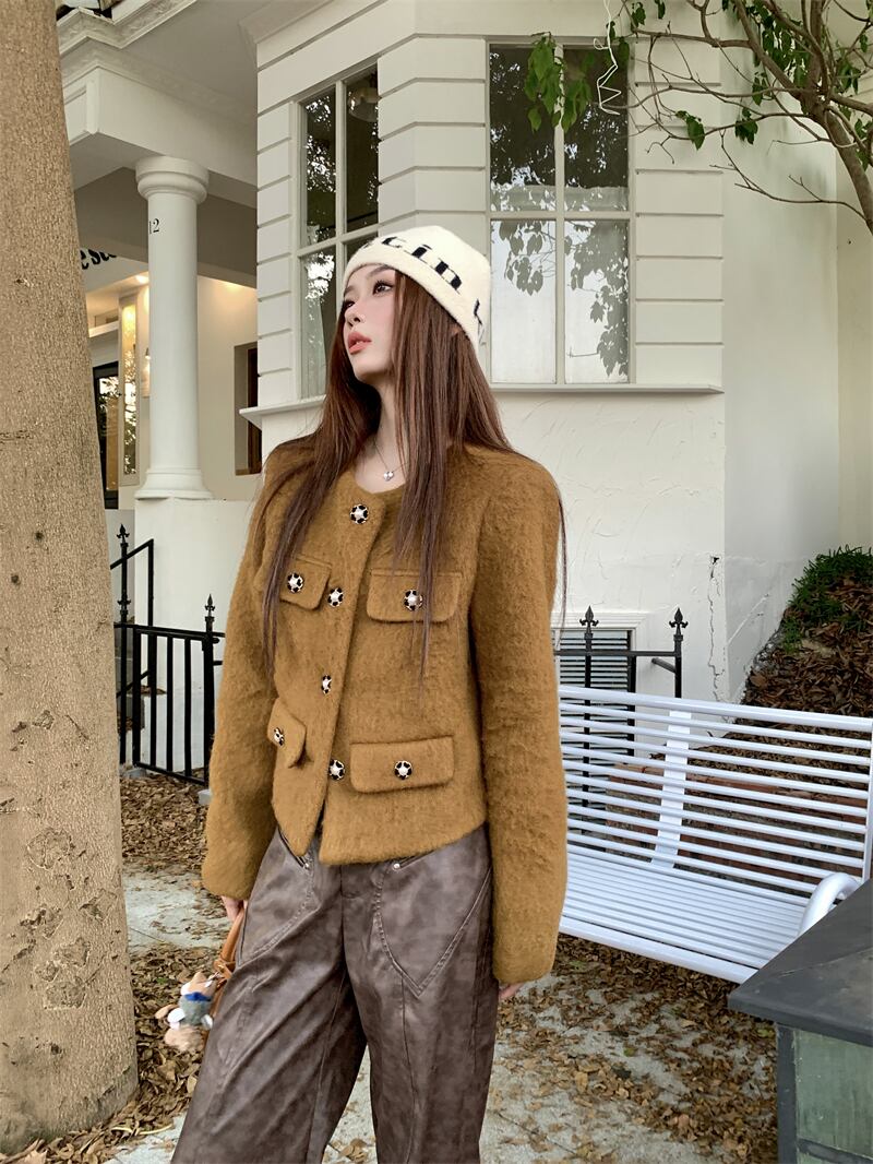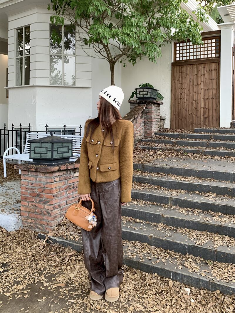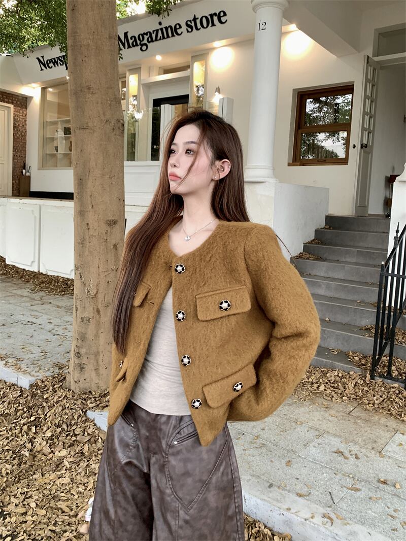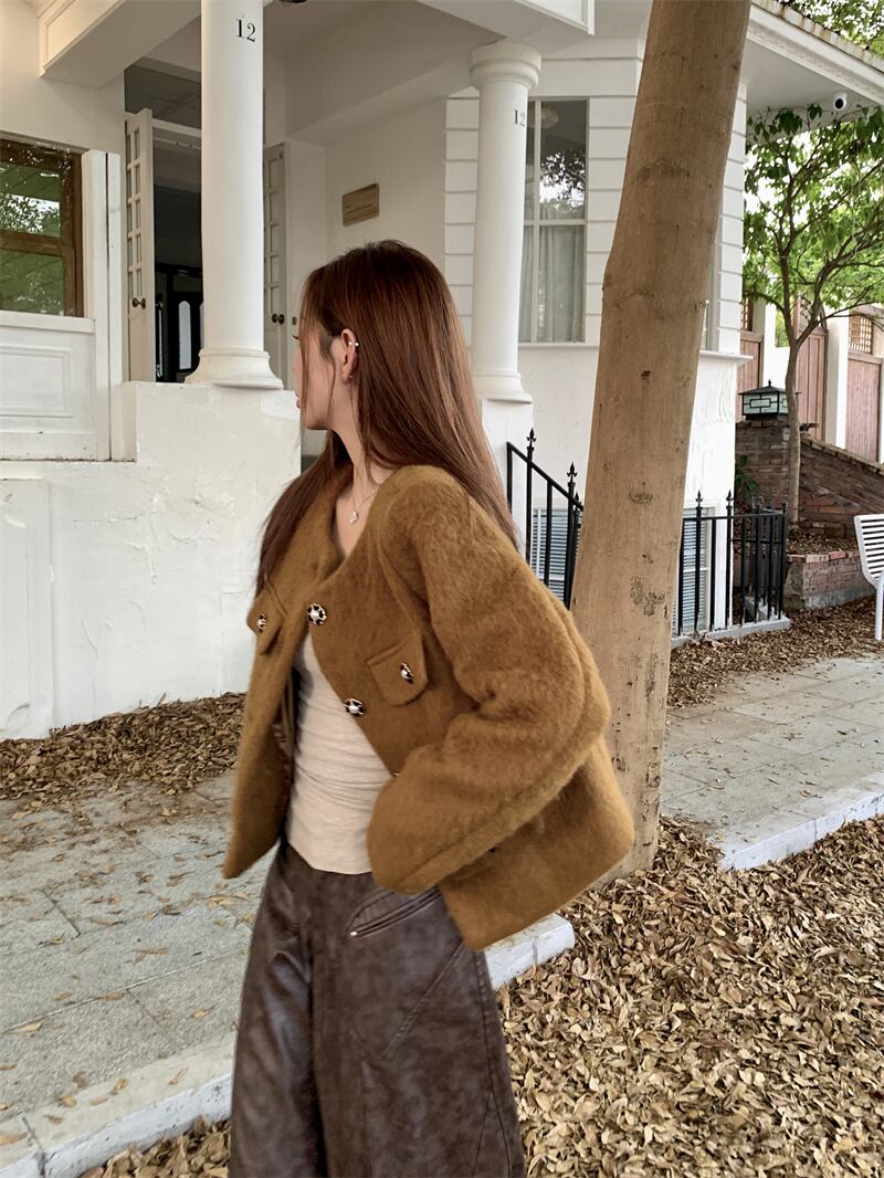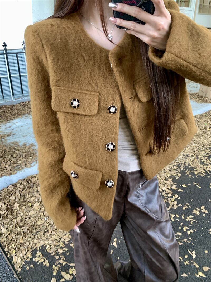 秋冬香り良いショートウールコートラウンドネックウールジャケット オータム 秋物 ウィンター 冬物 Oネック