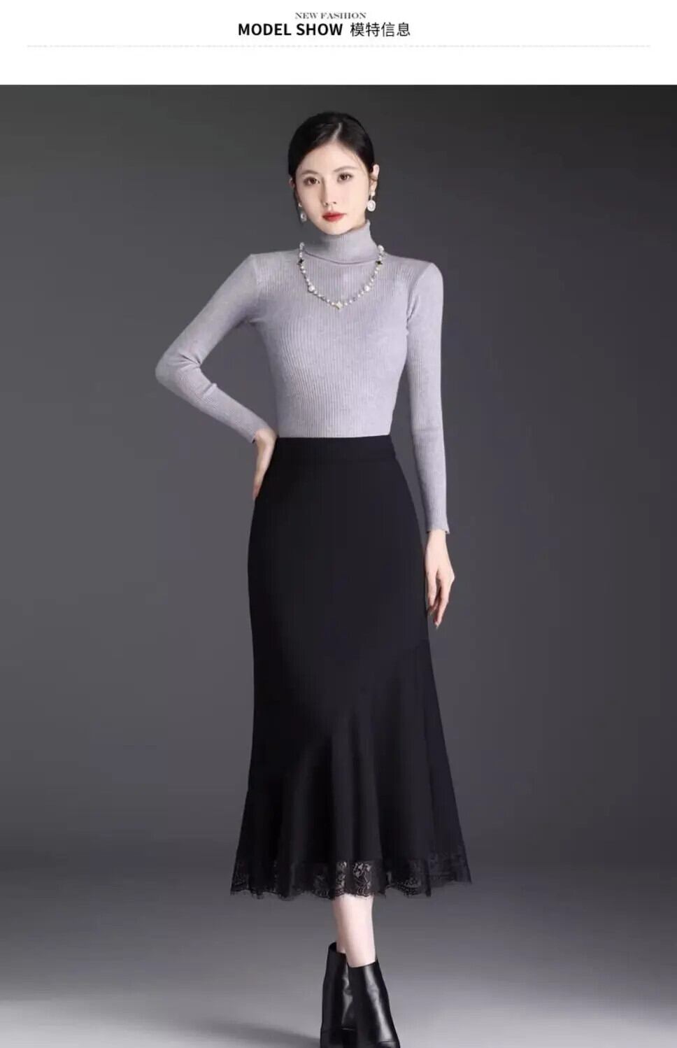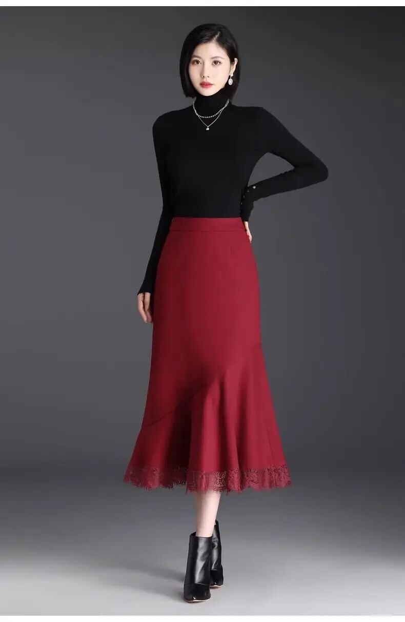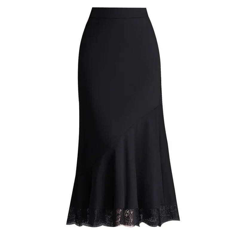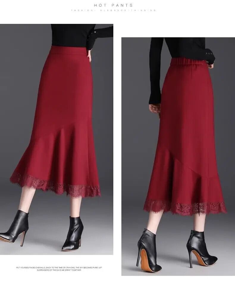 レディース春秋ミドル丈ウエストAラインレースフィッシュテールスカート スプリング 春物 オータム 秋物