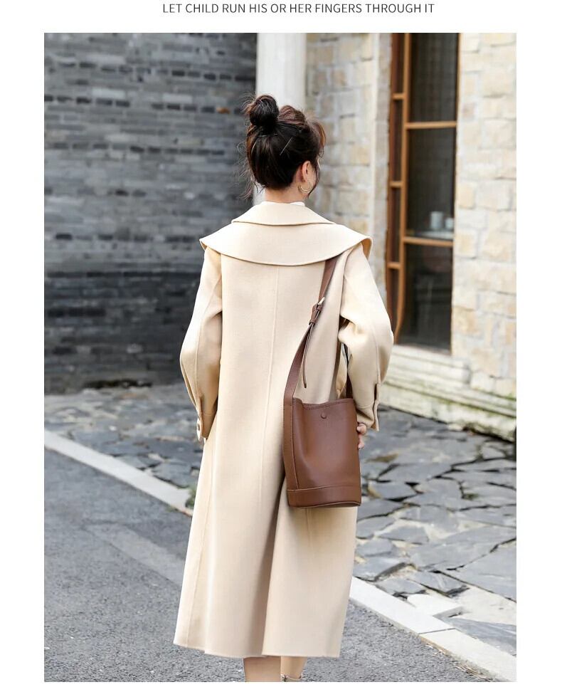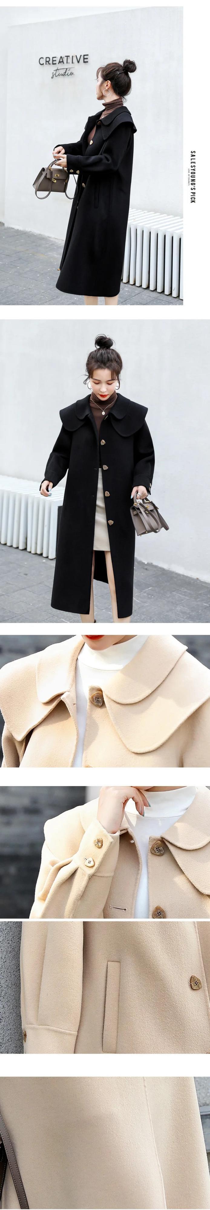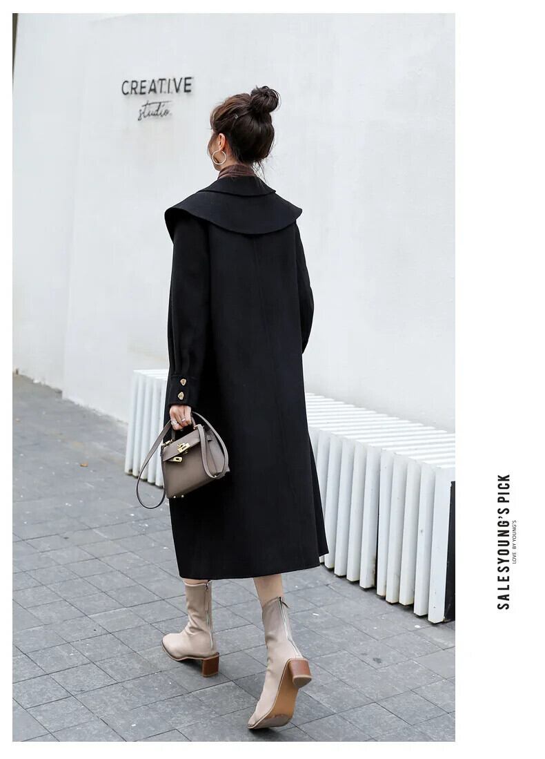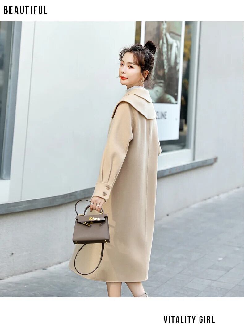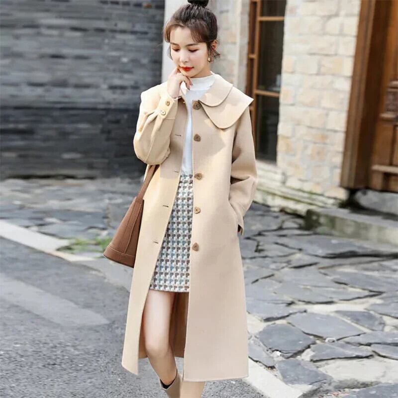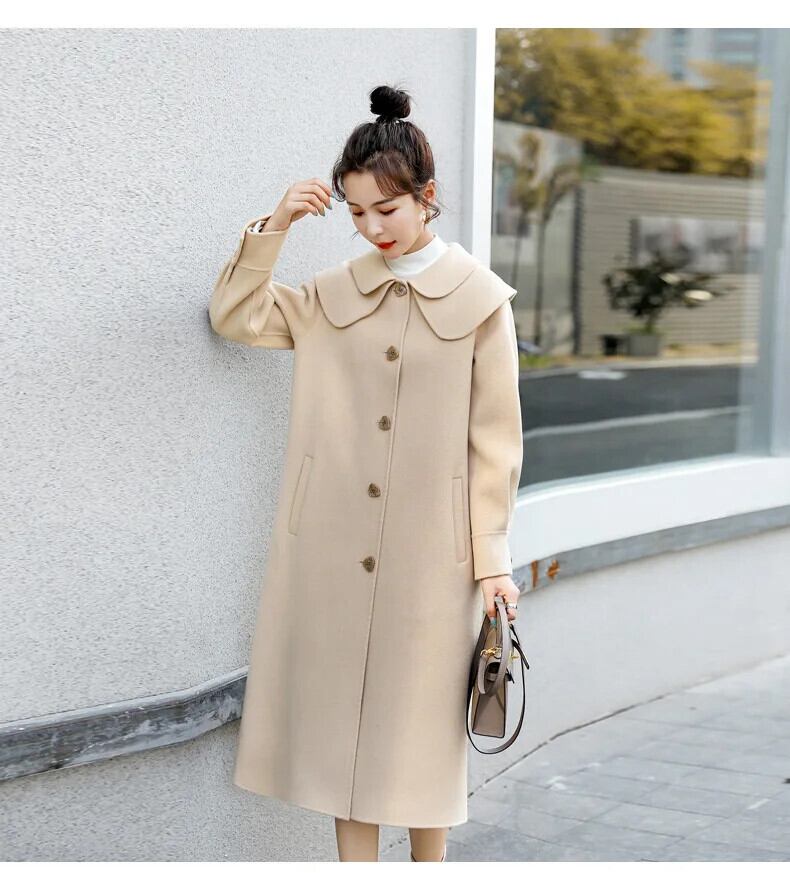 裏地付きストレート通勤シングルブレストウールコートドールカラー厚手ウールジャケットレディースロング