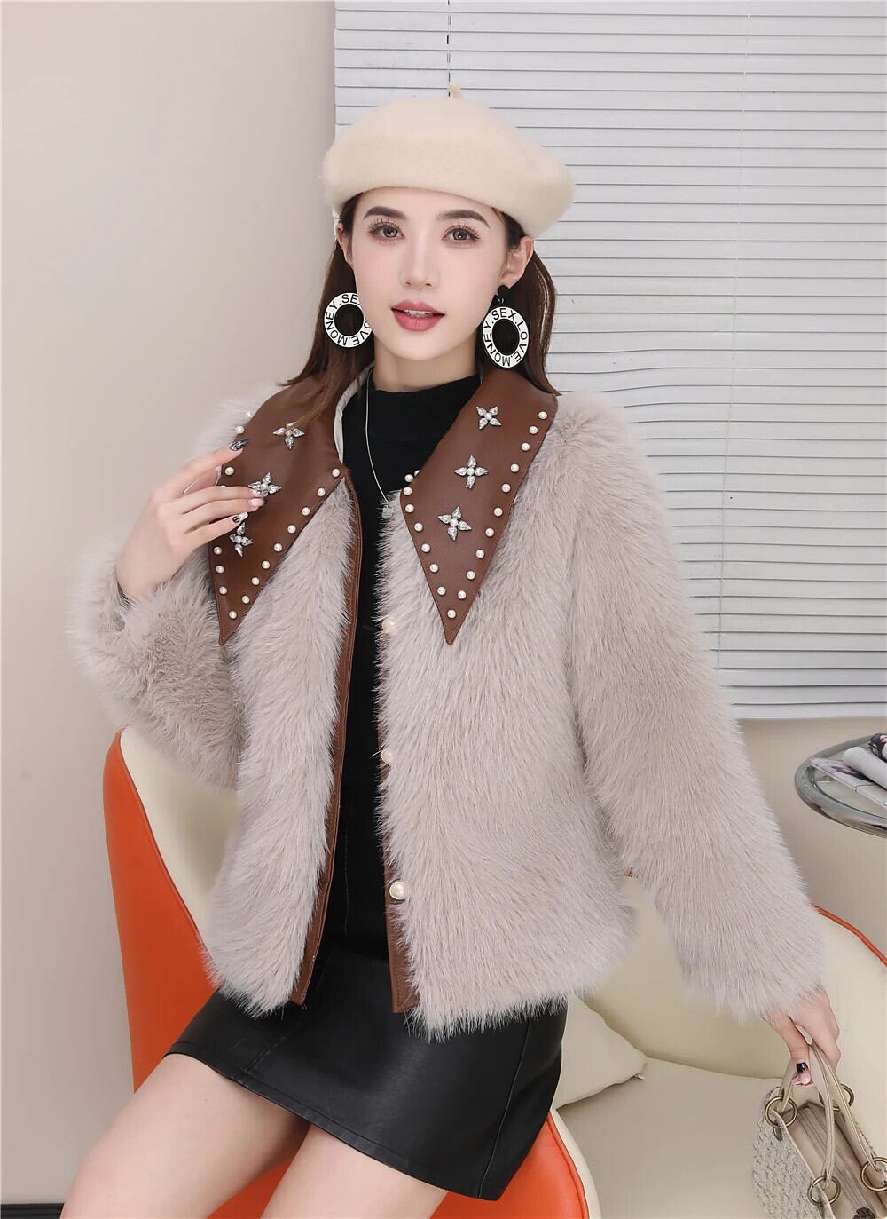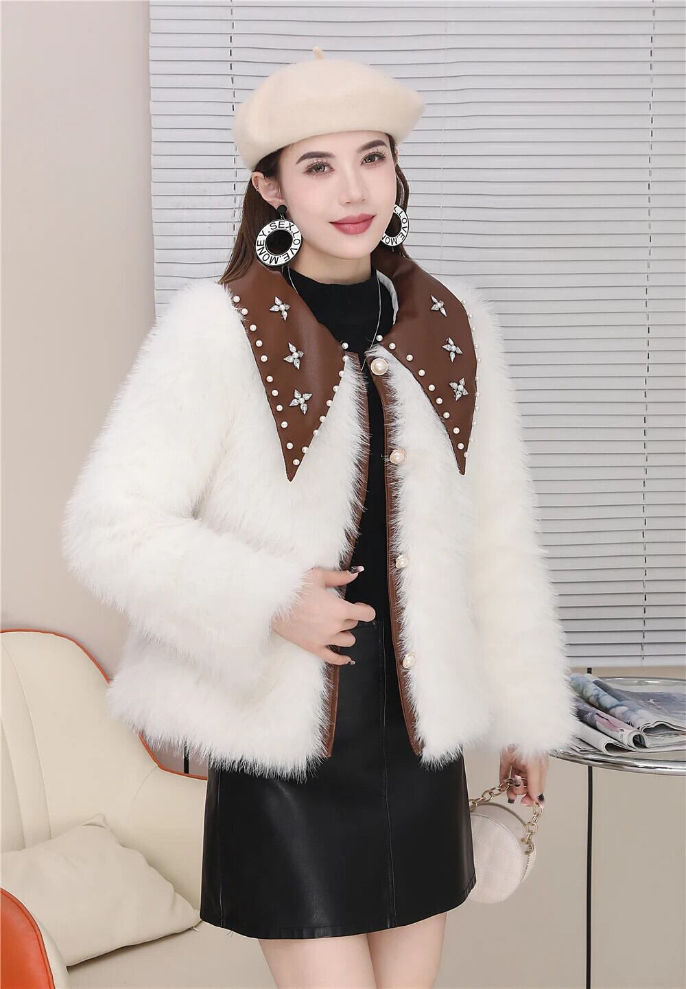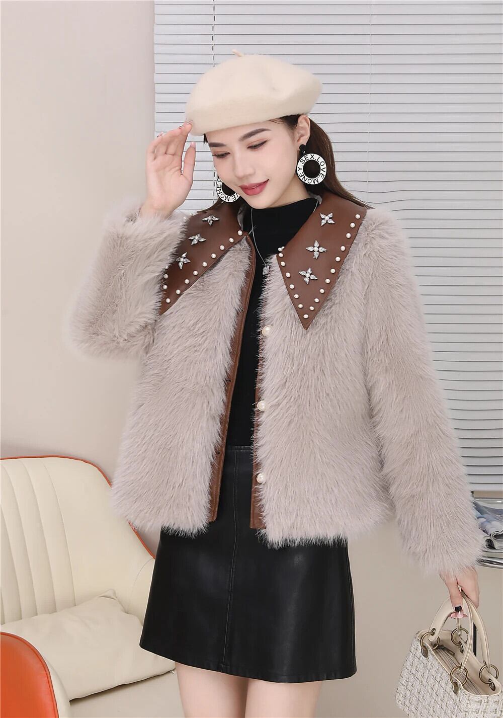 秋冬フレグランススタイルターンダウン襟フェイクフォックスファーコートアウタールースダイヤモンドトレンディジャック オータム 秋物 ウィンター 冬物