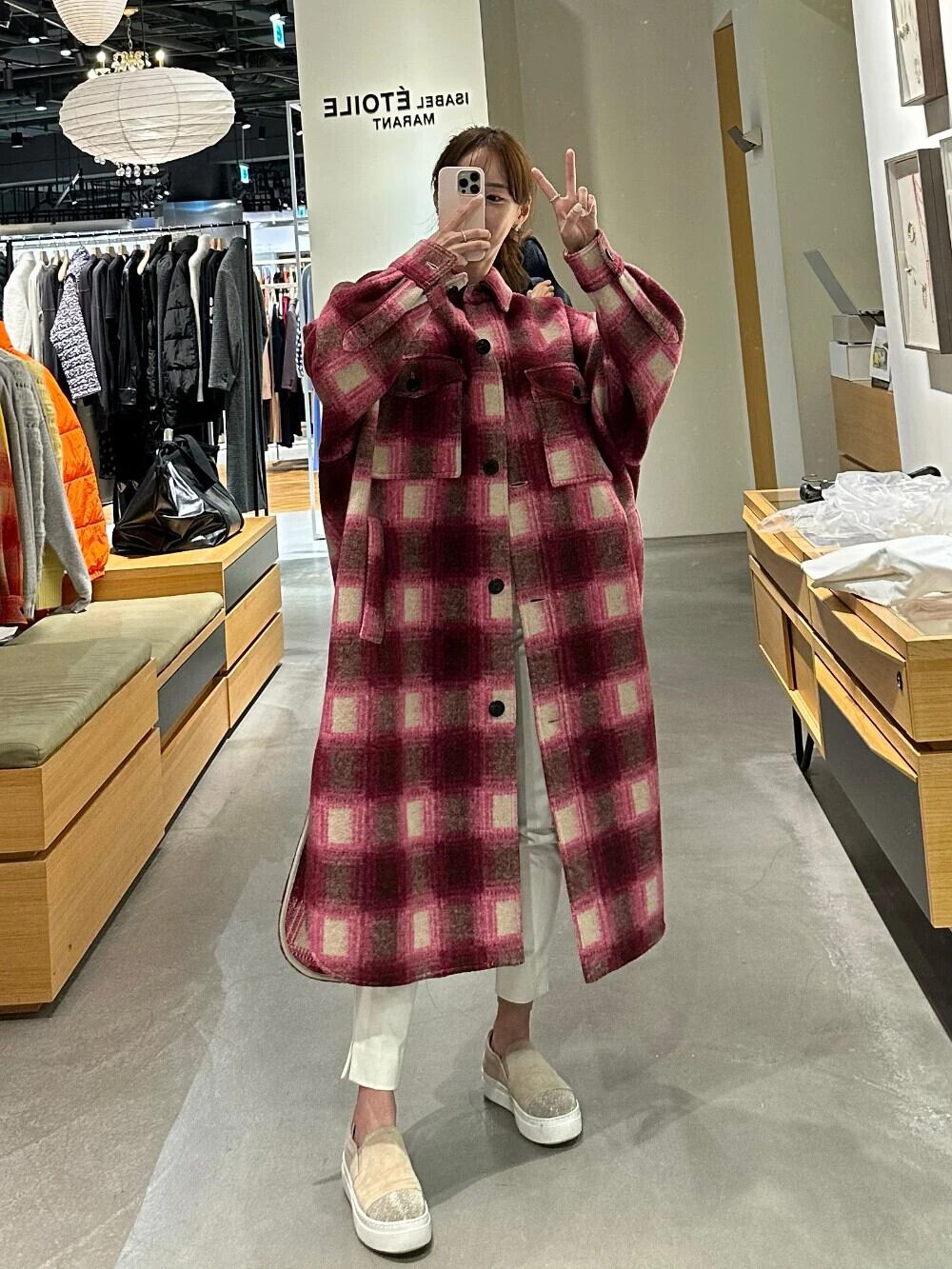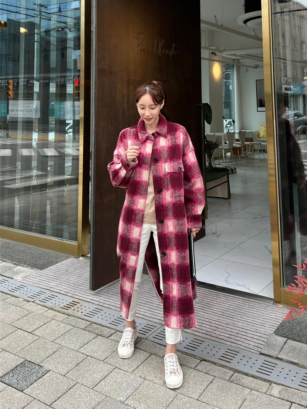 秋冬 Clic チェック柄ウール ルーズ エクステンデッド コート レディース ウール ジャケット オータム 秋物 ウィンター 冬物