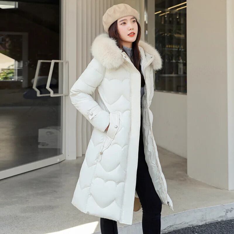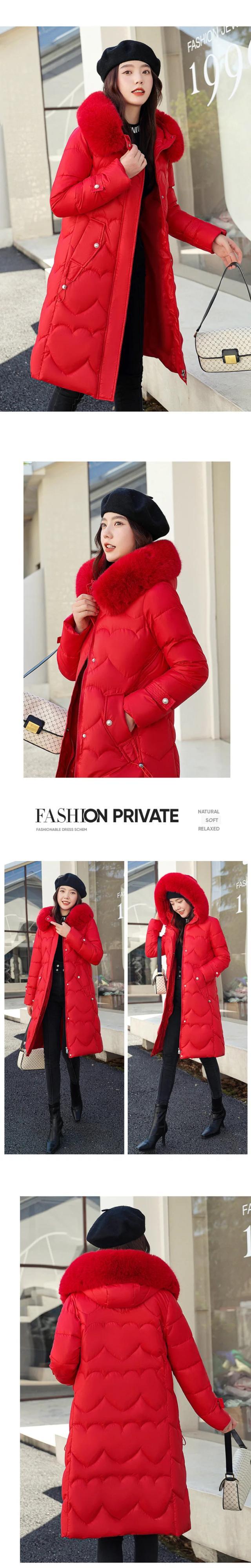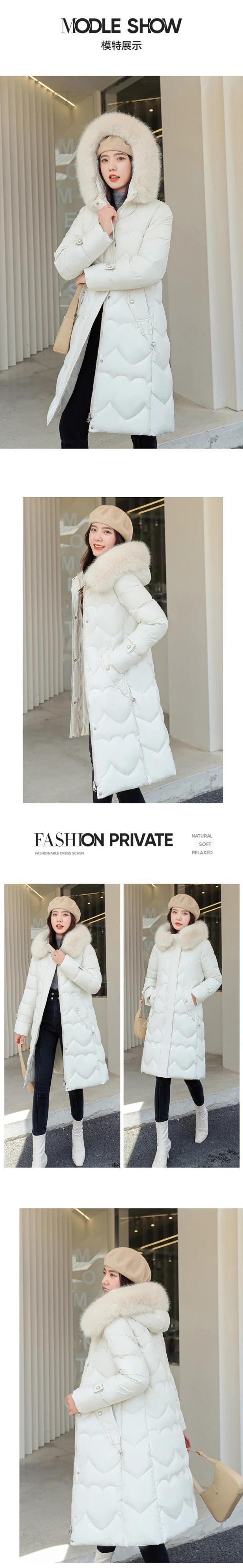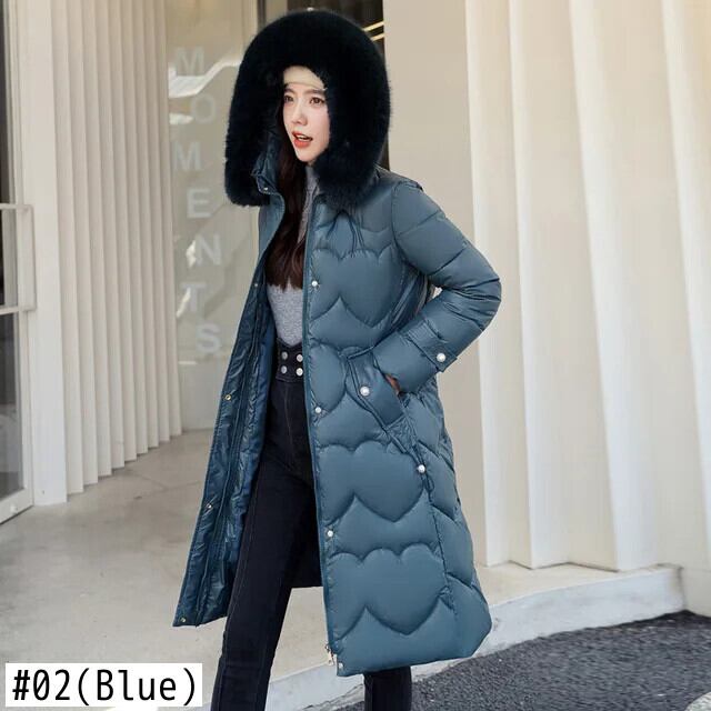 冬基本的フード付き毛皮襟綿入りコートルーズ暖かいロング厚いストリートパーカー コットン ウィンター 冬物