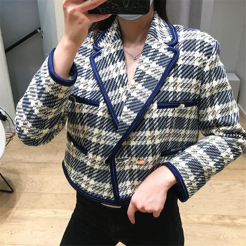オフィスレディチェック柄ツイードスリムスーツジャケット通勤ターンカラーブレザー秋 オータム 秋物 会社 学校 通勤や通学にも