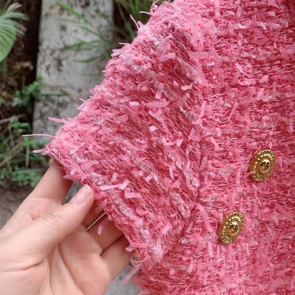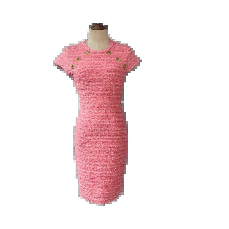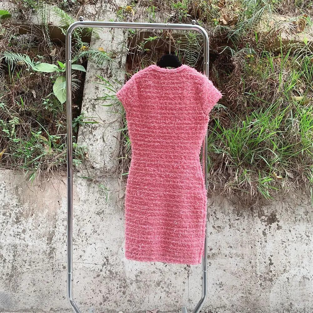 2024 春夏気質スリムフィットメタルボタン半袖セクシーピンクニットドレス ショート ハーフスリーブ スプリング 春物 サマー 夏物