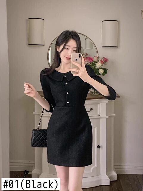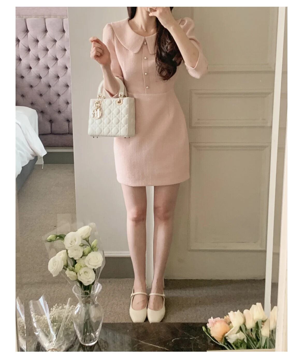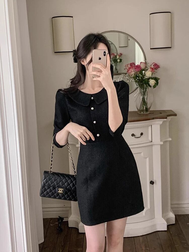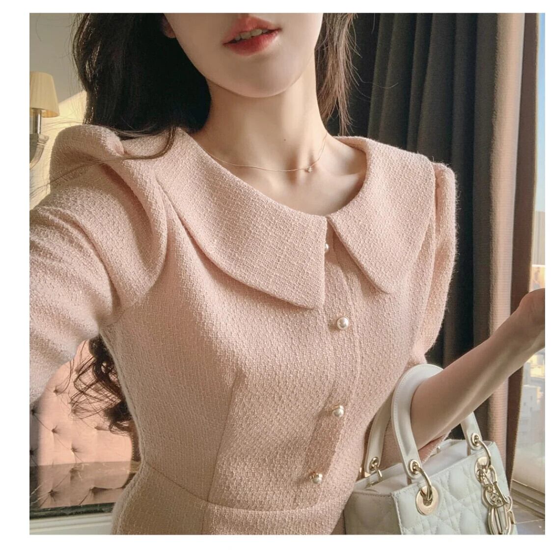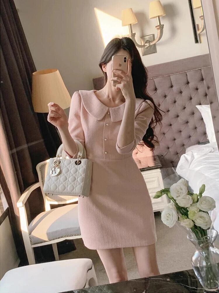 春スタイル香り風ピンク粗い紡績 A ライン ドレス スプリング 春物 Aライン