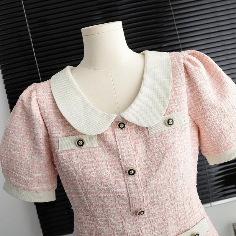 ピンク甘いスリムウエストミニサマードレスローブ 大人ガーリー スウィート キュート カジュアル 夏物