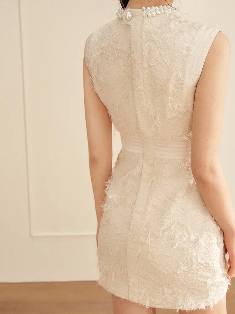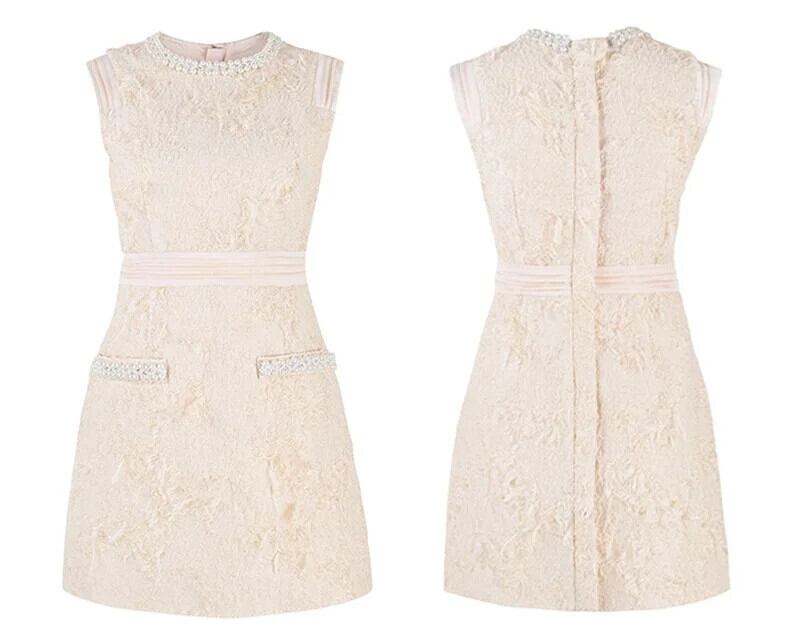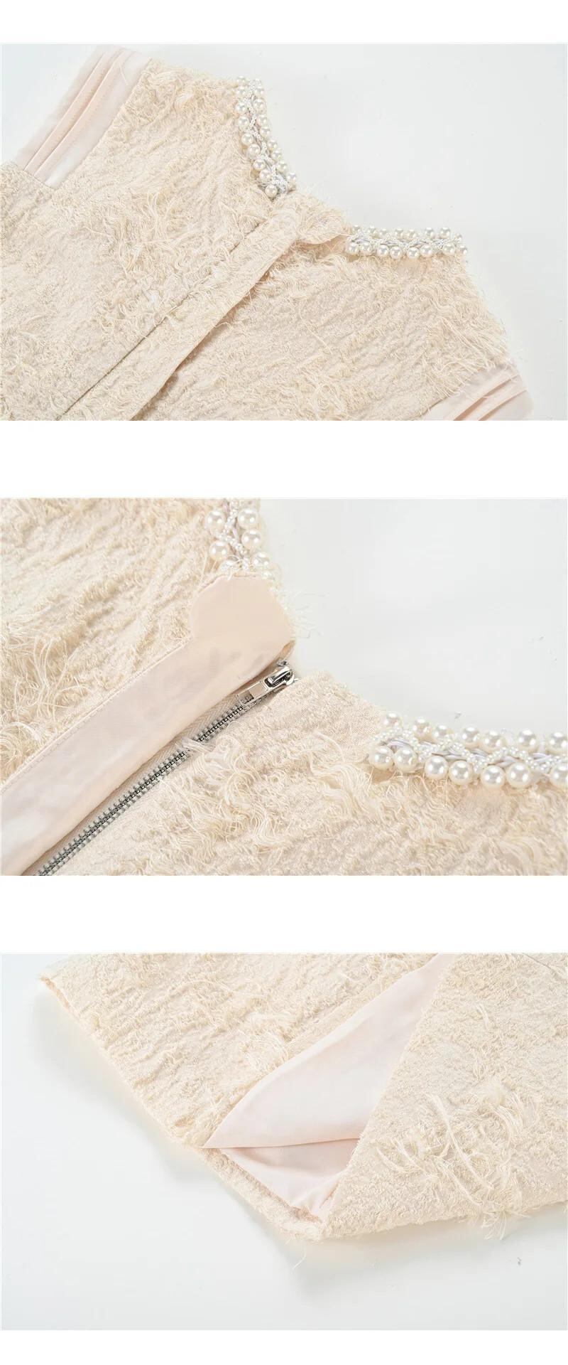 夏アプリコット パール スリム フィット高級セレブ スプライシング ノースリーブ ドレス Vestidos サマー 夏物 真珠