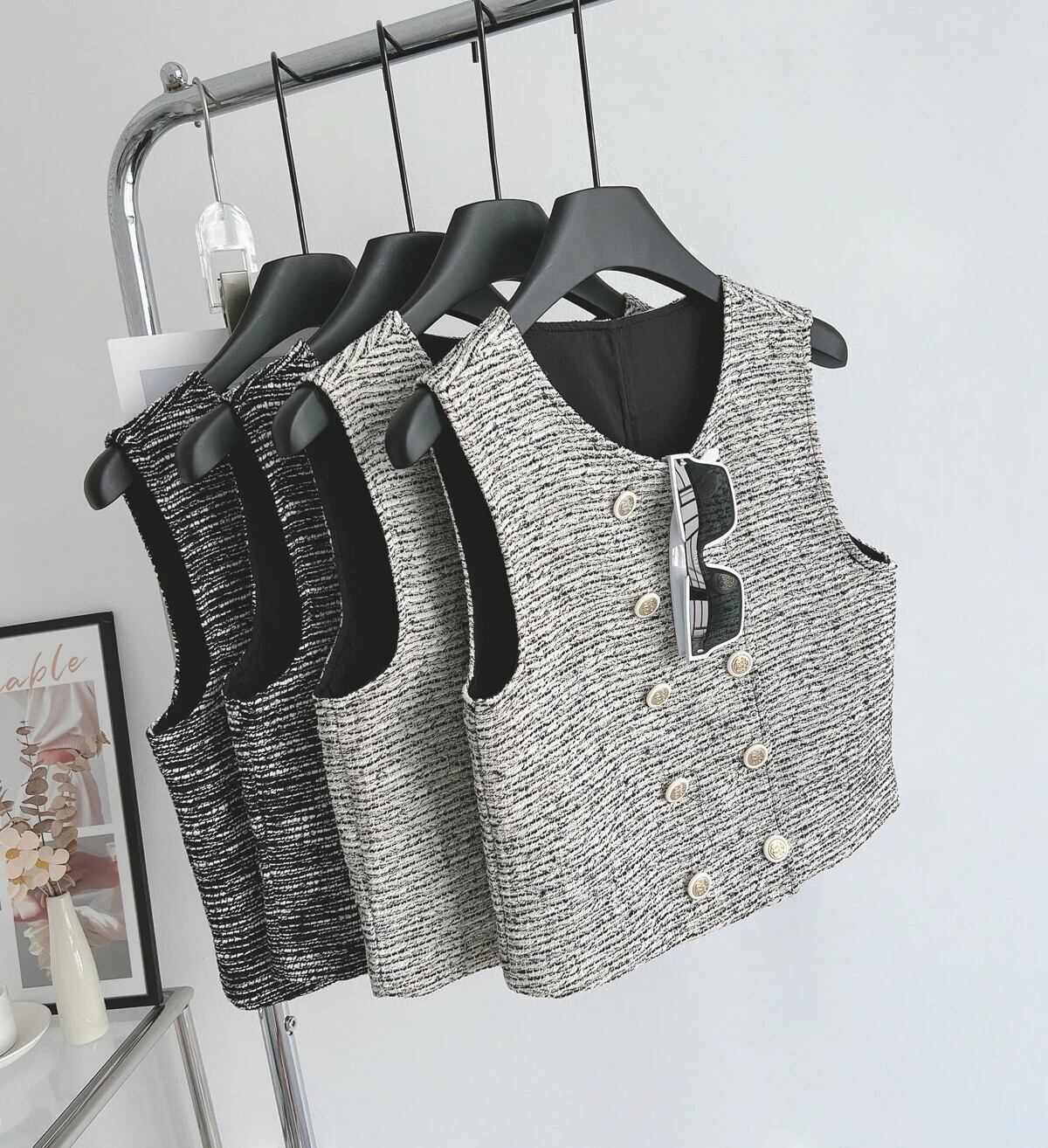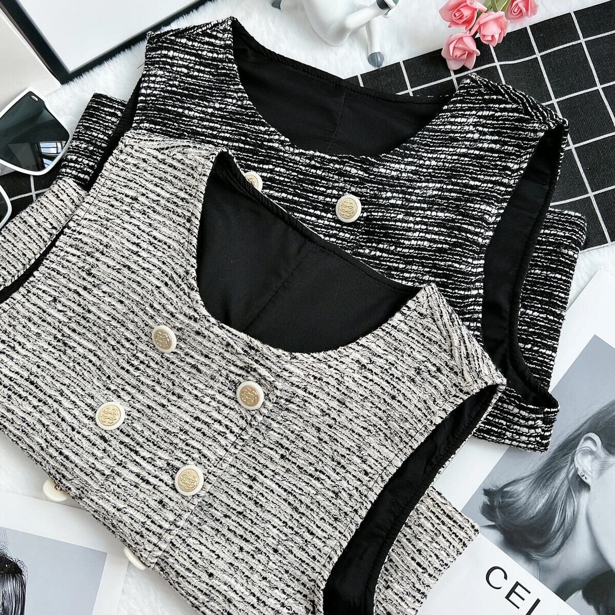 秋ショートタンクトップセレブノースリーブベストルーズチョッキ オータム 秋物