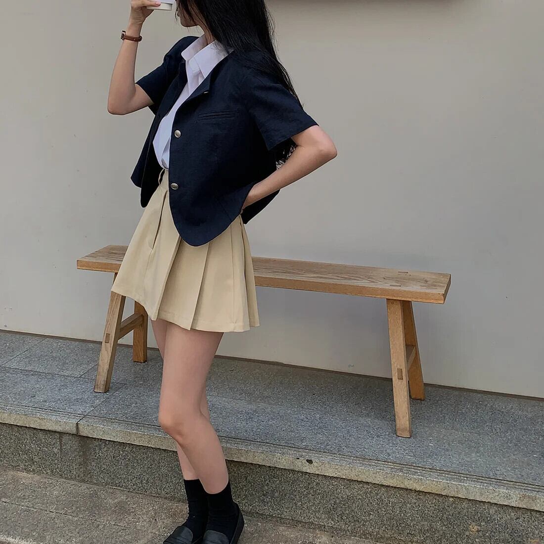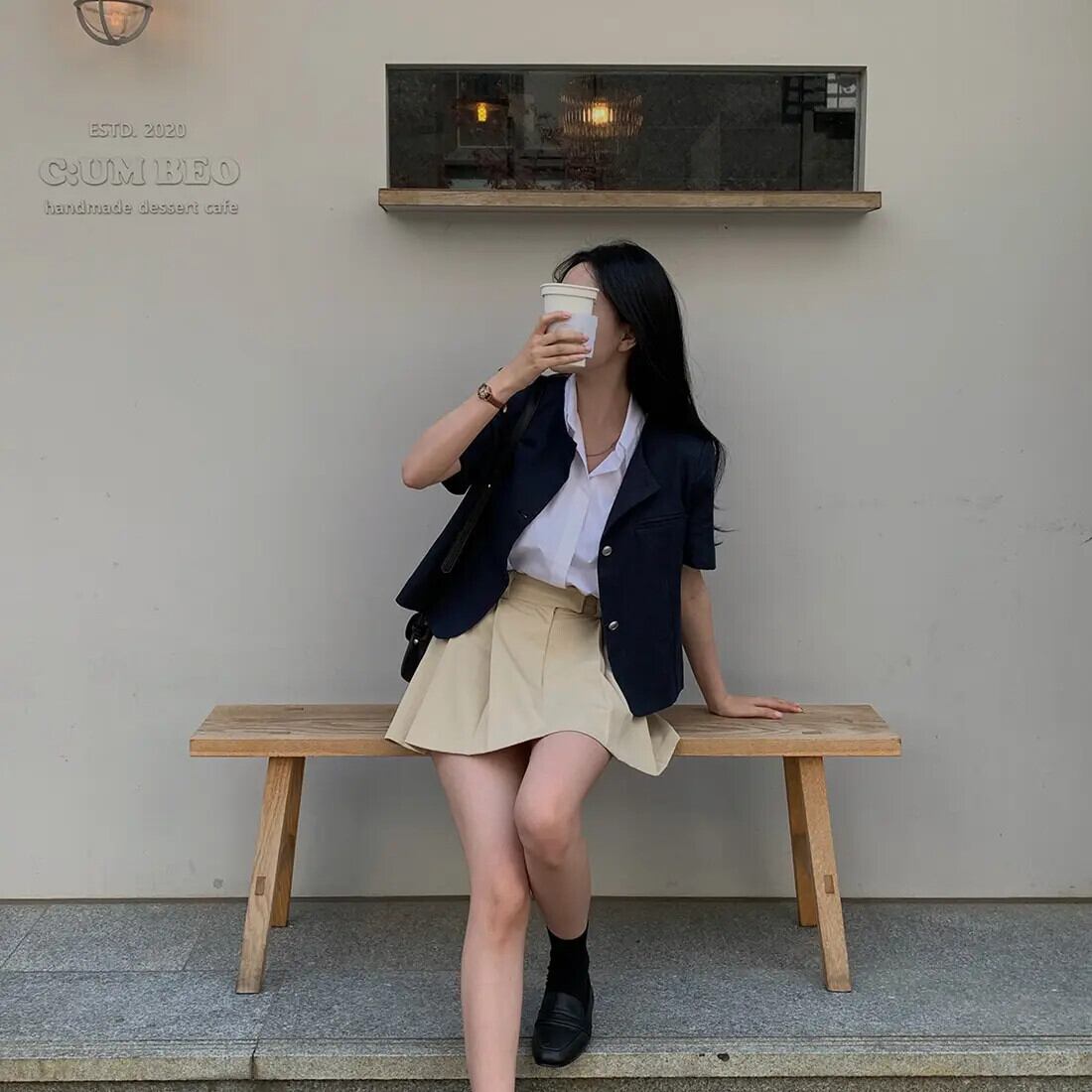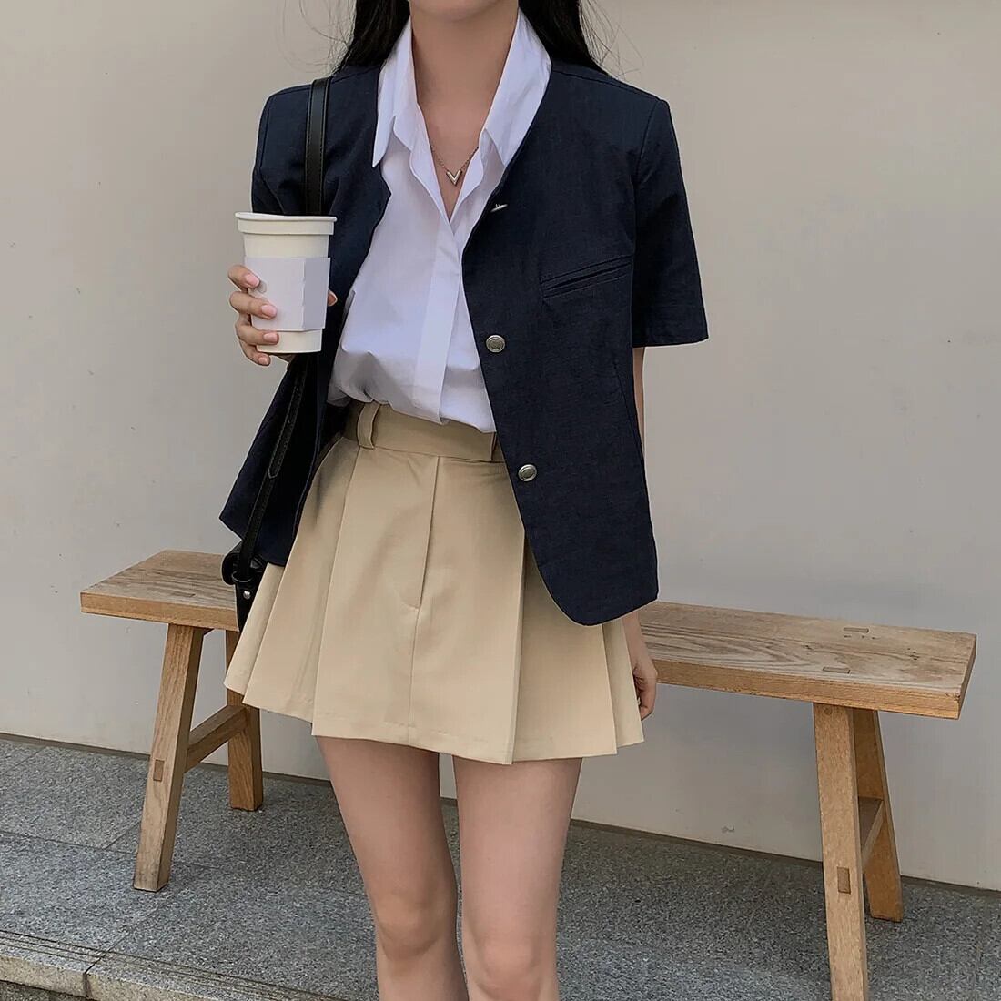 夏レトロスタイルラウンドネックルーズソリッドカラーシングルブレスト半袖香りコートジャケット ショート ハーフスリーブ サマー 夏物 Oネック