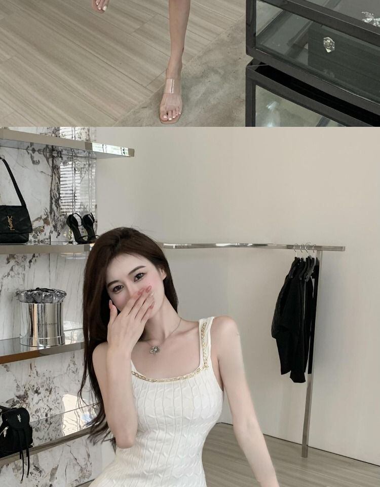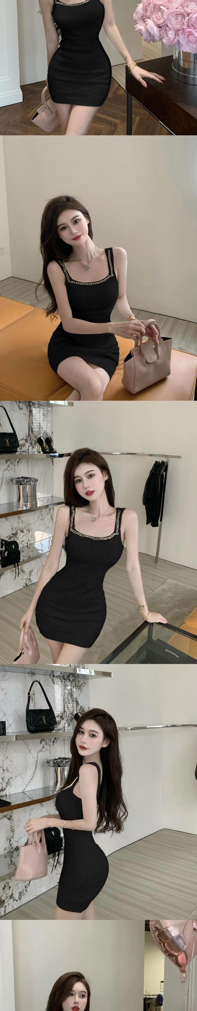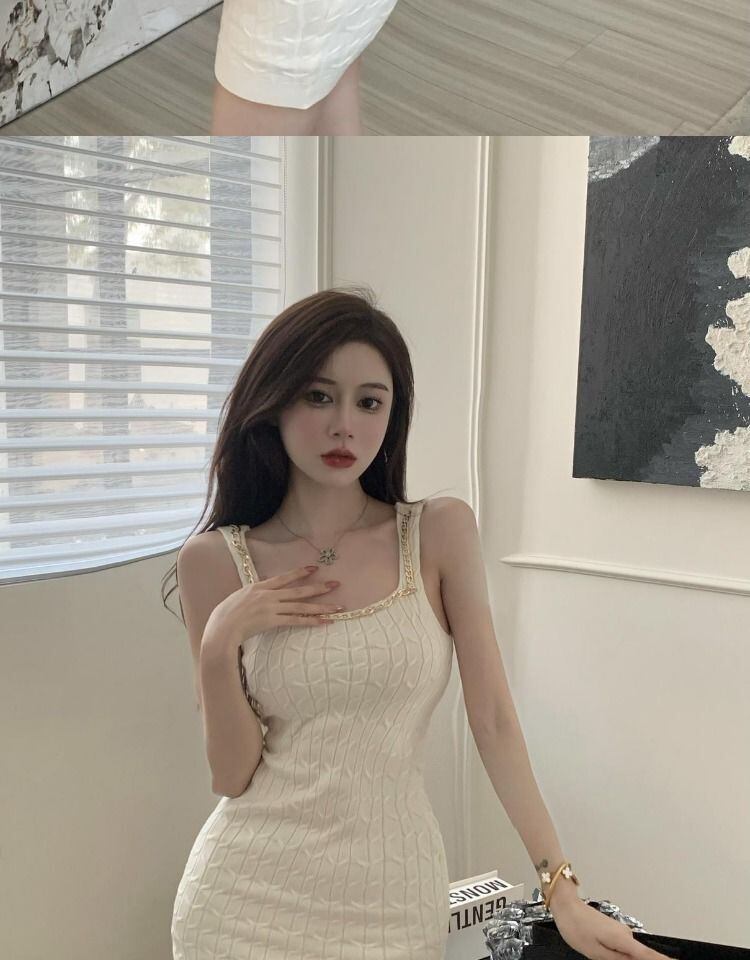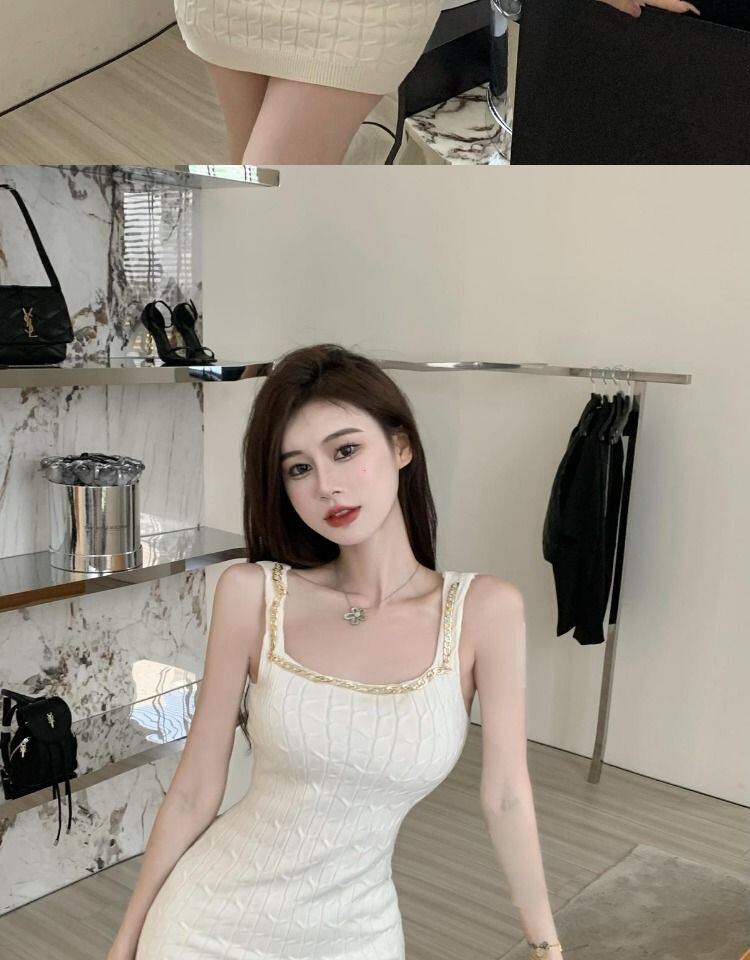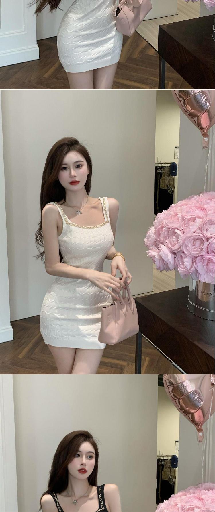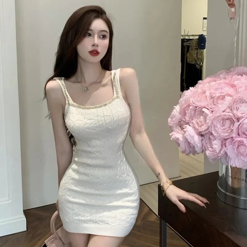 ブラック ホワイト セクシータイトサマー ストラップ ショート ニット ドレス ローブ 夏物