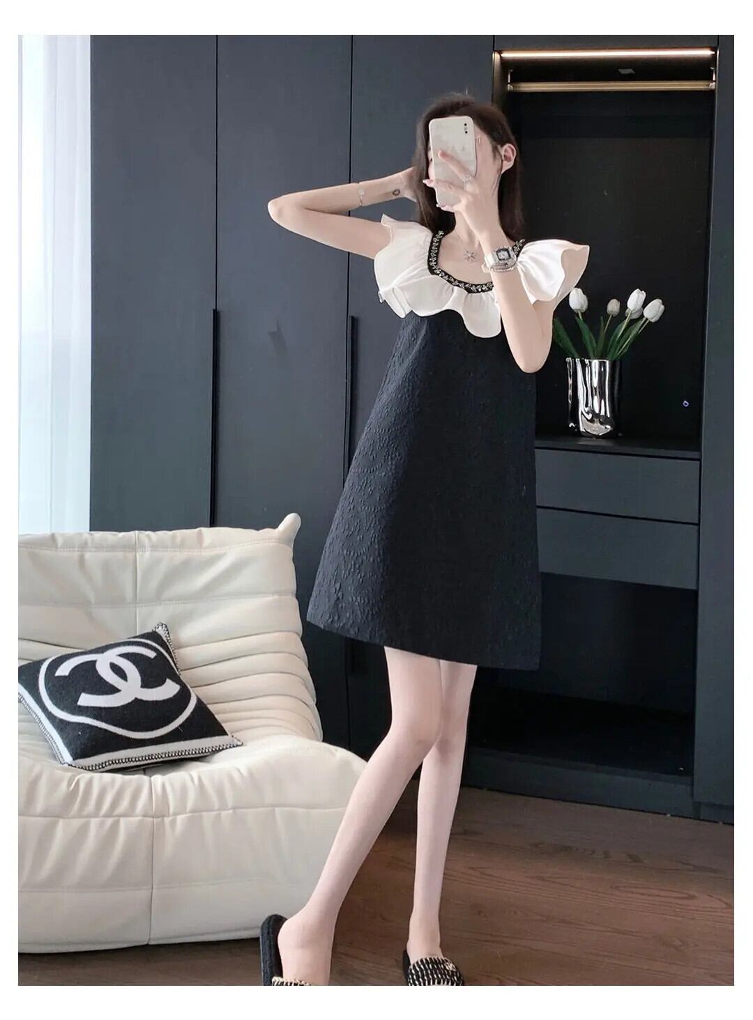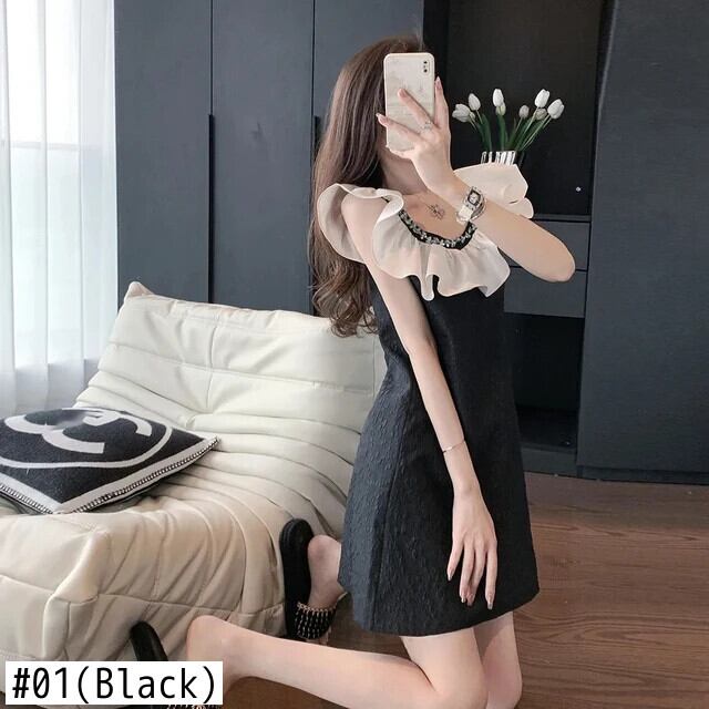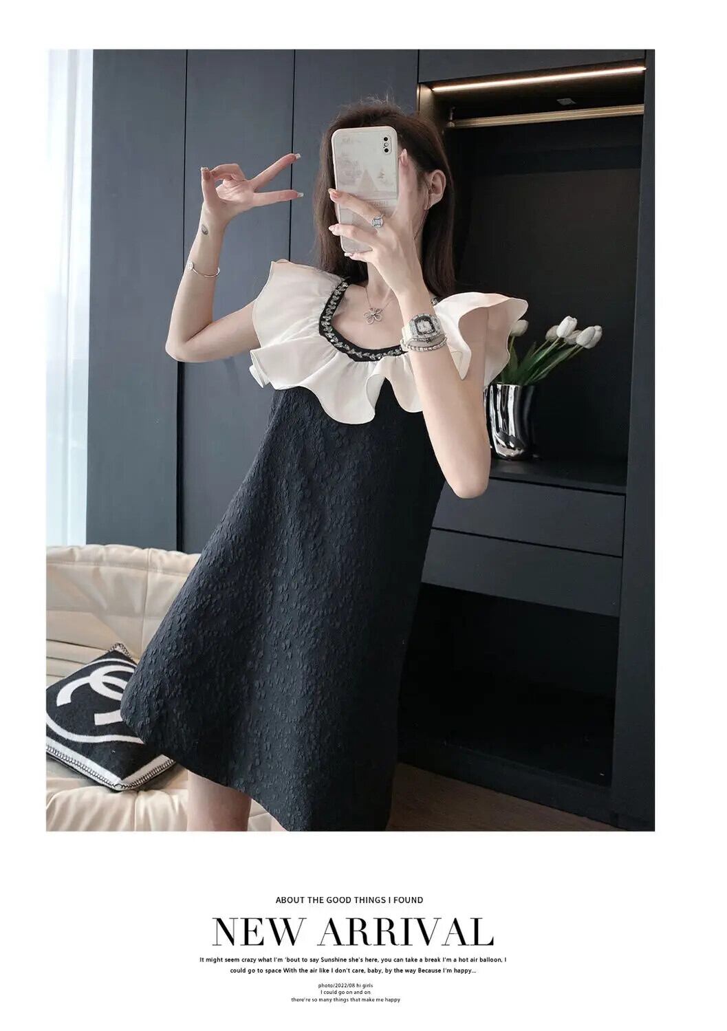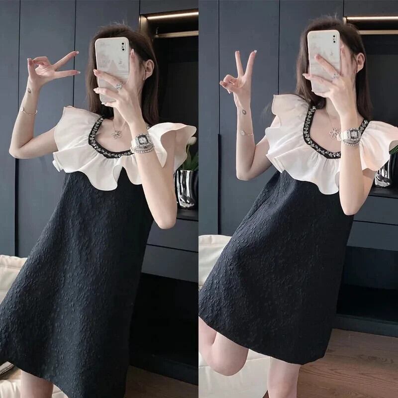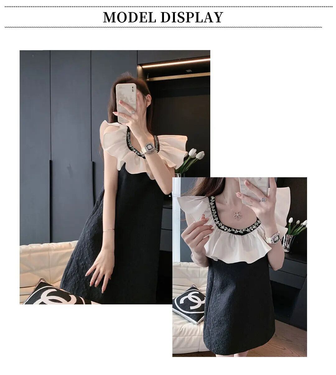 夏ユニークパーティー高級ブラックパターンノースリーブドレス サマー 夏物