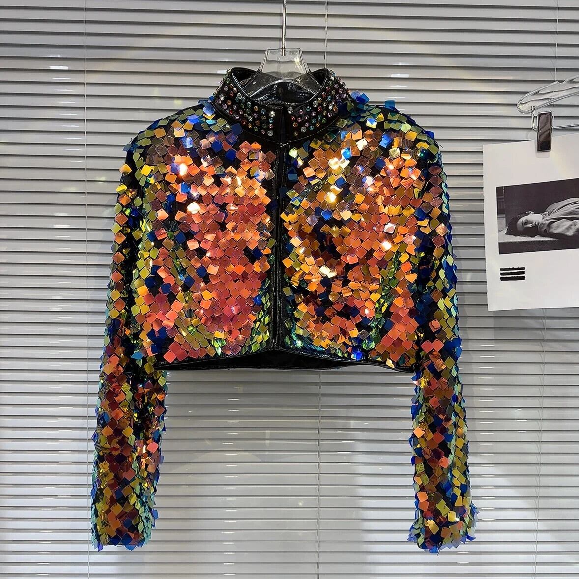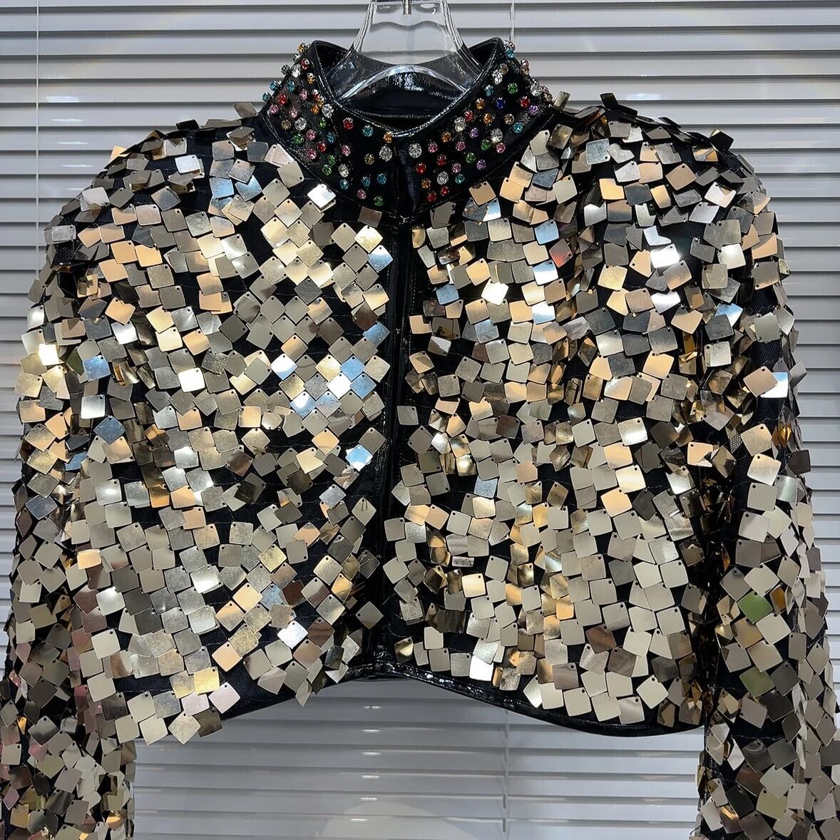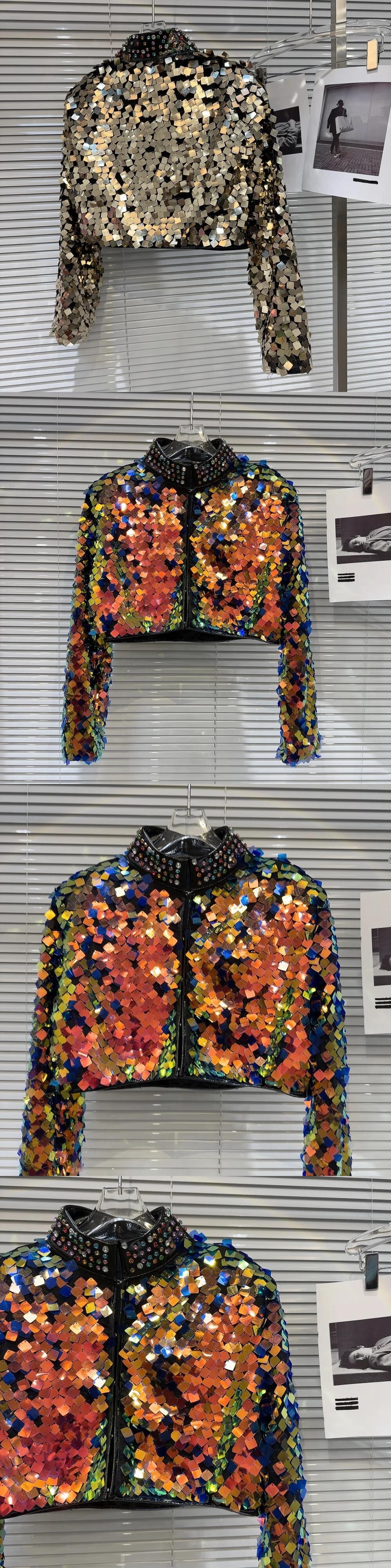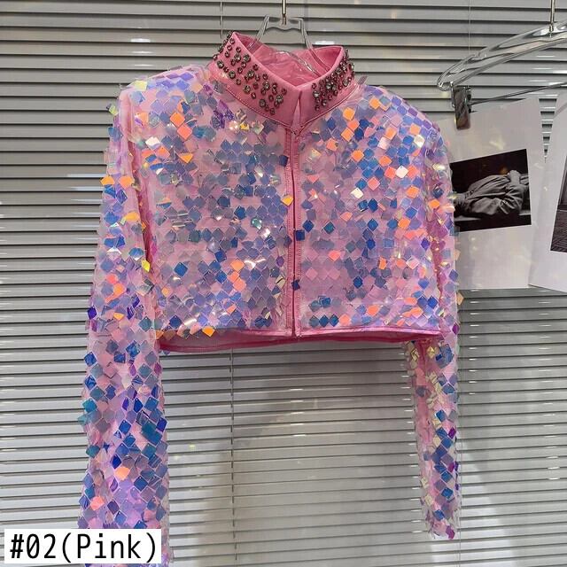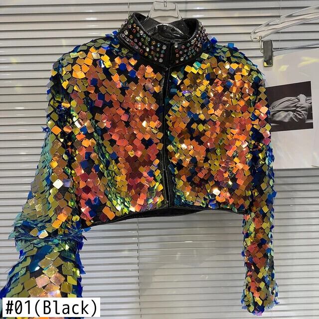 ウィンターショー Permance カラフルグラデーションスパンコールウォーターダイヤモンドスタンドネックショートコートジャケット 冬物
