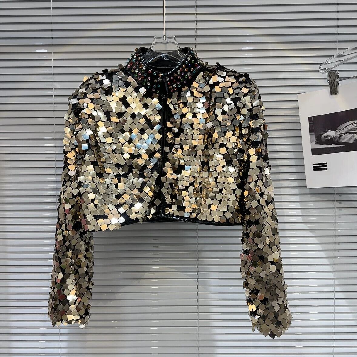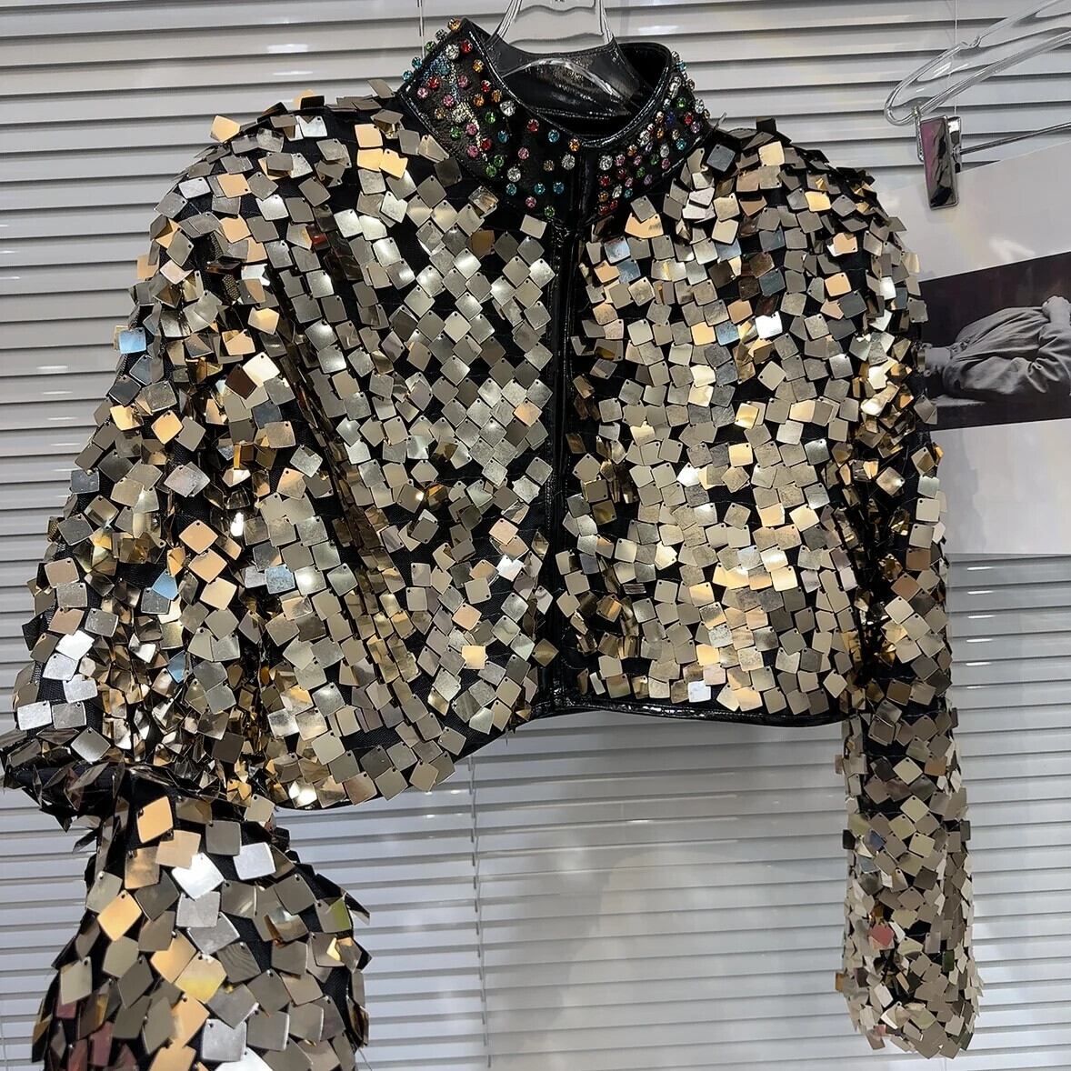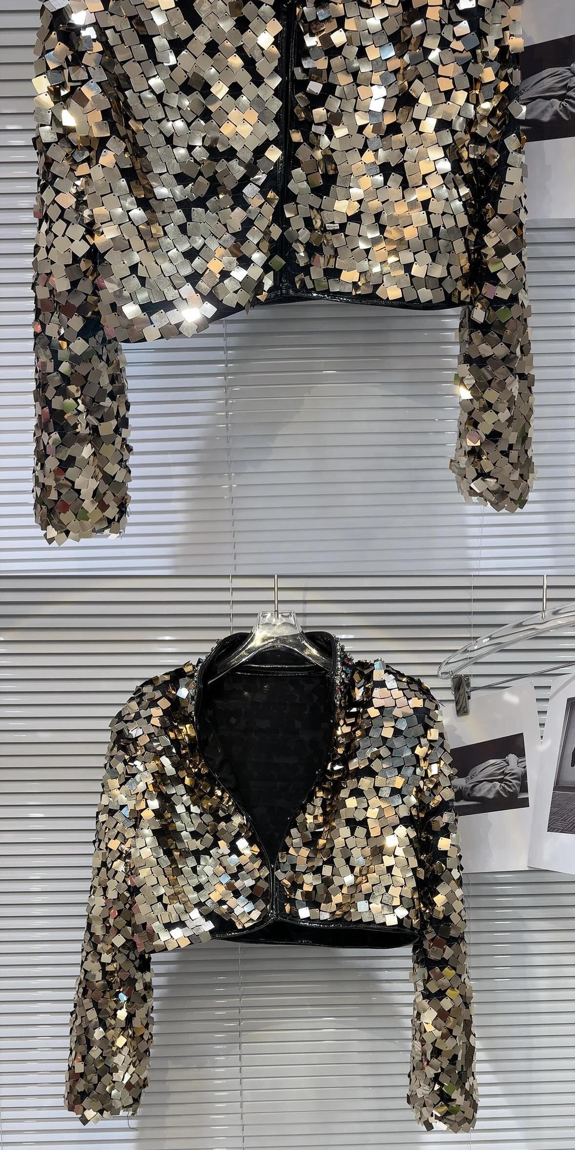 ウィンターショー Permance カラフルグラデーションスパンコールウォーターダイヤモンドスタンドネックショートコートジャケット 冬物