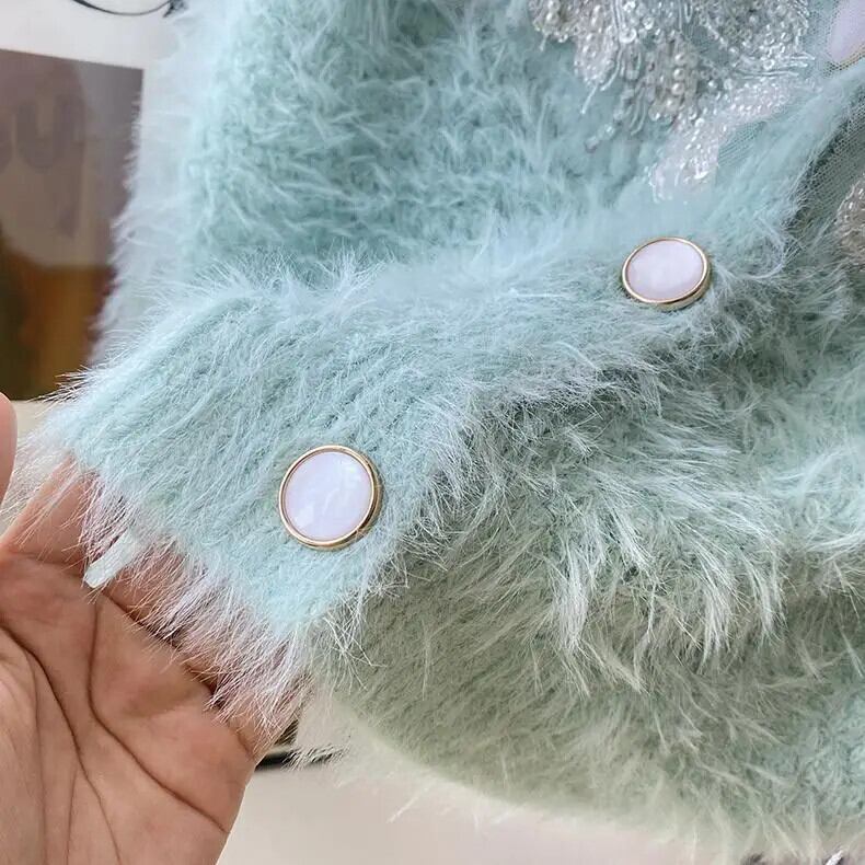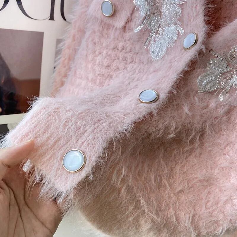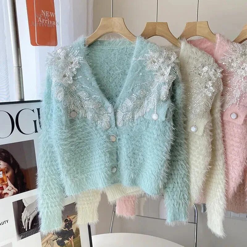 ミンク セーター コート レディース Vネック 秋冬 ゆったり ショート ニット カーディガン トレンド オータム 秋物 ウィンター 冬物