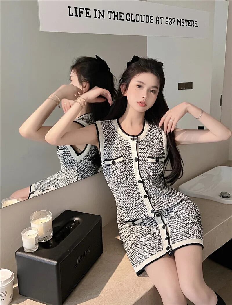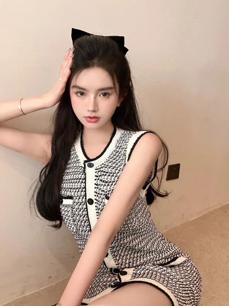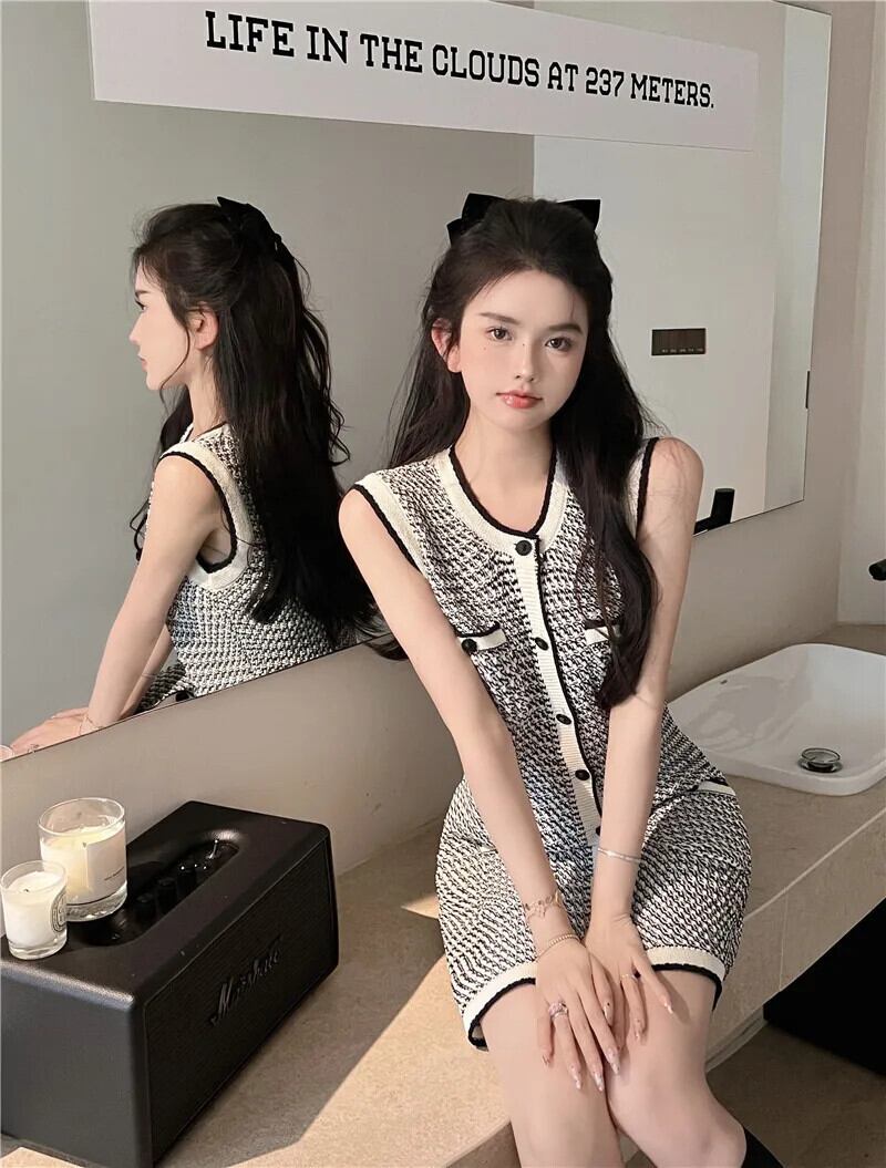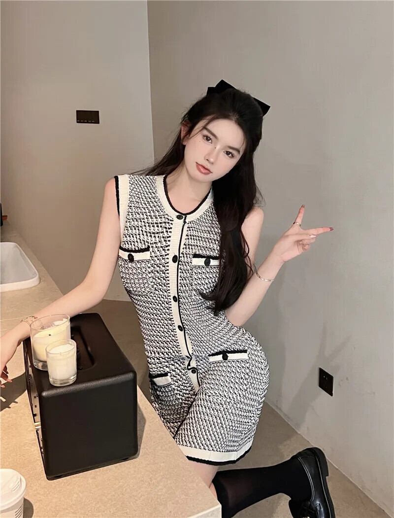 夏スタイル A ラインノースリーブウエストカラーセクシーニットドレスローブ Vestidos レッド サマー 夏物 Aライン
