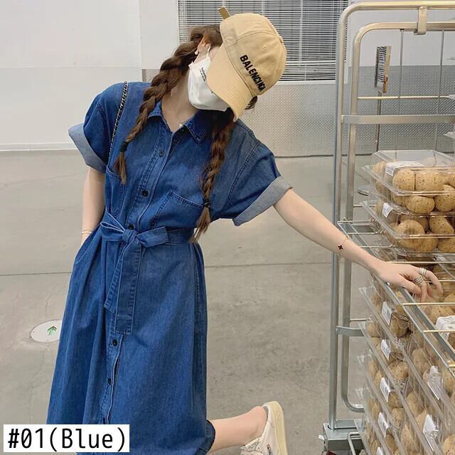 レディース夏薄手ロングゆったりリラックスレトロデニムワンピース サマー 夏物