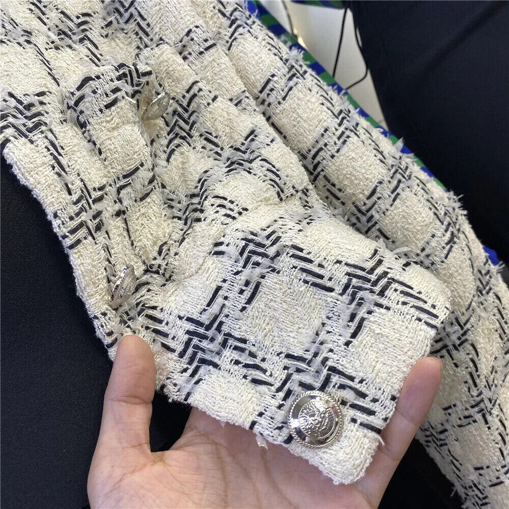 春スタイル気質パネル コントラスト チェッカー コート ショート ツイード ジャケット スプリング 春物