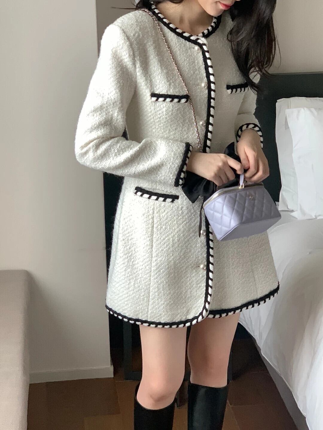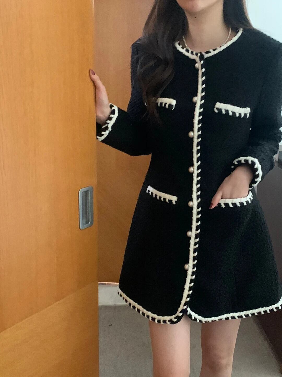 シック秋香りラウンドネックスリムフィット長袖ドレス ロング オータム 秋物 Oネック