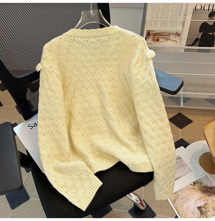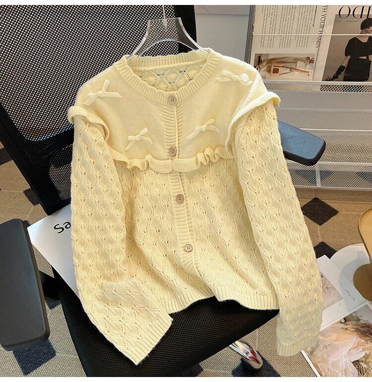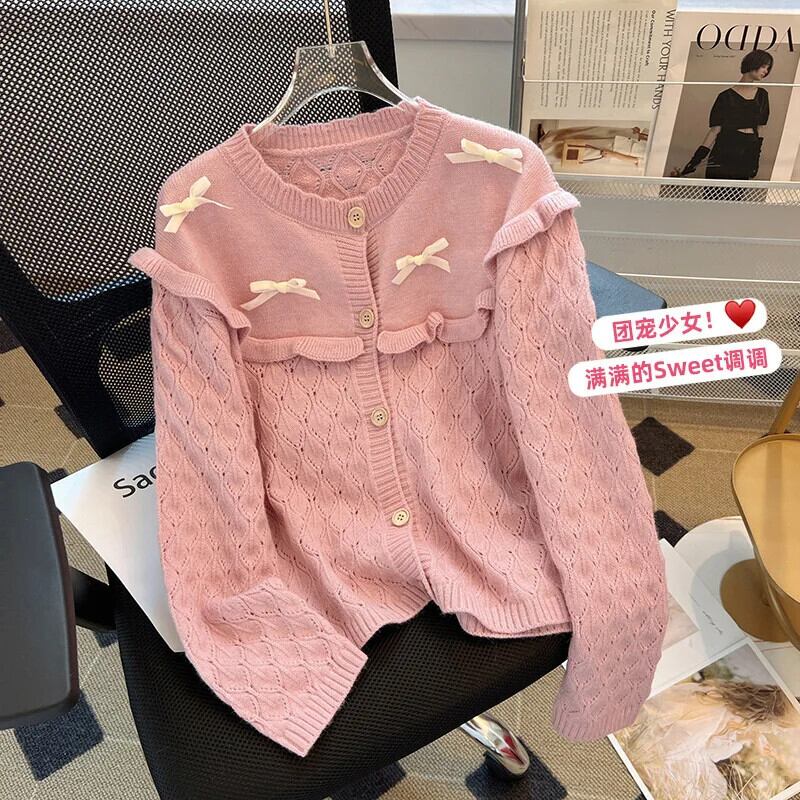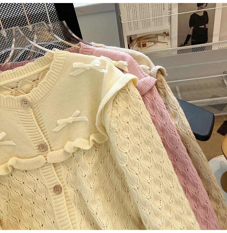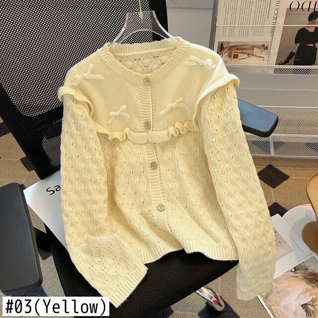 レディース スウィート リボン ルーズ ニット セーター カーディガン コート 秋冬 大人ガーリー キュート カジュアル オータム 秋物 ウィンター 冬物