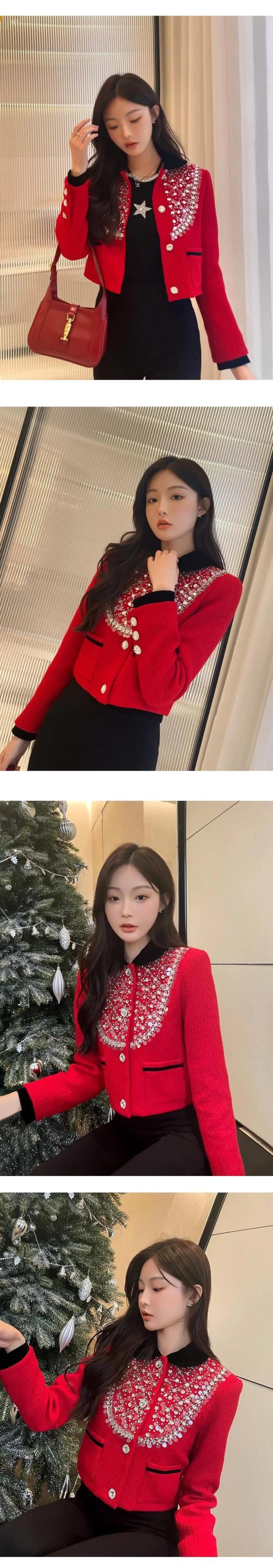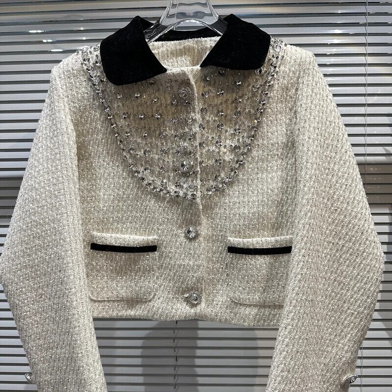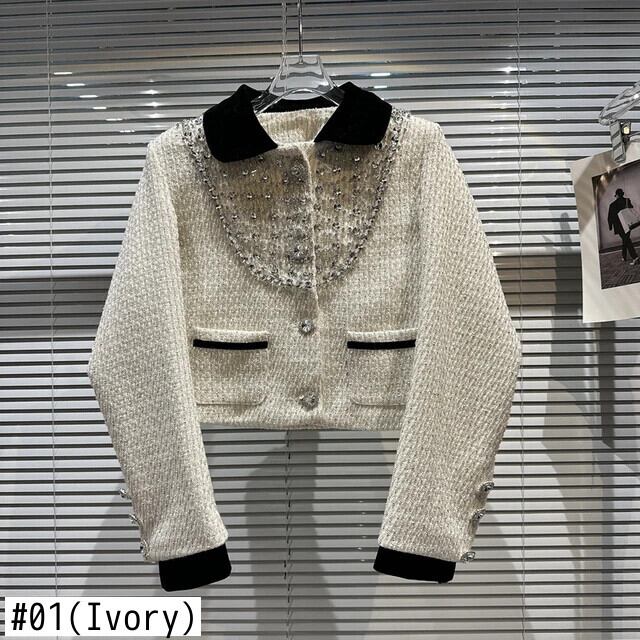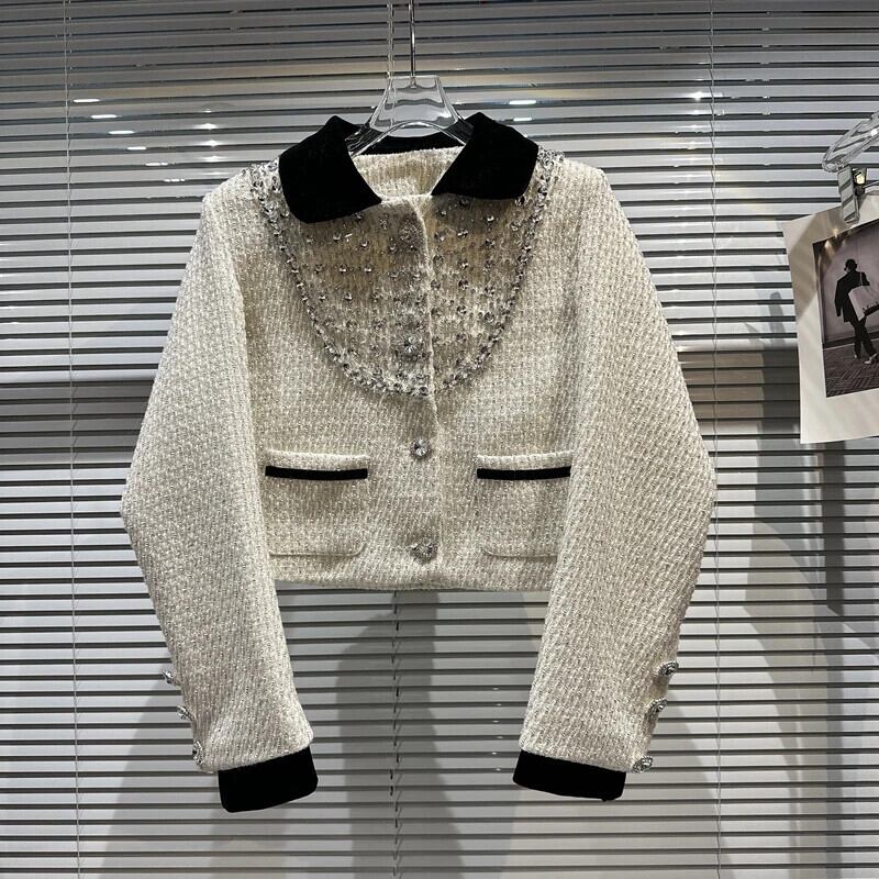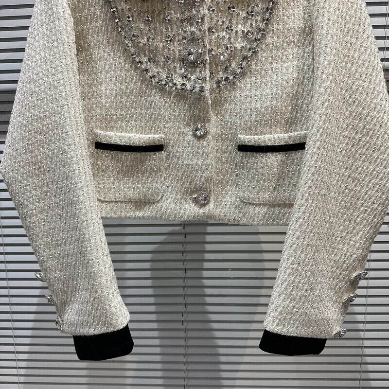 春秋重工業ダイヤモンドネイルビーズツイード気質セレブショートスーツコート高貴ウールブレザー スプリング 春物 オータム 秋物