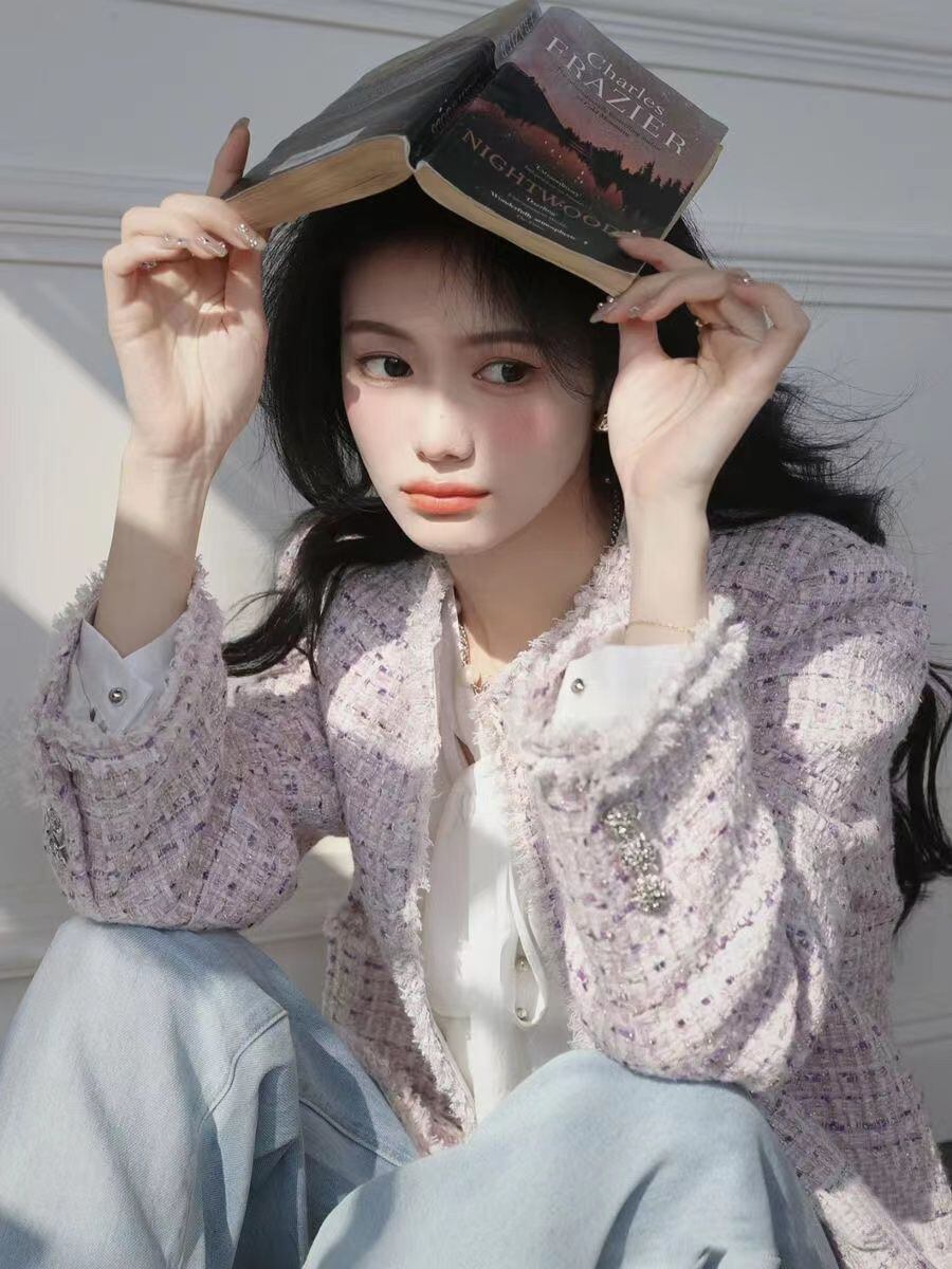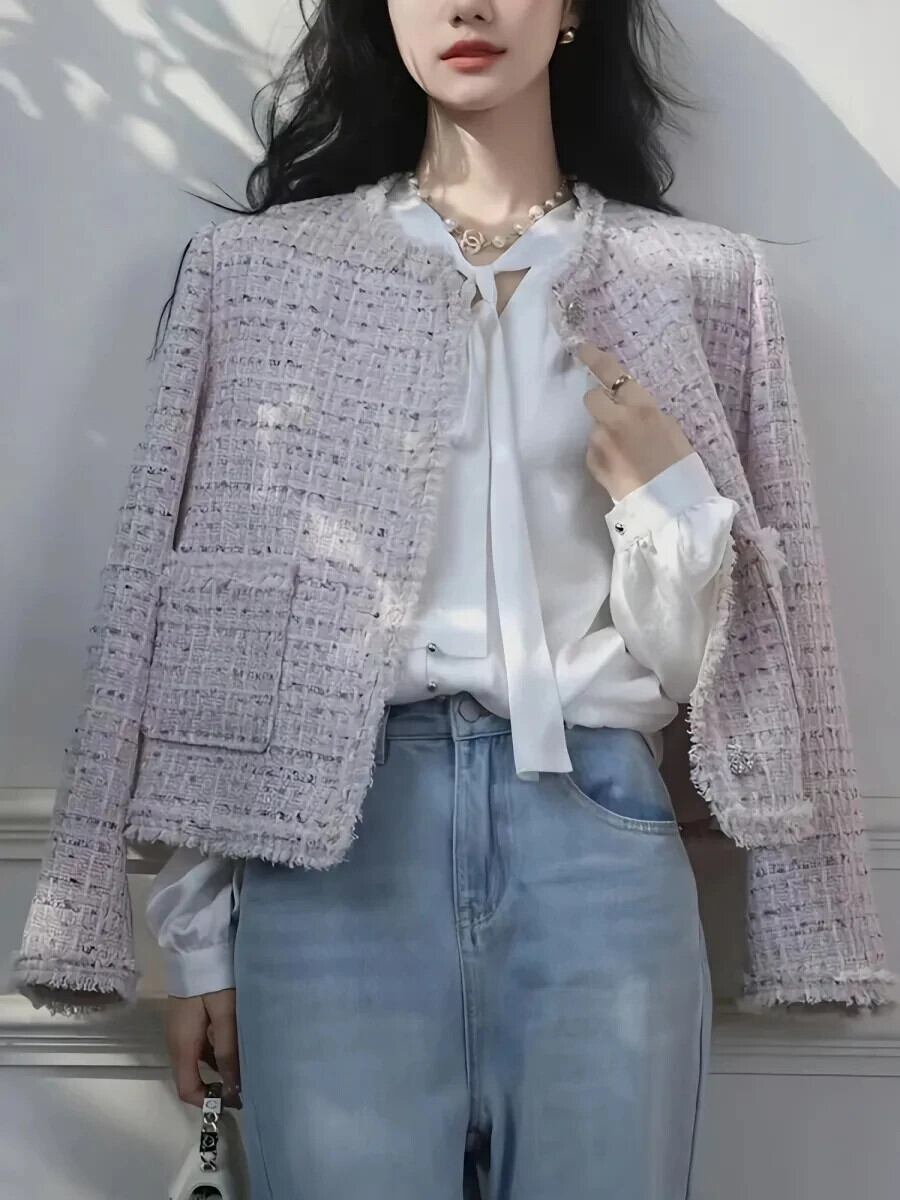 レディース スイート コミューター イン フレグランス コート スプリング ツイード パープル Laides Casacos チャケータ ジャケット 大人ガーリー スウィート キュート カジュアル 春物