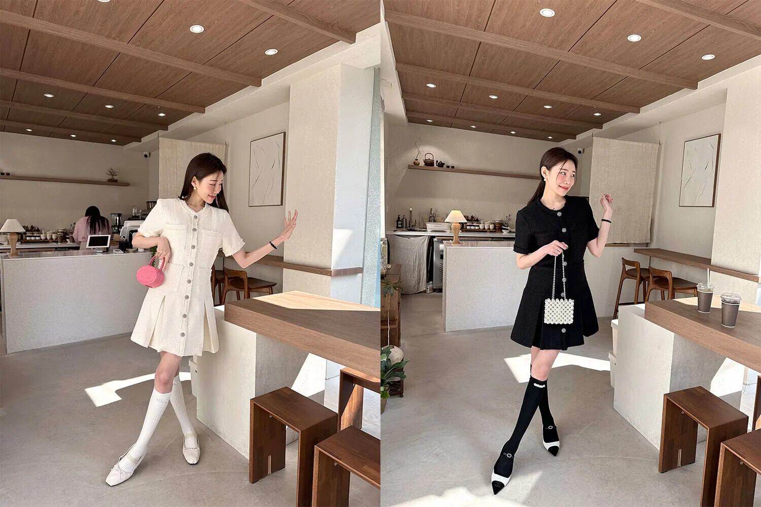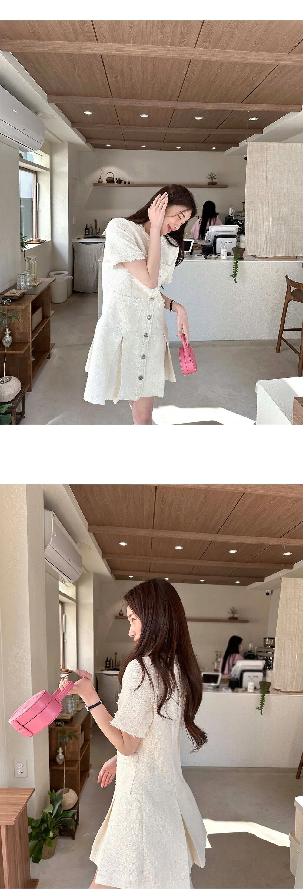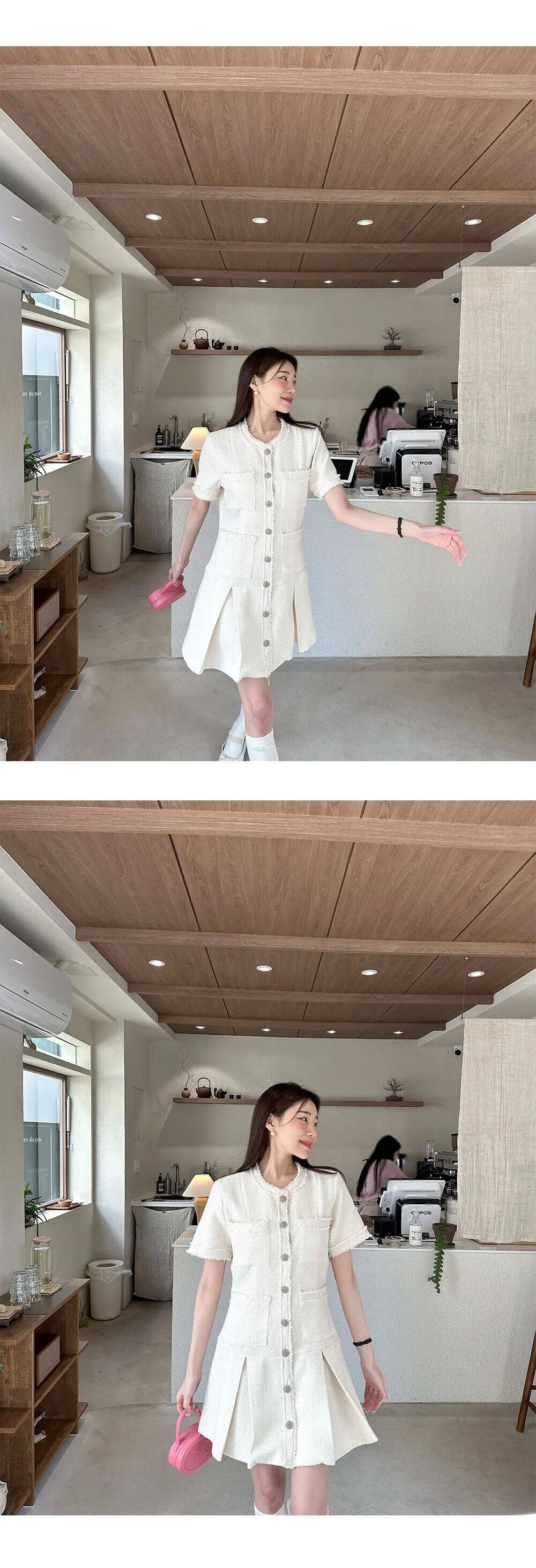 夏レトロスタイルウエスト香り風ルーズフリルエッジ半袖ツイードドレス ショート ハーフスリーブ サマー 夏物